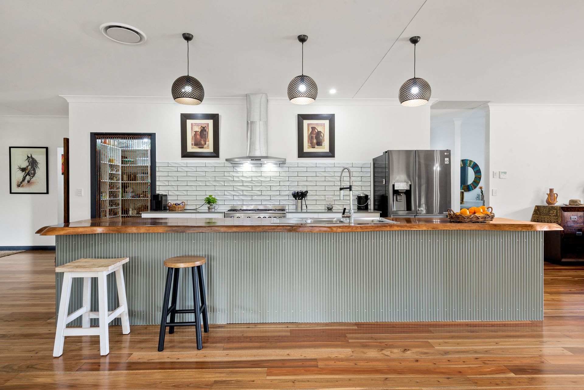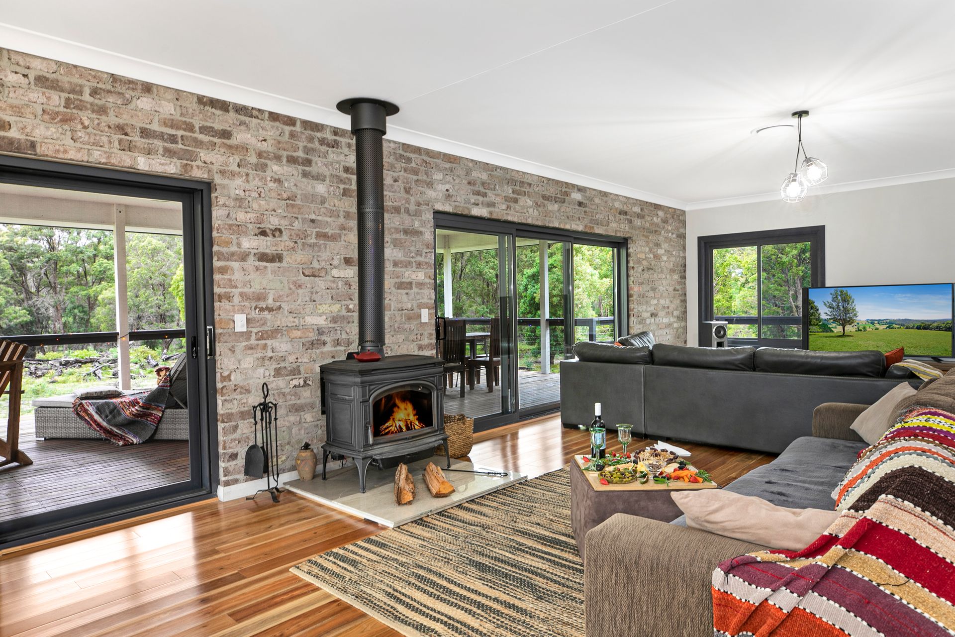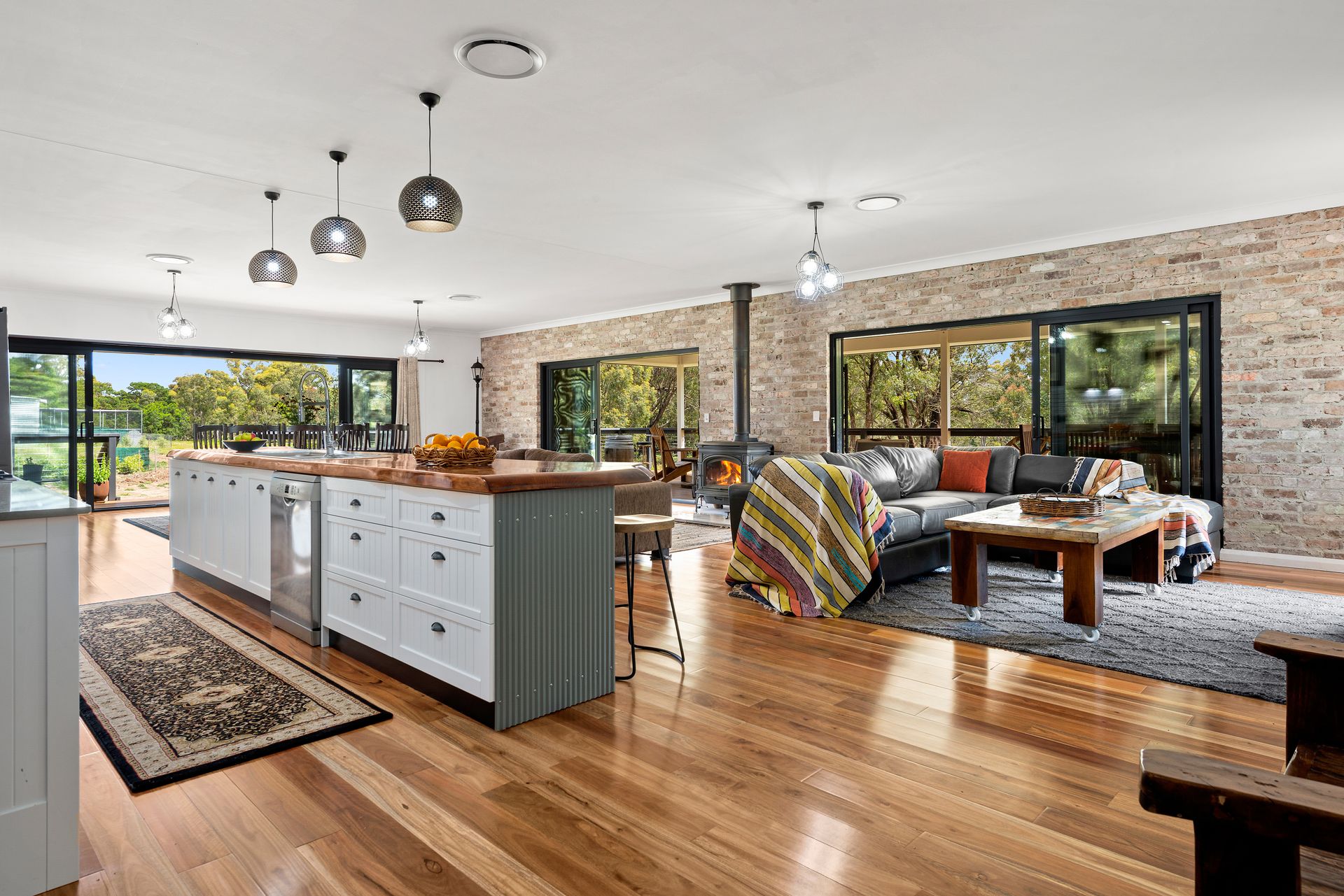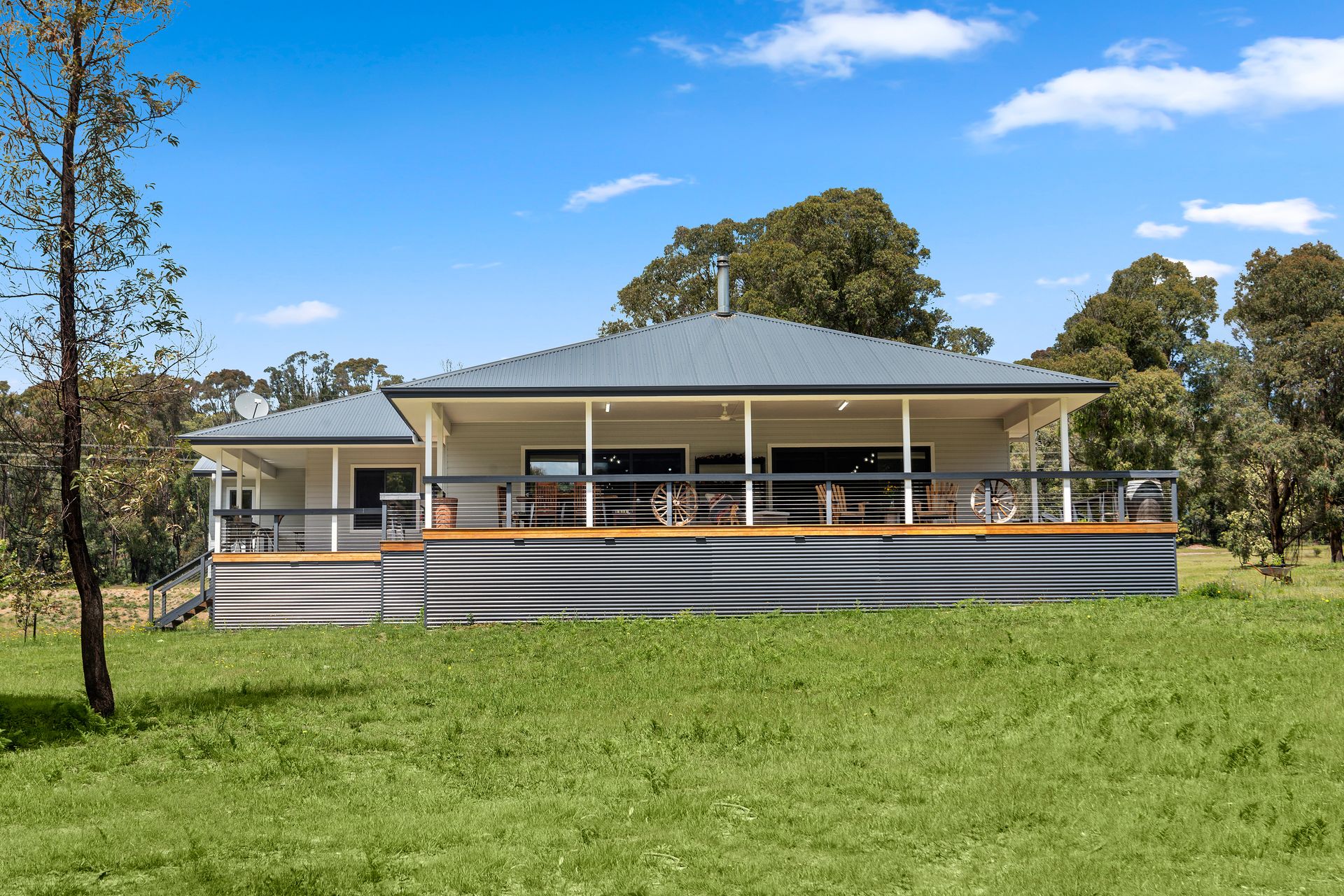 Set on 100 acres (approx.) of serene bushland, this near-new family home celebrates modern country style.