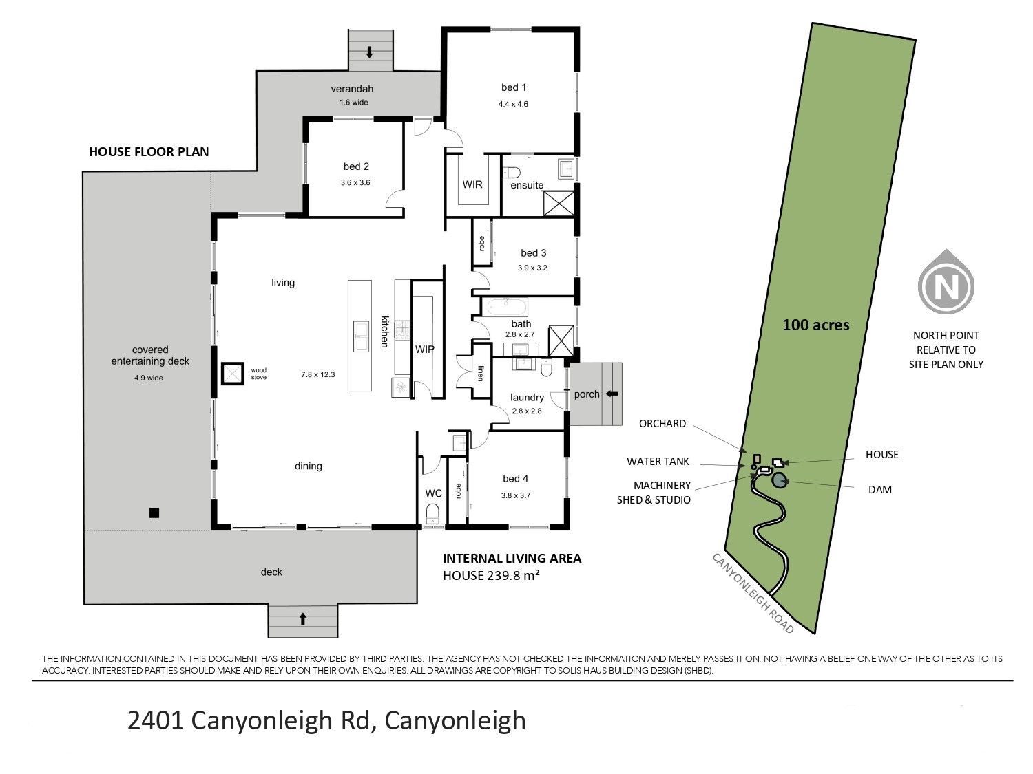 - Open plan living space with spotted gum floors, exposed brick feature wall and slow combustion fireplace - Covered outdoor area sized for entertaining and ideal for relaxing with tranquil bushland surrounds - Bespoke kitchen with European appliances and walk-in pantry - Master bedroom with walk-in robe and stylish ensuite - Luxurious bathrooms, fully tiled and lavishly appointed; - Ducted, reverse-cycle air conditioning and double-glazed windows throughout - Fabulous enclosed orchard including a huge selection of fruit trees and herb garden - Large laundry with mud room and w/c; separate guest powder room - Huge 200sqm shed with bedroom, bathroom and laundry, as well as 3-phase power - 90,000L water tank and eco-friendly septic system