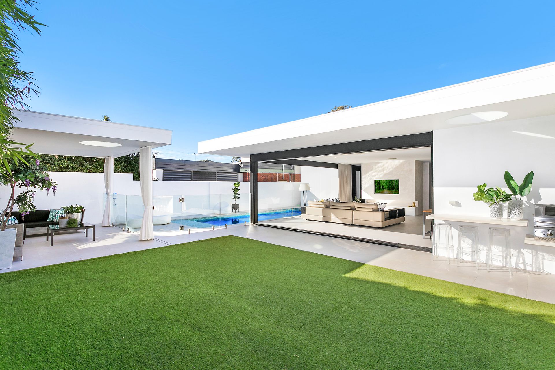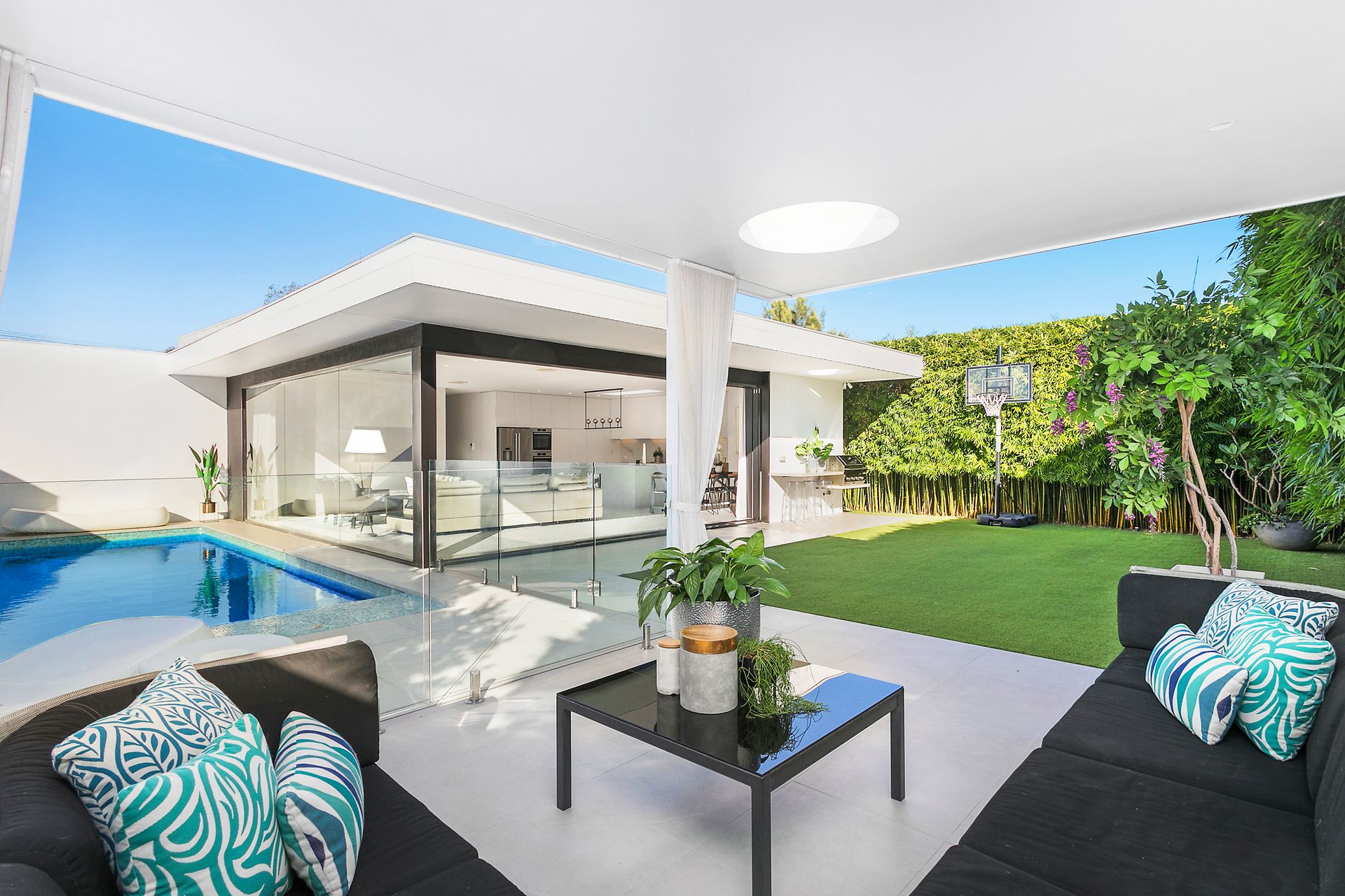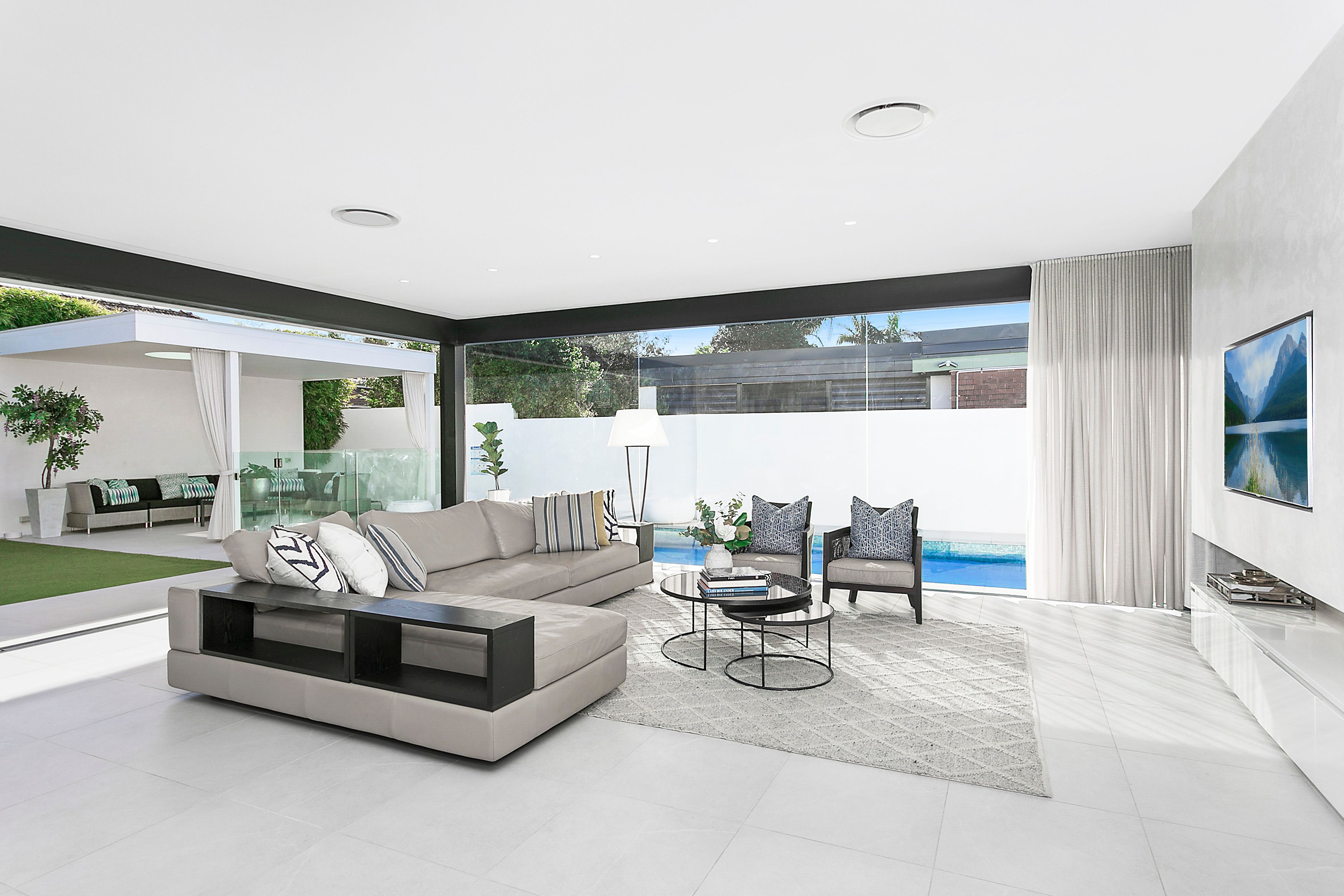 -Single level living with gated security -Two separate open plan living areas -Gourmet kitchen with stone bench tops -Deluxe master bedroom with ensuite -Video intercom + Ducted R/C A/C -Full height wardrobes and doors -Clever use of skylights, and feature walls -Resort style heated in ground pool + swim out area -Covered outdoor cabana, ideal for lounging -Fully landscaped & low maintenance gardens -Playground and Robin Place reserve only two doors away