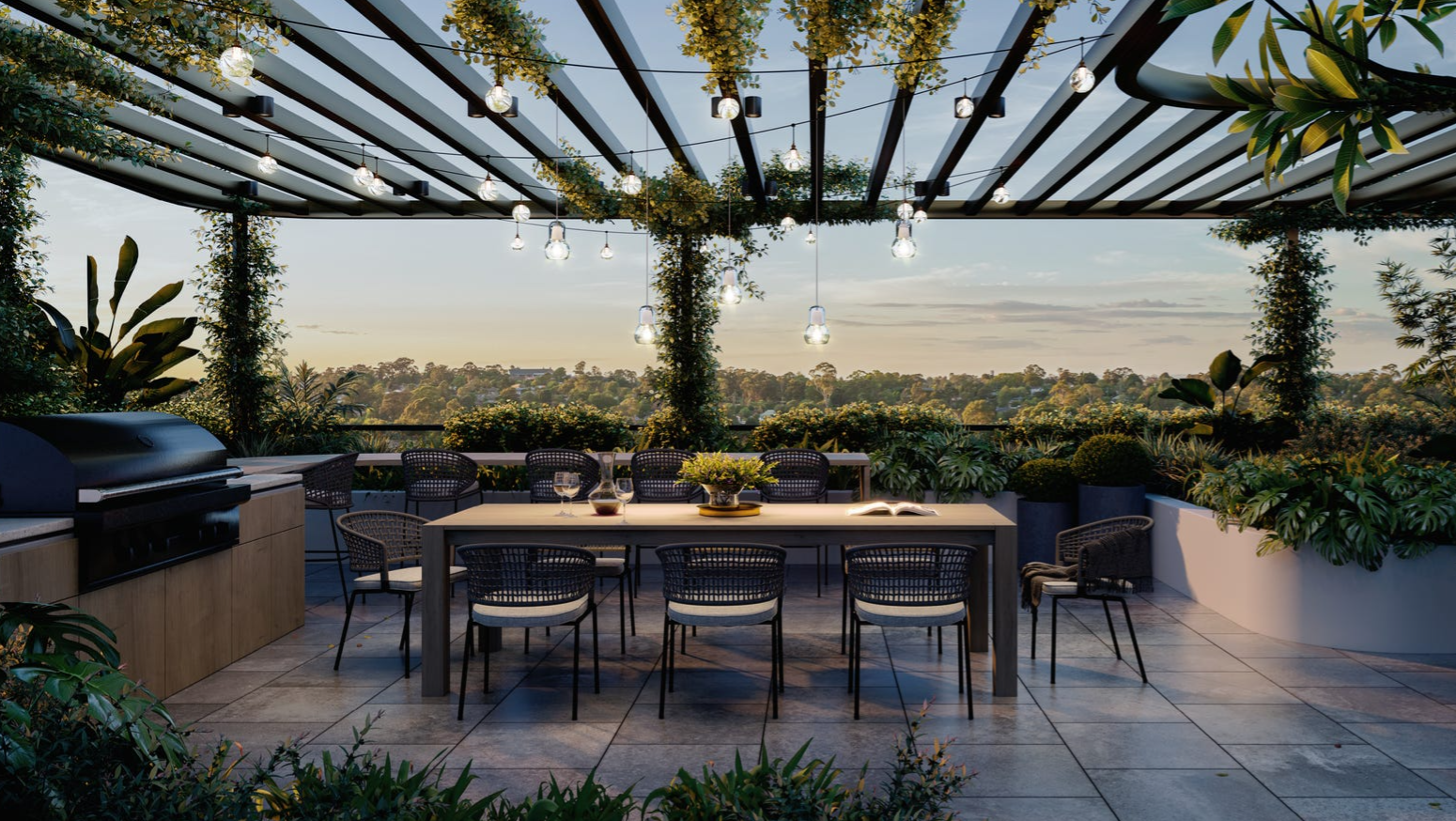 Apartment complex features: - Rooftop infinity Pool - Pergola shaded seating areas on two rooftops - Outdoor cinema - Rooftop bbq areas - Zen gardens communal outdoor space - Gymnasium - Security building with cctv and intercom