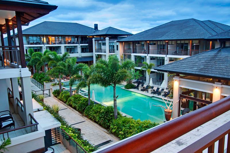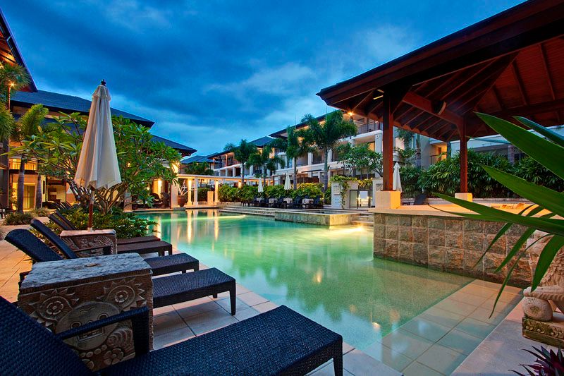Evoking the ambience and architecture of Bali are three luxury-appointed one-bedroom suites facing a tranquil lagoon-style pool within Santai's newly rebranded Grand Mercure Casuarina.
