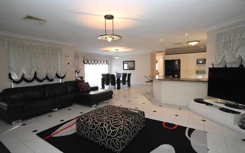 Positioned on 800m2 block in a prestigious part of Cecil Hills you will surely be blown away with this beautifully maintained family home. With spacious living areas throughout, 5 great size bedrooms all with built-ins, walk-in and en-suite to main, tiled throughout, an exceptionally great sized kitchen offering gas cooking, stainless steel appliances and plenty of bench and cupboard space. It will not be a problem entertaining your guests in your own private haven with professional landscaped gardens and great size yard. Additional features include; alarm, ducted reverse cycle air, double remote garage and more. Close to all amenities including Cecil Hills shopping centre, local schools and public transport.