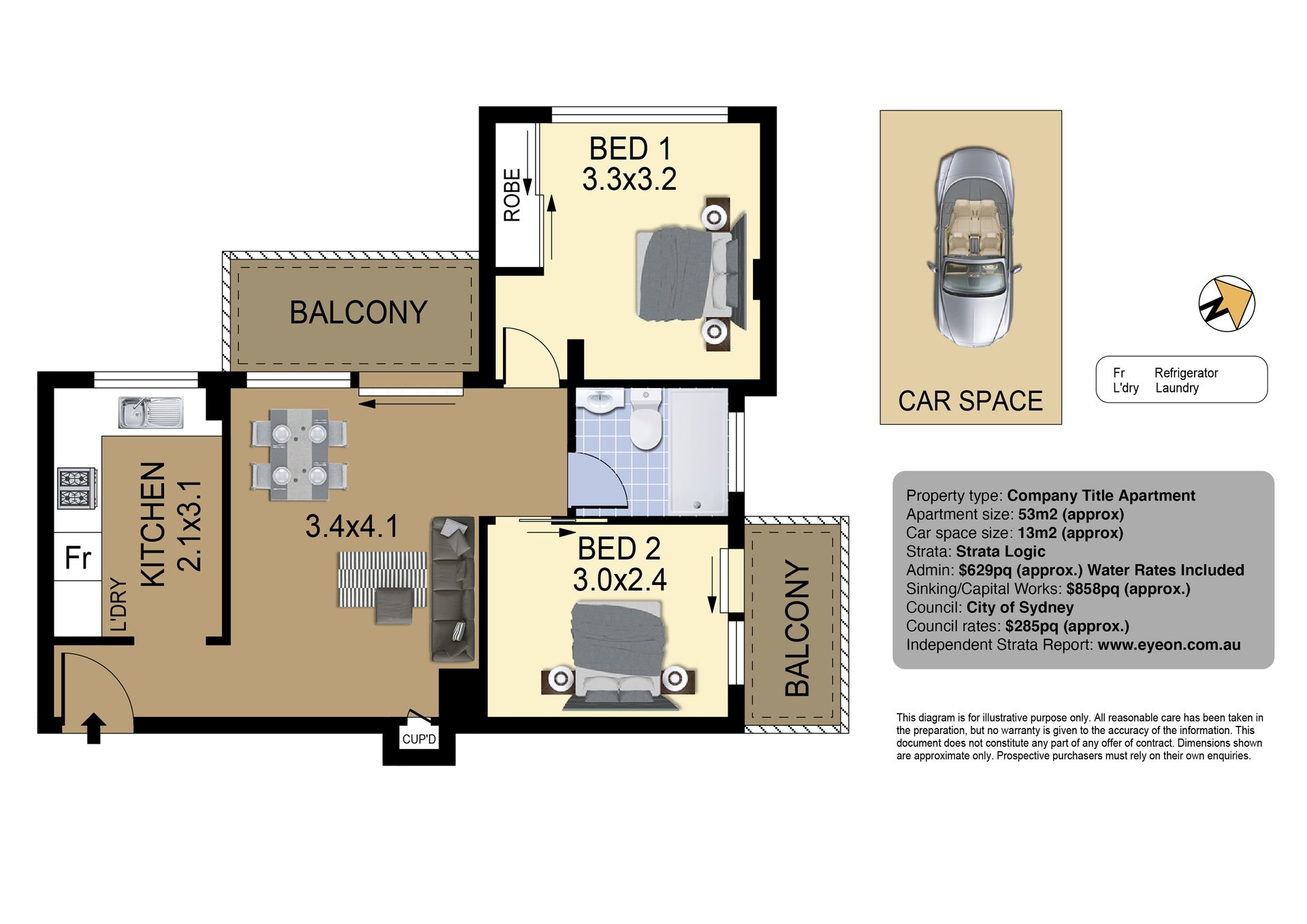 + Open plan layout combines living and dining + Contemporary stone finished European kitchen with all appliances + Two double bedrooms, master with built-in + Two balconies facing North & West & internal laundry facilities + Security building with intercom access, secure car space + Well maintained complex with manicured gardens + Communal bike storage area + Public transport to CBD, Bondi Junction & Beyond
