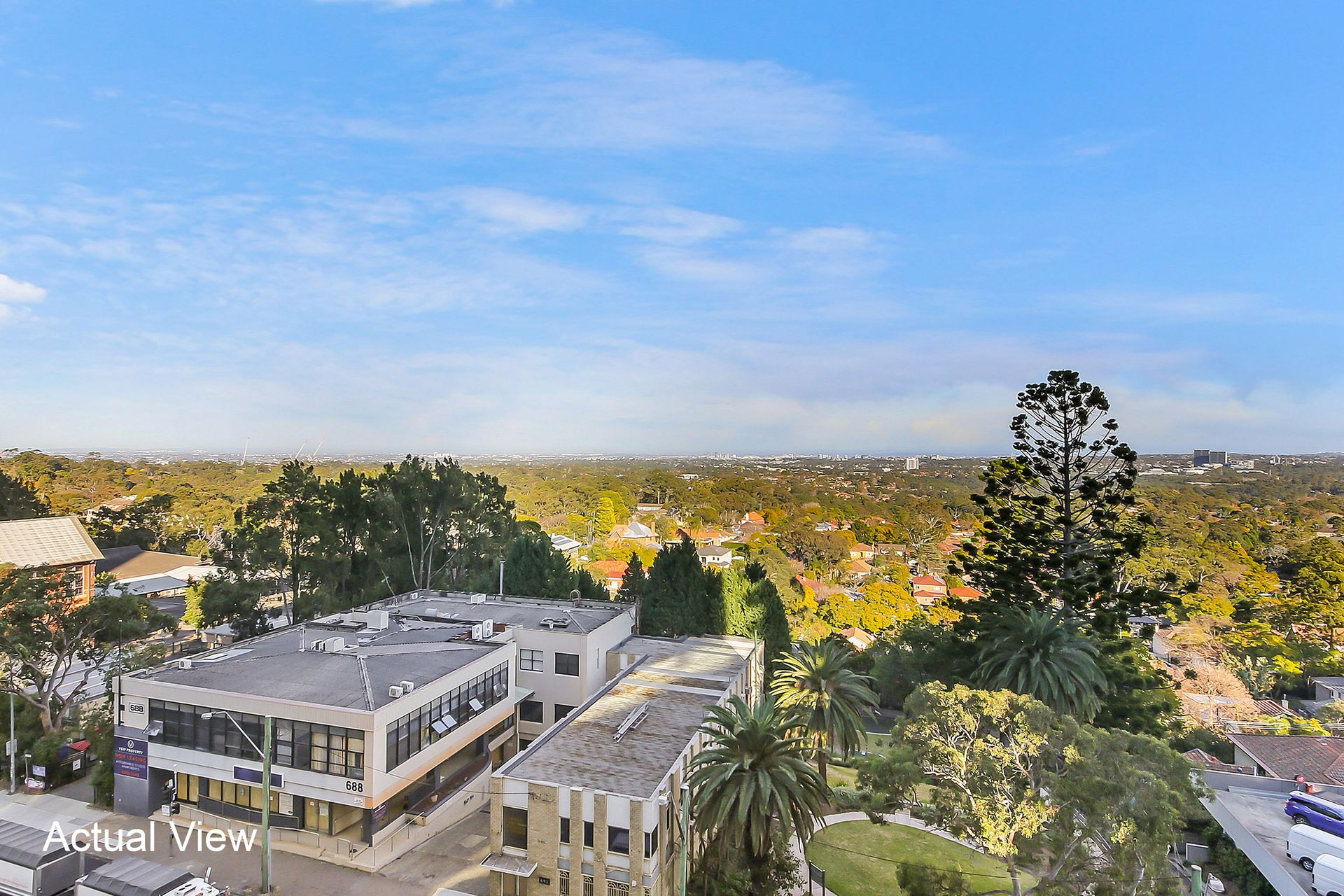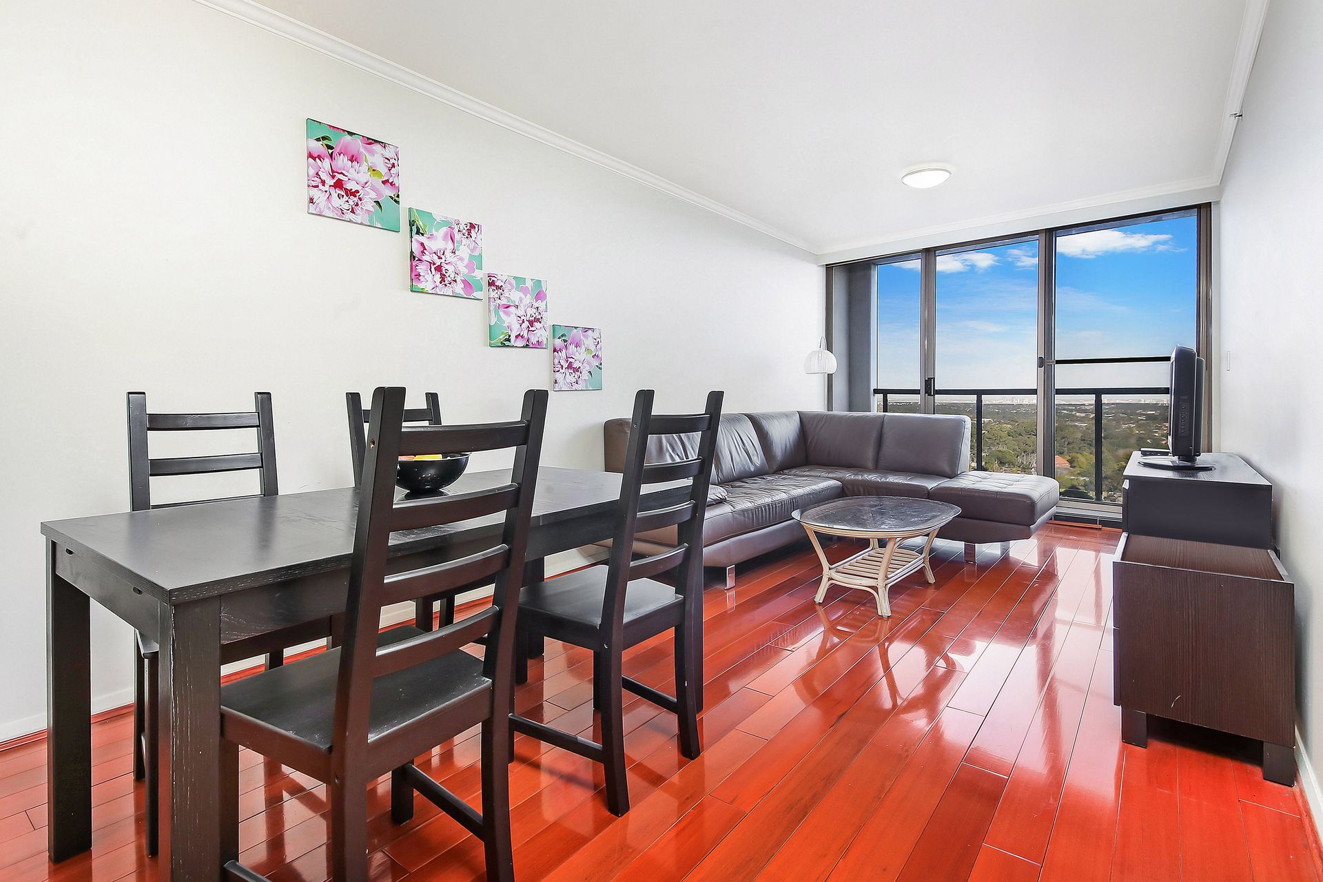 * Superb district views stretching to the Blue Mountains * Light filled combined living and dining with open plan kitchen * Contemporary gas kitchen with stone benchtops, modern appliances * Double bedroom with BIR, balcony access and district views * Ducted air conditioning, stylish bathroom, hidden laundry * On site building management, intercom access, secure car space * Rooftop indoor lap pool, spa, sauna, gym and BBQ facilities * Walk to station, buses, schools, shops, restaurants & Westfield Shopping