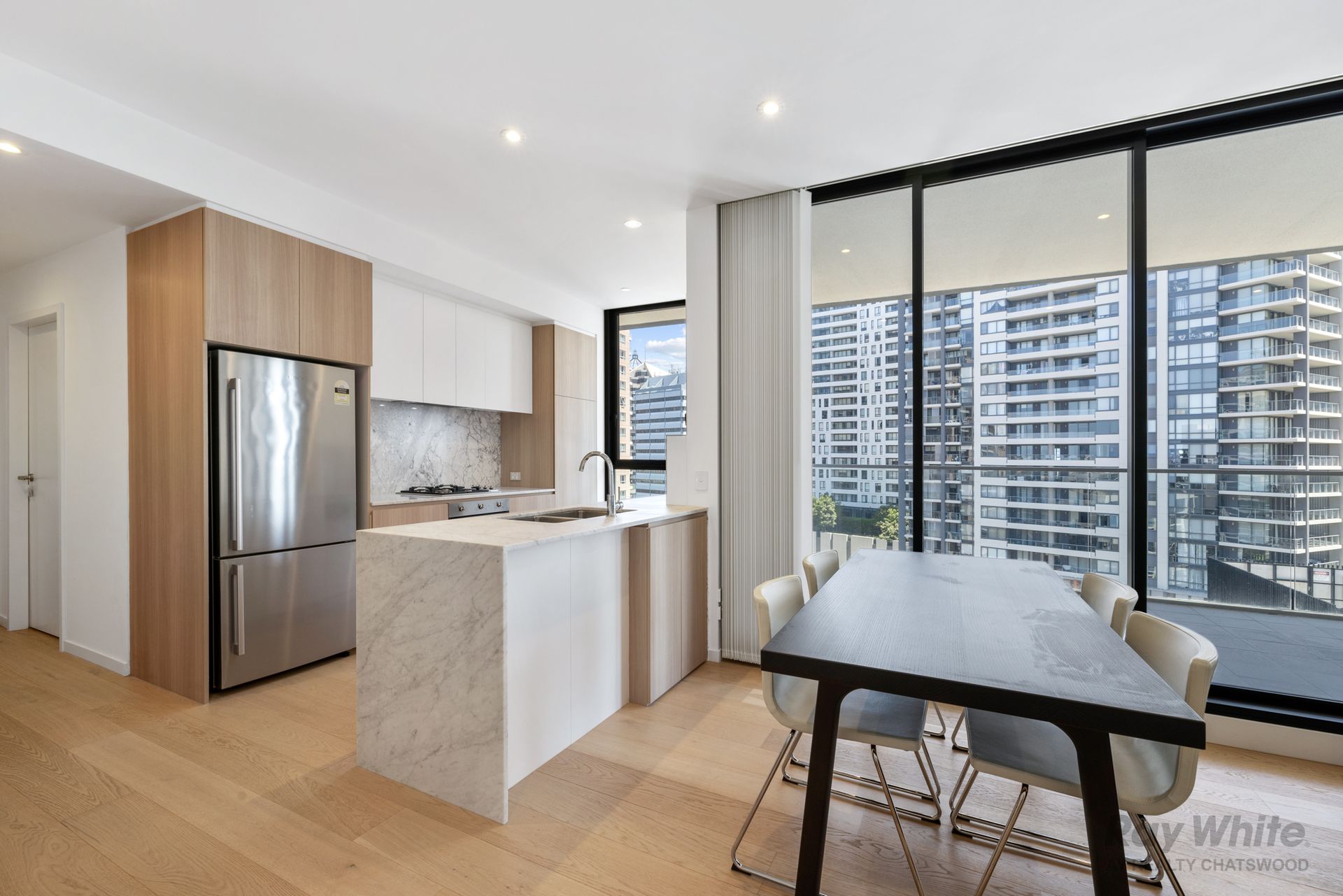 * Fully furnished two bedroom apartment * Open plan living and dining, sun drenched north facing covered balcony * Beautiful timber veneer gas kitchen, large stone benchtops, Smeg appliances * Well-proportioned bedrooms with built-ins, master with luxe ensuite * Stylish designer bathroom featuring rain shower and bathtub * Landscaped rooftop gardens with BBQ, seating and entertainment area * Tranquil shared central courtyard, on-site building manager * Video intercom, ducted air conditioning, lift access to secure parking, storage cage * Approx. 3 minutes walk to Westfield, shopping, dining, transport * Approx. 4 minutes to Chatswood Interchange