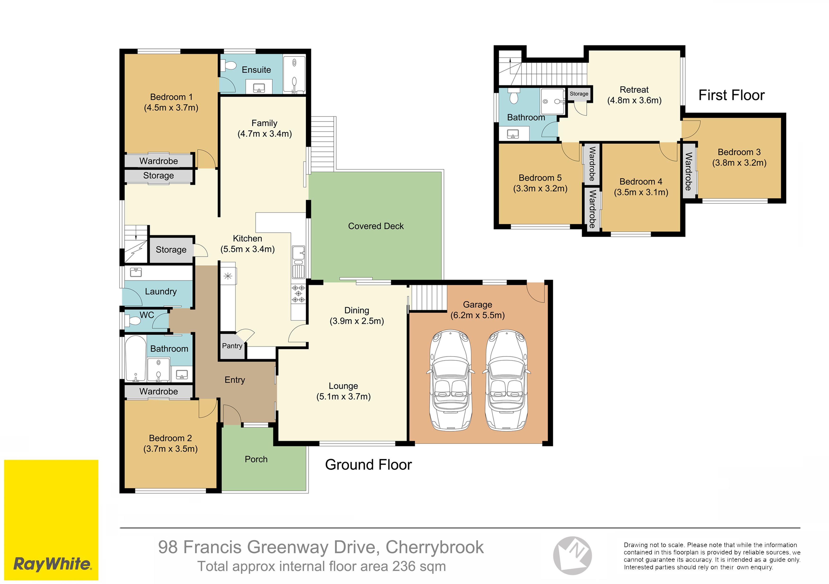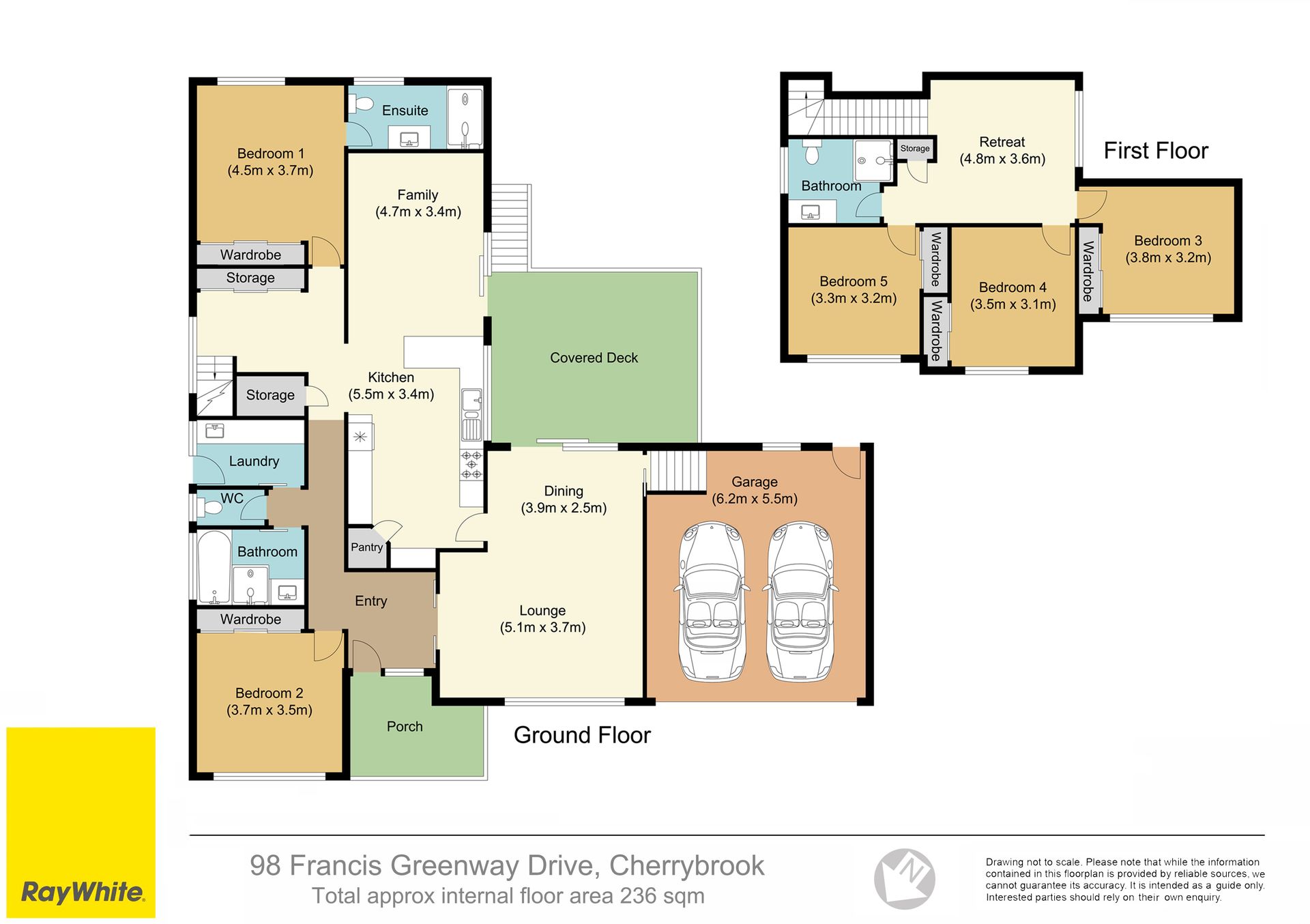 In a nutshell: - Combined main living and dining area with reverse cycle air conditioning, with sliding doors to undercover deck with ceiling fan, great for entertaining - Large kitchen with 900 ml oven, stainless steel appliances, ceramic cook top and breakfast bar - Family room adjoining the kitchen with reverse cycle air conditioning, easy to keep an eye on the children while cooking - Master bedroom with built-in, reverse cycle air conditioning, ceiling fan, large ensuite with vanity, toilet and shower - 2nd bedroom with built-in and ceiling fan, great for guests or a study - Main bathroom with shower, generous bath and vanity - Separate toilet - Good size laundry with side access to rear - Upstairs are three bedrooms all with built ins and ceiling fans, complete with children's retreat with reverse cycle air conditioning and ceiling fan - Double garage with internal access and remote doors (currently divided into workshop and storage area) - Good size rear yard with plenty of room to kick a ball.