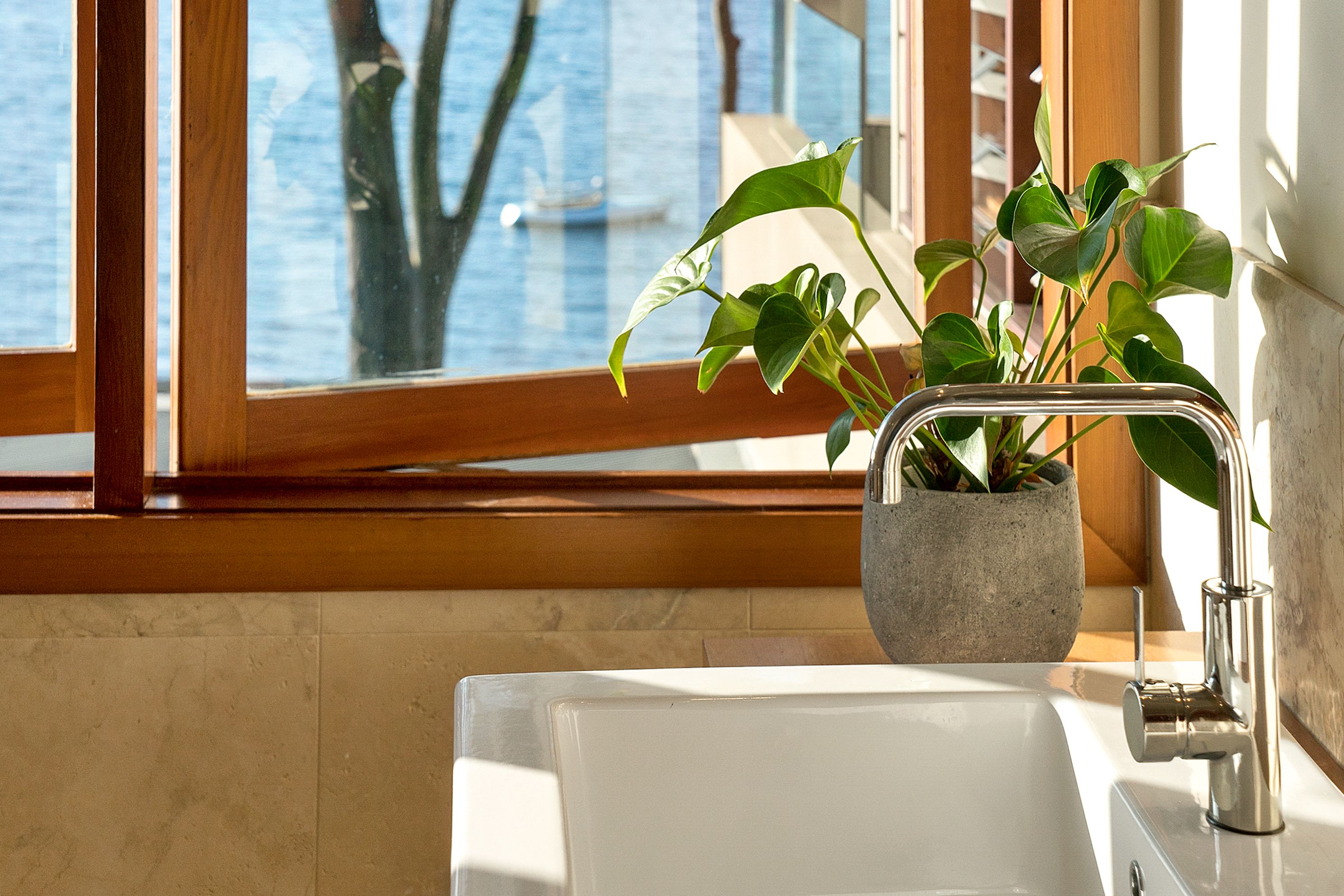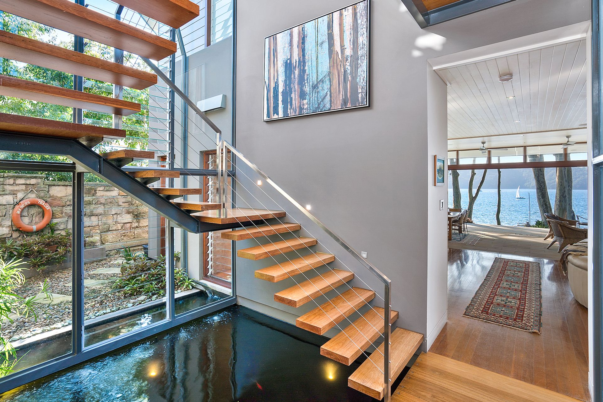 Cleverly designed over two levels by prominent architect Sean Gartner, it sits on a rare north-facing waterfront block at the tip of Taylors Point.