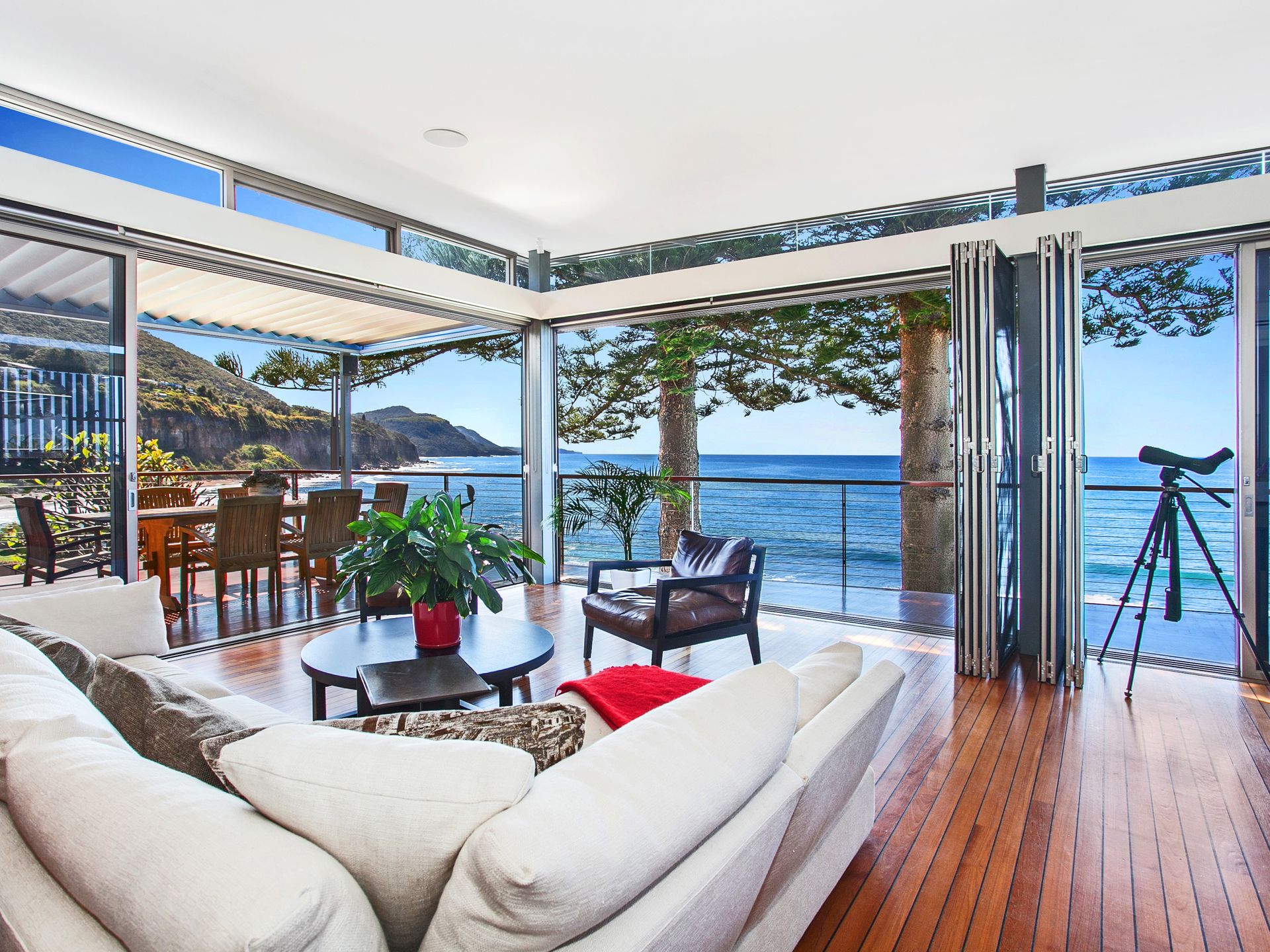 THE HOME • You will be amazed over 3 levels, 5 bedrooms, 3 bathrooms you can capture 180 degree views of the beach, ocean and coastline as far as the eye can see. Not to mention magnificent sunrises and the full moon rising over the Pacific Ocean. • A clever and versatile design allows you to make the most of the home and its unique position in all different weather conditions. A grand indoor/outdoor living setup. THE FEATURES • Themes and design features incorporate steel, heavy duty frameless glass, maritime teak flooring, natural stones and travertine amongst many more. Cross flow ventilation via multitude of windows and louvres capturing prevailing summer breezes and closing to enjoy the warmth in winter months. • Automatic vergola covering the free flowing outdoor entertaining area. • Open plan living area provides space and intimacy. • Wired for full surround sound and electronics throughout the home, including outdoor entertaining areas. • Designer kitchen with, limestone benchtops, high quality appliances including Miele cooking units, built in wine cooler and bar fridge near the deck. • Quality meets comfort in the bedrooms with travertine heated flooring as well as great storage and wardrobe comforts. • Three bathrooms offer stylish and practical design with double showers. The main boasts a private balcony and a large freestanding turbo bath. • Separate Air Conditioning units on middle and upper levels with zone control. • Electric windows on the upper level as well as active screen to the South. Double light and privacy blinds. • Magnificent glass stairwell connecting 3 levels with stunning vertical travertine feature wall. • Master bedroom overlooks the ocean with glass folding access doors opening on to a private East facing balcony. • Huge outdoor entertaining area, complete with outdoor kitchen, is surrounded by immaculate landscaping and a path leading you down to the water's edge. • Complemented by soft and hard landscaping architecture finished both internally and externally of the home. Enticing the resort style feel with tropical gardens, Glass atriums, open spaces and of course private entertaining arenas. THE LIFESTYLE • Surfing, Fishing, lazing on the beach, leisurely walks, relaxing, exploring, bicycling, cafes, restaurants, privacy and of course entertaining friends and family.