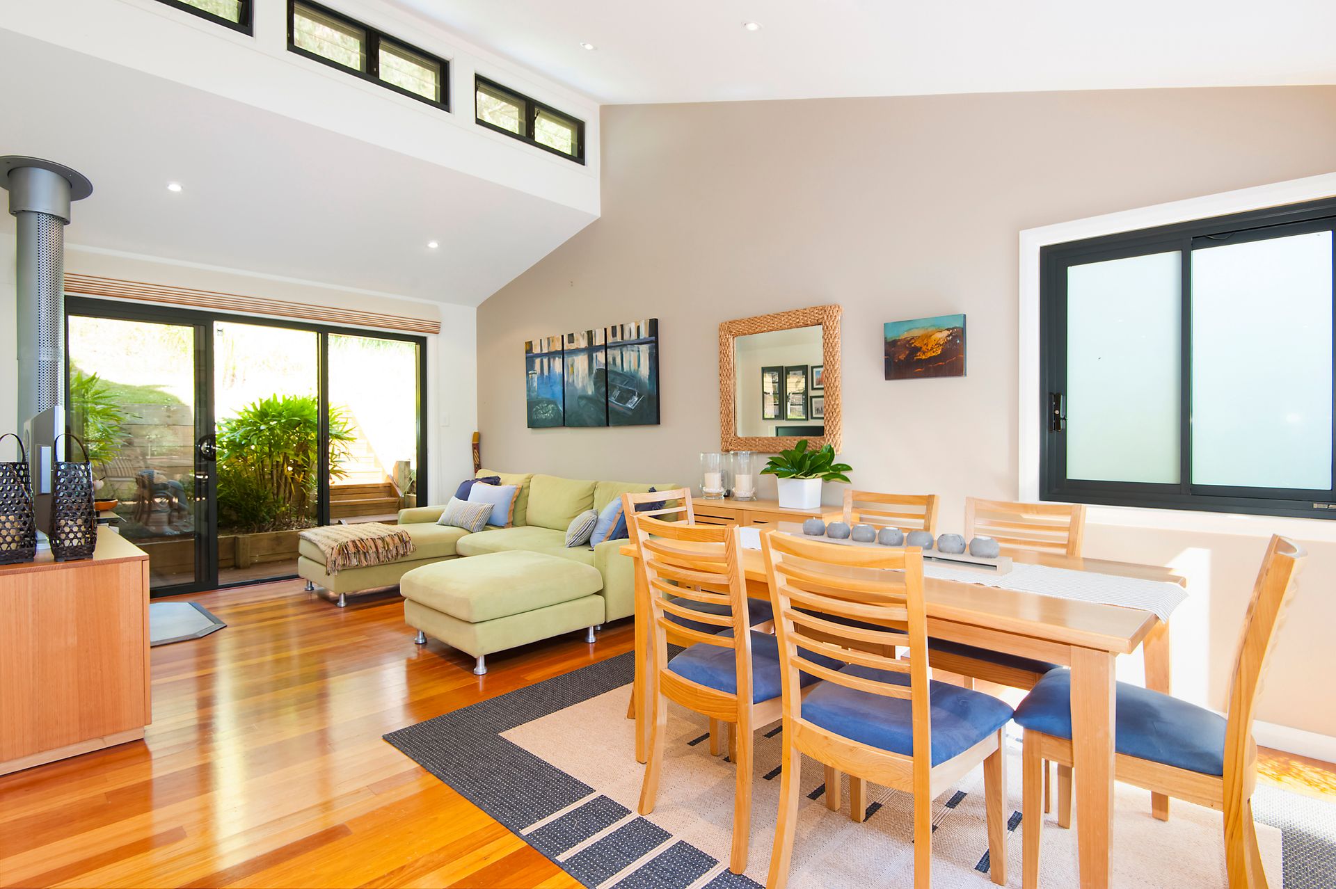 A combination of fresh contemporary lines, sleek designer finishes and a sun soaked north aspect define this exceptional holiday residence. Its waterfront setting is less than a five minute stroll to Bennets Wharf, yet privately positioned across a substantial land parcel and surrounded by terraced gardens. Designed for a modern, easycare lifestyle, the home boasts a versatile open plan layout with a choice of casual/formal living areas, while surrounded by a series of deep waterfront entertaining decks to soak in the extraordinary views across Pittwater. Its elegant proportions are accentuated by dramatic ceiling heights, extensive use of floor-to-ceiling glass and polished hardwood flooring, while the smart Caesarstone kitchen features Miele appliances, deep pantry and plenty of storage space. The upper levels include a serene master with ensuite plus two double bedrooms with built-in robes: bathrooms are contemporary ad include a guest powder room on the main floor. An idyllic, low-maintenance retreat, the sizeable block offers the potential to further develop at the rear of the property, creating additional accommodation or living space (STCA). Clearly, one of the finest holiday residences in this idyllic setting, it enjoys regular ferry service from Palm Beach in addition to the easy, five minute water taxi rides available at a moments' notice. - Waterfront Reserve position - Premium quality finishes throughout - Fabulous entertainer, surrounded by decks - Combustion fireplace, rain tanks - Potential for additional development (STCA) - Low land taxes, excellent return for holiday periods