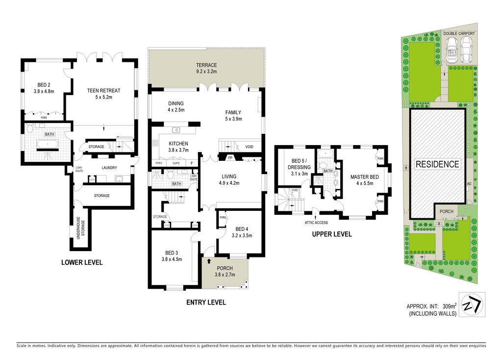 Accommodation: • Elegant formal lounge room with bespoke cabinetry and sandstone trimmed gas fireplace • Living and dining rooms flow to the sun drenched rear deck • Innovative kitchen with integrated dishwasher, stone tops, bulkhead storage and servery • Versatile layout with up to 5 bedrooms including lower level teenage/guest accommodation • 3 chic, full bathrooms + a full separate internal laundry room with chute