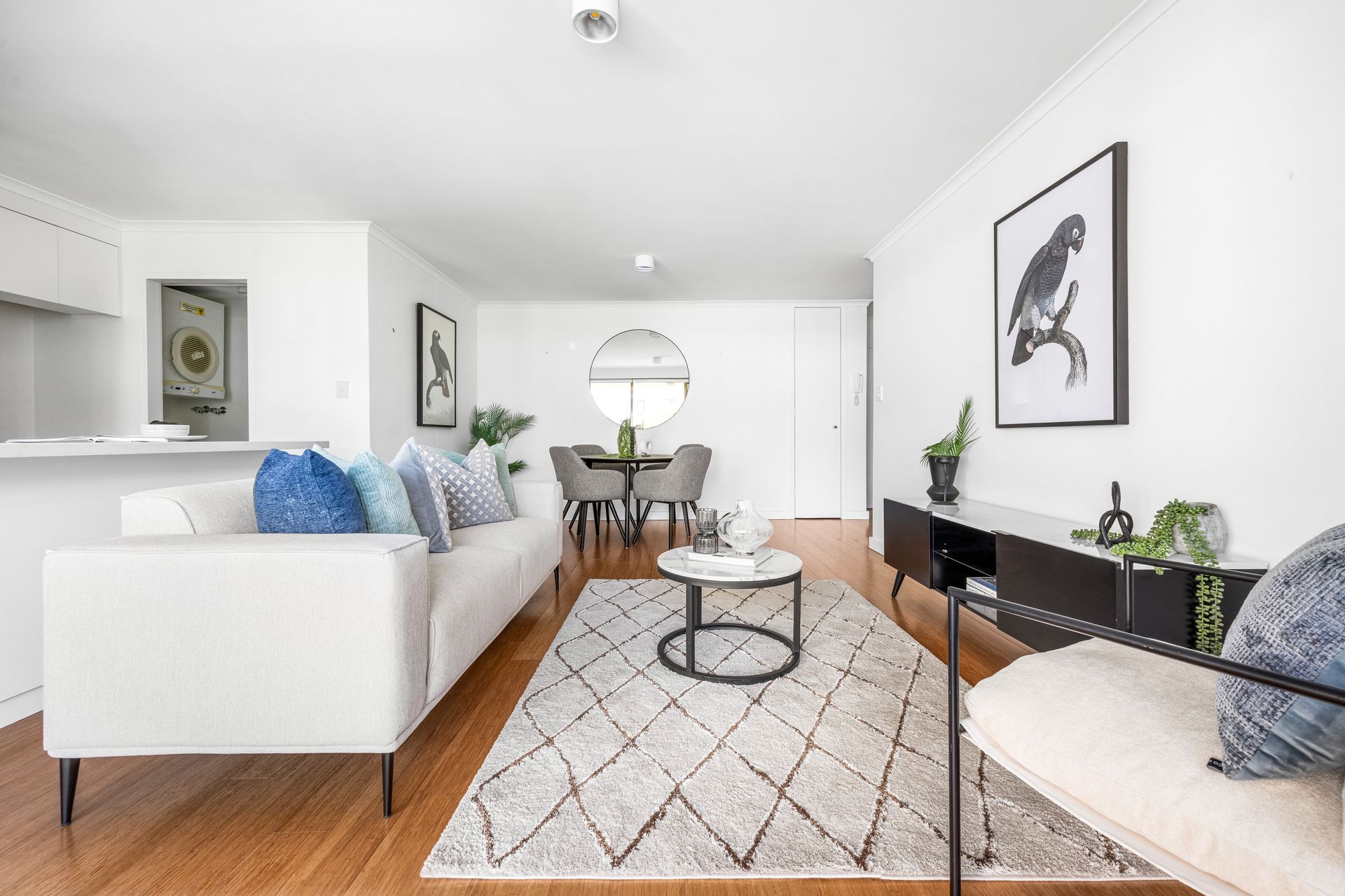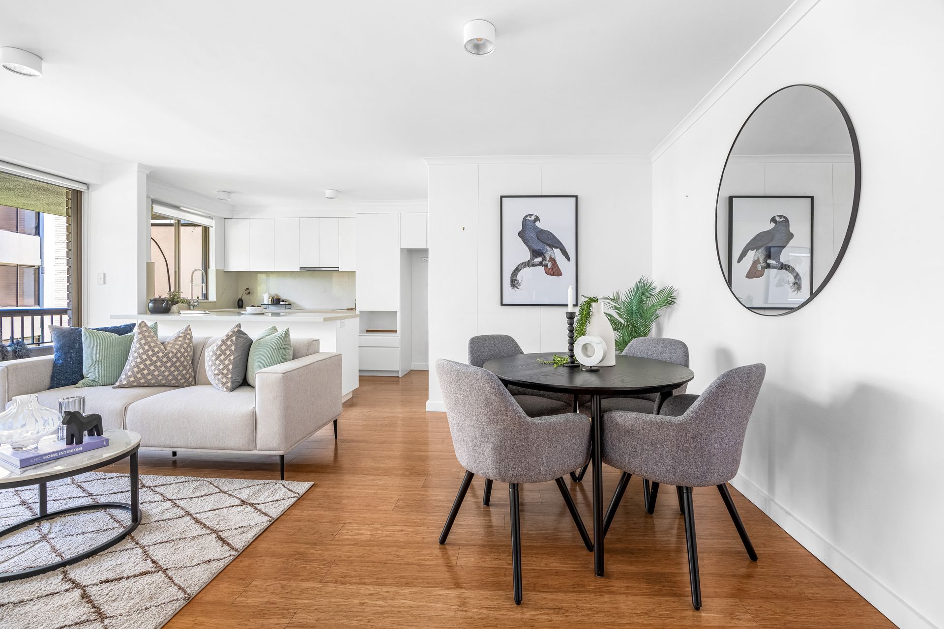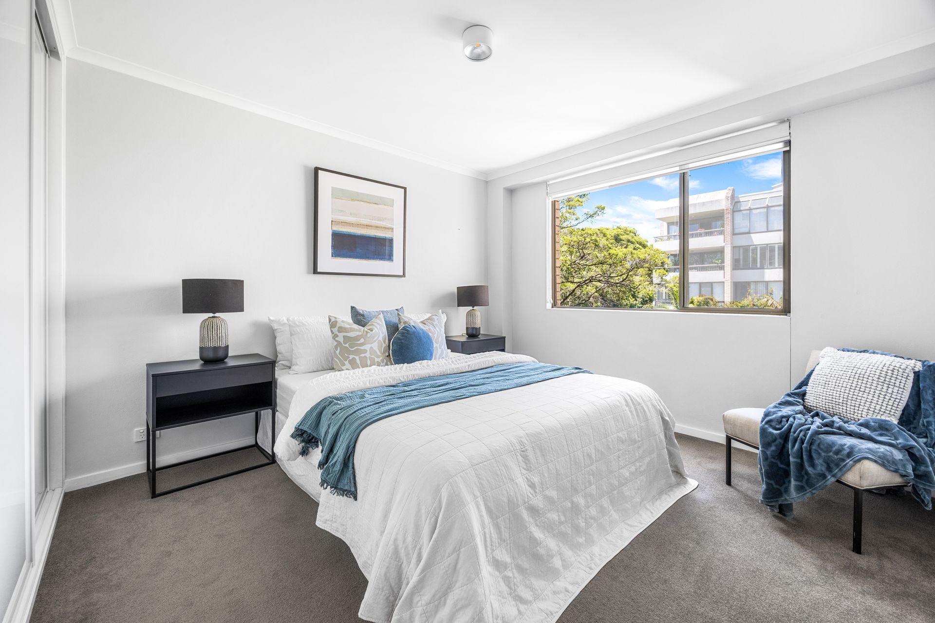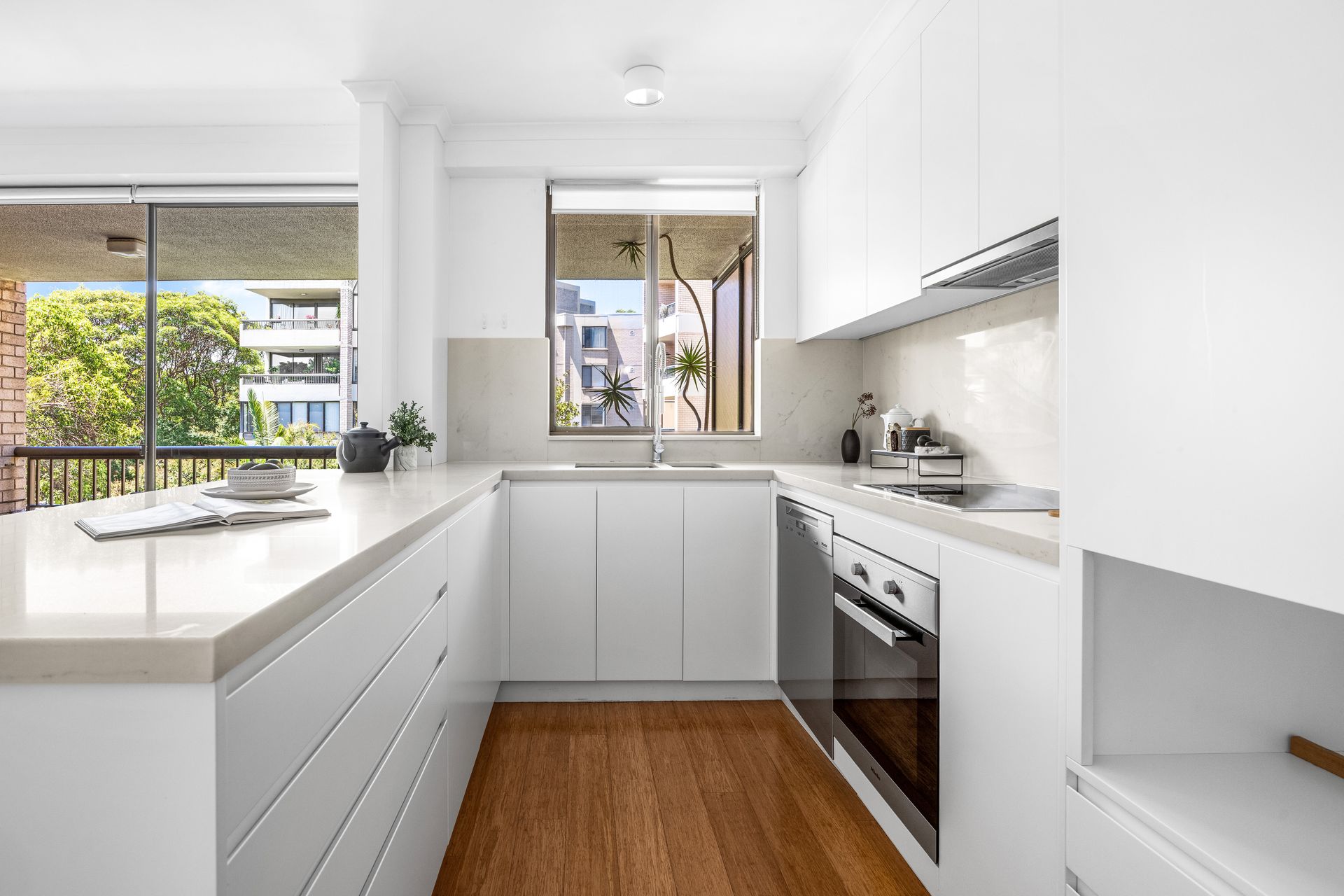 - Open plan living and dining adjoining the striking custom kitchen - Kitchen showcasing thick Smartstone with a light grey marble vein - Miele electric cooktop, oven and dishwasher, practical double sink - Built-in robes with shelving and hanging space, carpet in bedroom - Renovated bathroom with sleek tiling and double shower head - Linen cupboard, walk-in laundry off the kitchen with storage and sink - All windows stylishly dressed by Urban Range roller blinds - Designer lighting choices, apartment cabled for NBN - Direct lift access to the basement level lock-up garage with storage - Set amongst a communal garden wonderland, active strata committee - Designer lighting choices, cabled for NBN, Ppet-friendly security complex - Linen cupboard, walk-in laundry off the kitchen with storage and sink - Level 350m walk to Cremorne eateries, 660m to the Orpheum Cinema - 140m to closest city bus stop, 210m to Neutral Bay Junction cafes - A flat walk to nearby doctors, pharmacies and major supermarkets