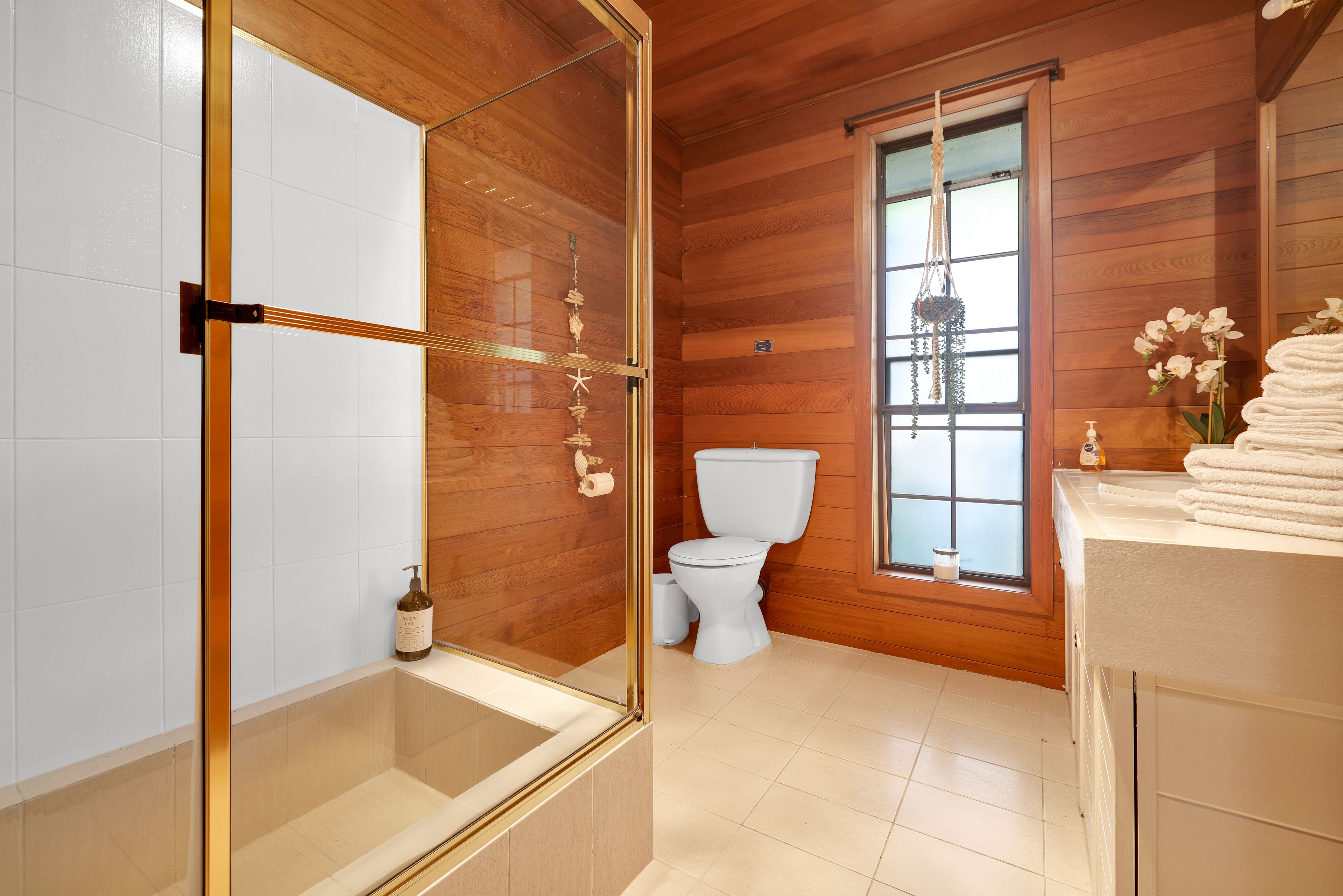 On the upper level discover three spacious bedrooms, each exuding a charming mid-century modern feel. The grand master suite features an ensuite and built-in robe, while the second bedroom also boasts a private ensuite. A third bathroom on the upper level ensures privacy and convenience for all your family and friends, making this home an ideal holiday investment appealing to families and couples who vacation together.