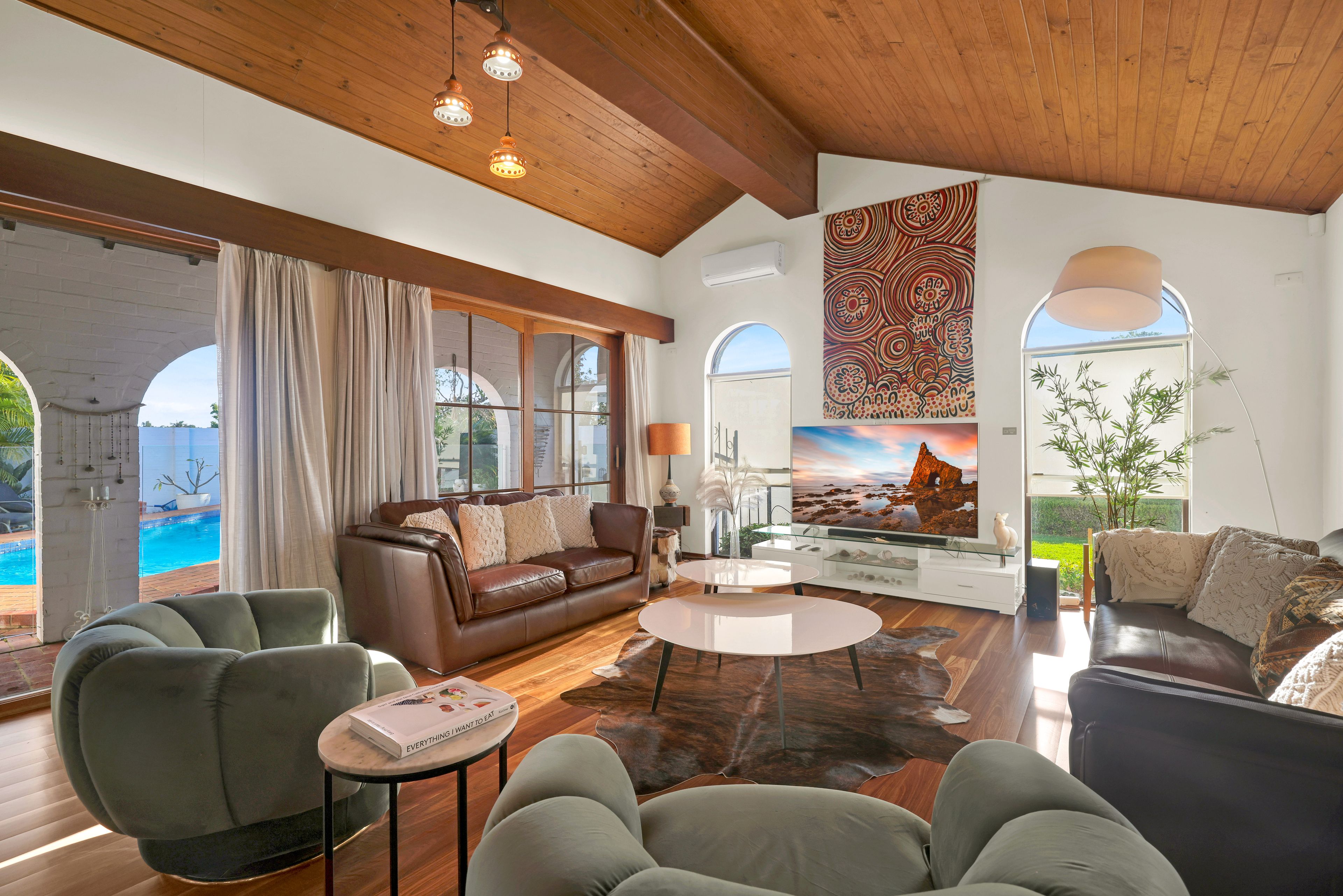 This magnificent home offers ample space for enjoyment, with multiple indoor and outdoor entertaining areas. The kitchen is a culinary delight, equipped with a stainless steel microwave and oven, electric cooktop, dishwasher, and abundant benchtop space. You will enjoy comfort throughout the seasons with an indoor fireplace for cozy evenings and split system air conditioning in the living room to keep cool on summer days. Embrace the seamless indoor/outdoor living with an alfresco dining area, ideal for starlit dinners. The living areas are graced with high cathedral ceilings and expansive windows, showcasing the view of the pool and letting in plenty of sunlight and sea breeze.