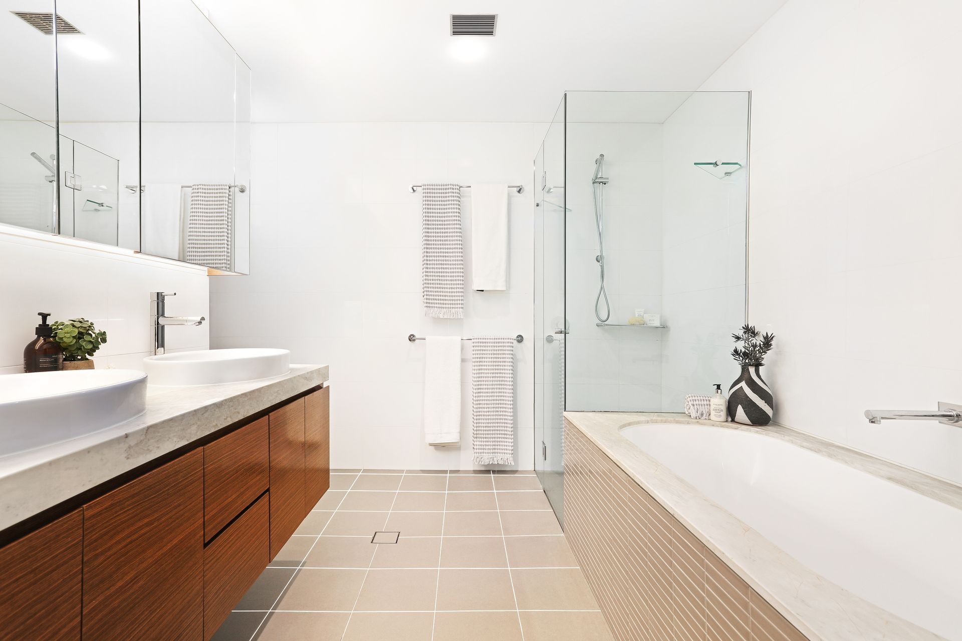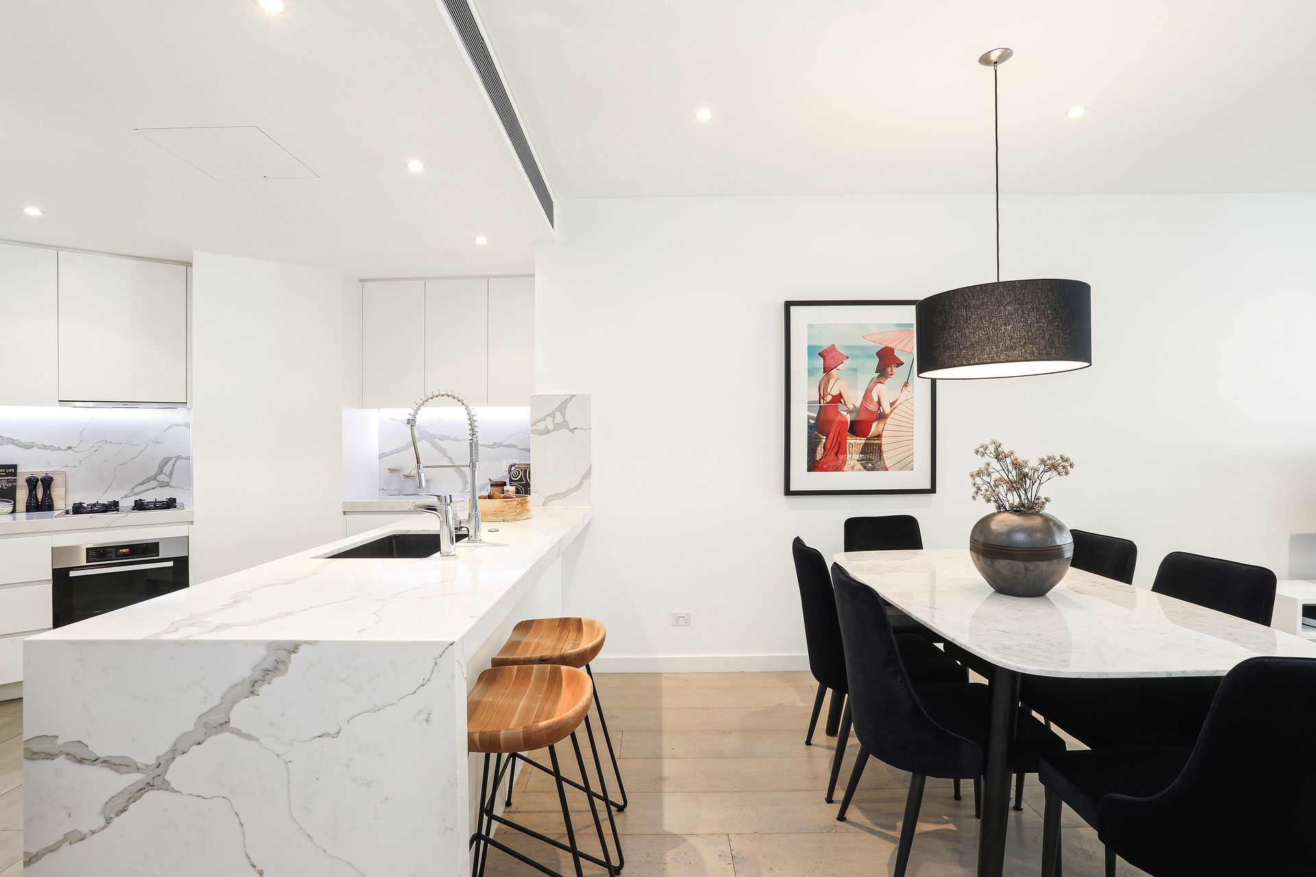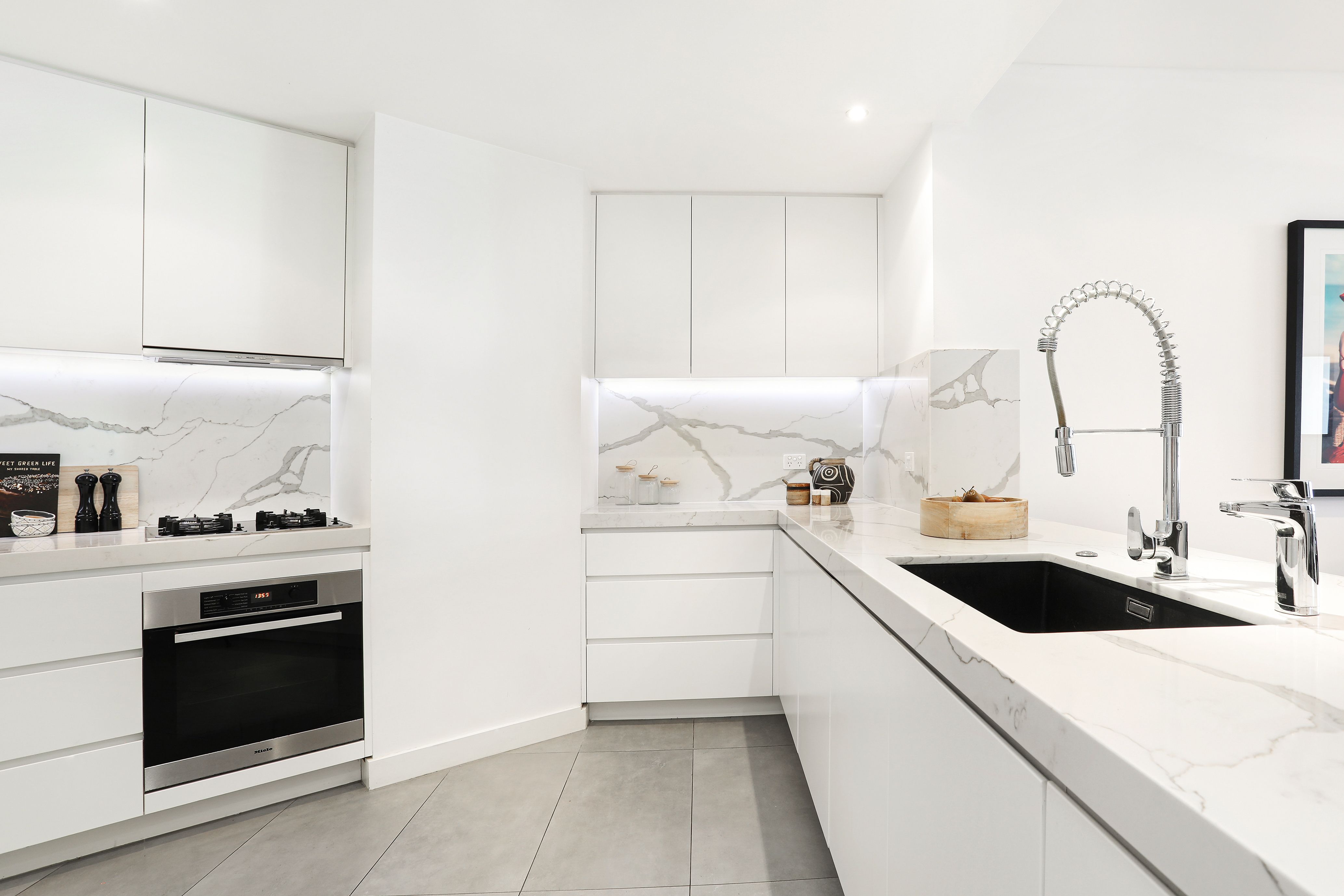 There is a gourmet kitchen with quality Miele gas appliances and a breakfast bar, while accommodation consists of two well-scaled bedrooms, the master is appointed with a custom walk-in wardrobe and a chic ensuite with dual vanity.
