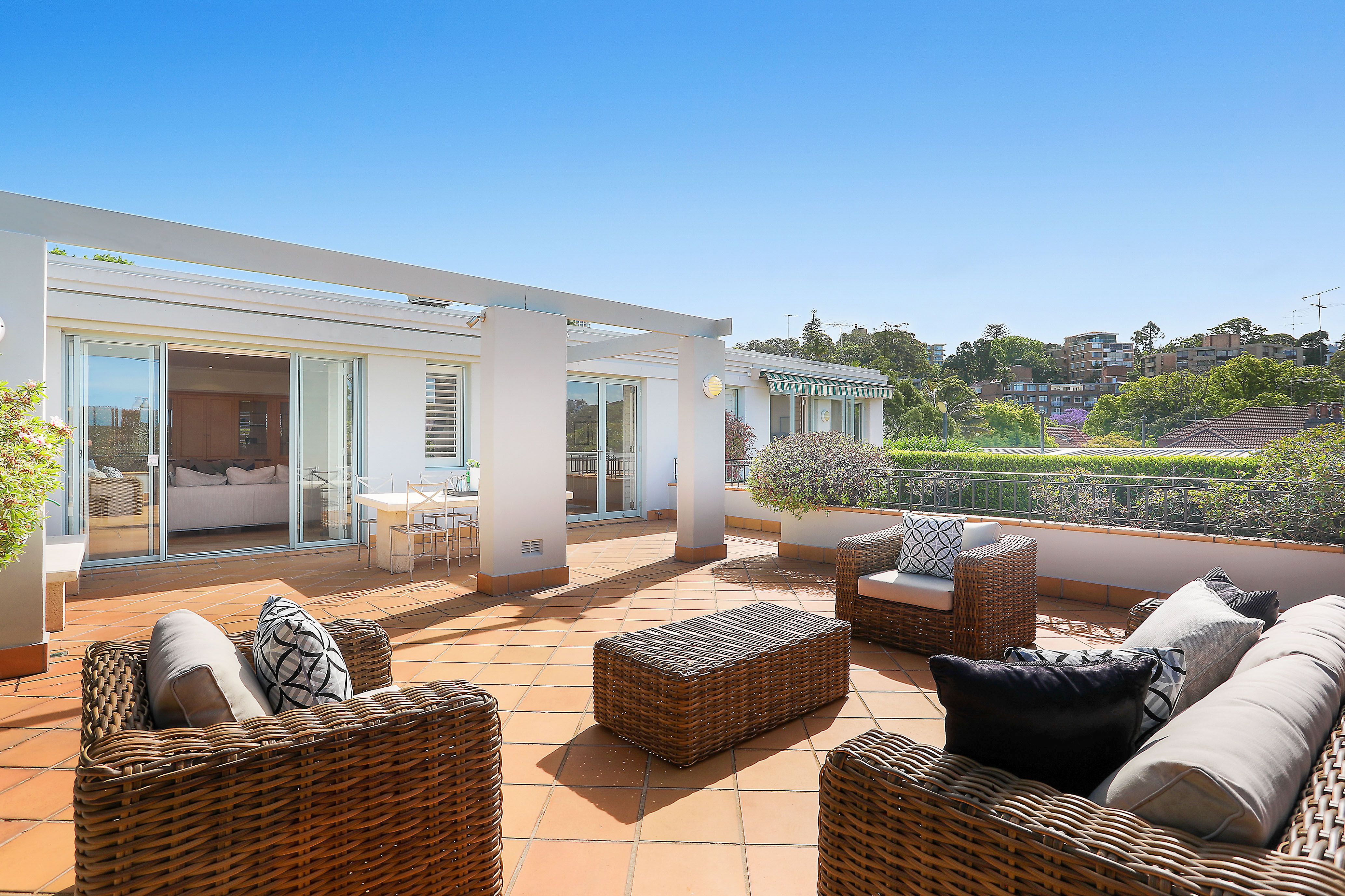 - 3 bed | 3.5 bath | 2 car - Boasts incredible 702sqm of in/outdoor living/entertaining (approx) - Striking interiors open to the north & bathed in sunlight - Formal/informal living/dining w/ exquisite custom joinery - Sequence of sunlit terraces for year round entertaining - Gourmet kitchen w/superior Ilve gas oven with rangehood - Separate accommodation wing w/ three oversized bedrooms - All bedrooms w/ built-in robes and deluxe marble ensuites - Bedrooms all enjoy access to private sun bathed terraces - Palatial master suite w/ boutique-style dressing room - Master ensuite with dual marble vanity & large spa bath - Ducted air conditioning and integrated sound throughout - Polished parquetry floors, vast storage, video intercom - Exclusive use rights to entry foyer of the apartment making it a whole complete private floor - Lift access to secure basement with two parking spaces and two double storage spaces - Steps to Double Bay village, shops, cafes and boutiques - Stroll to Steyne Park, ferries, 18 Footers Leagues Club - Moments to Edgecliff Station, city buses, elite schools