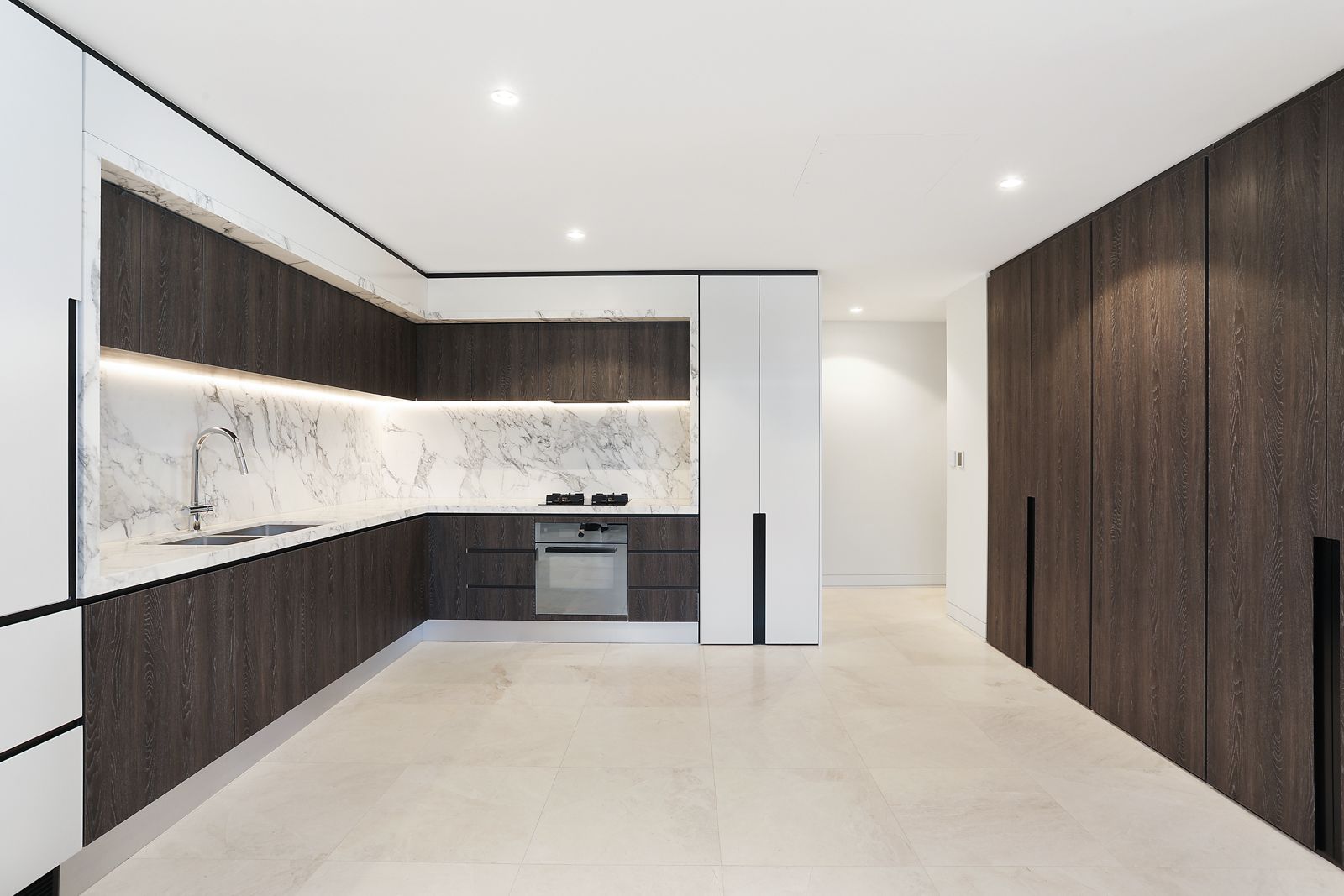 - 2 Bed | 2 bath | 1 Car - Brand new, never-before occupied luxury apartment - Fully integrated marble gas kitchen with Liebherr fridge & high-end V-ZUG appliances - European-inspired shuttered terrace offers the perfect indoor/outdoor lifestyle - Custom joinery, premium finishes and bespoke lighting - Deluxe marble bathrooms, main bedroom has walk-in robe - Ducted climate control, internal laundry with washer and dryer - Timber floorboards and travertine tiles throughout - LED lighting, electric blinds, security intercom, home automation - Secure parking, storage cage, level lift access, sophisticated communal lobby - Rear lane access via Knox Lane.