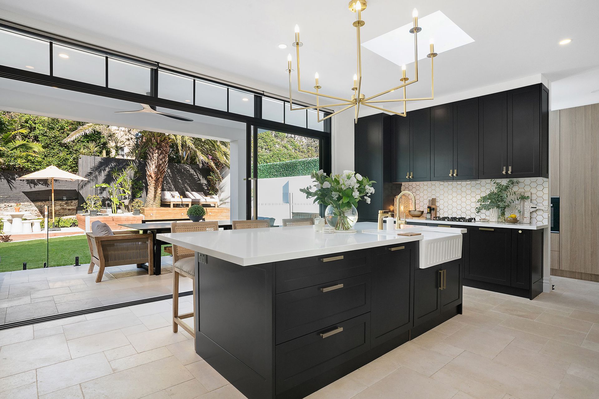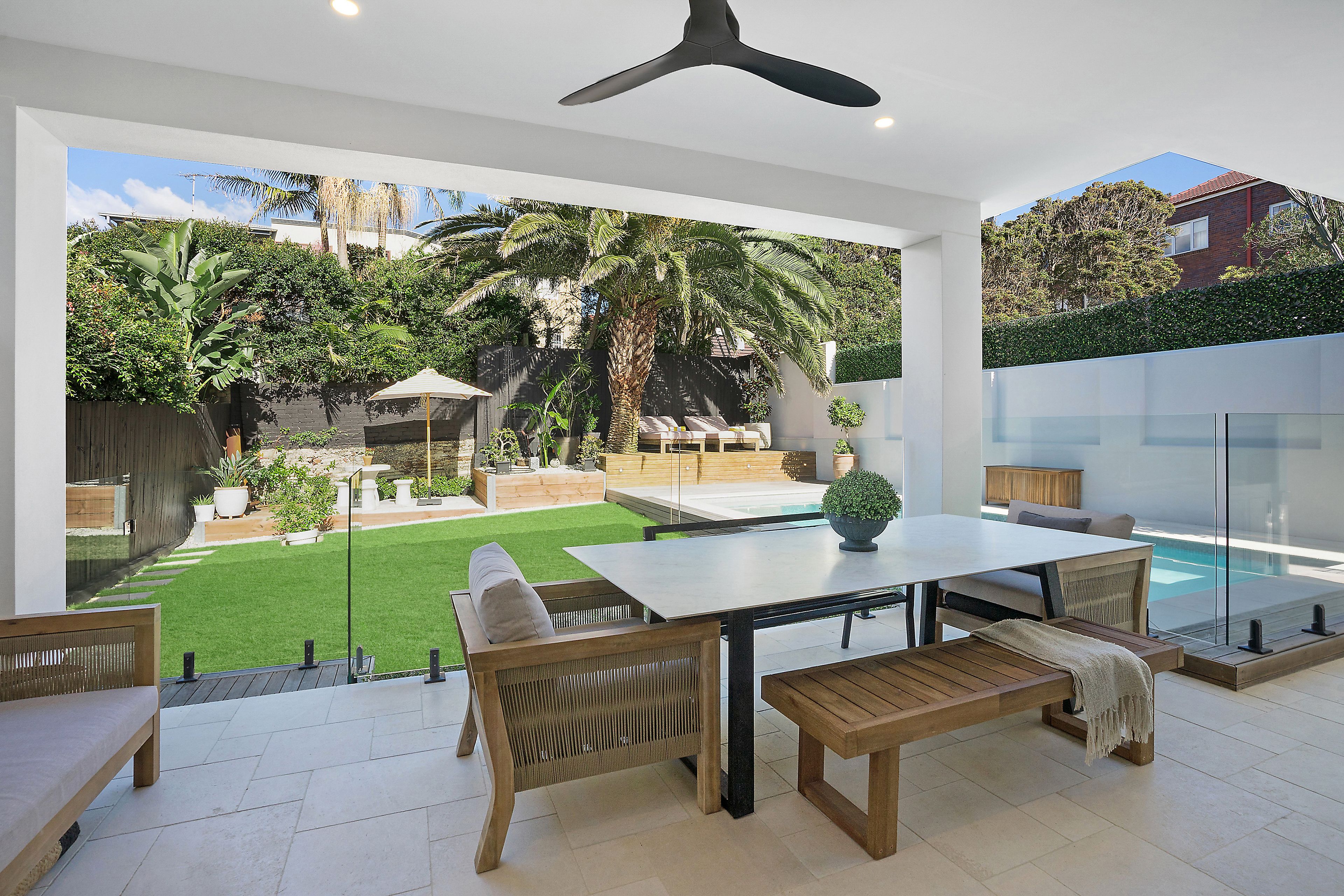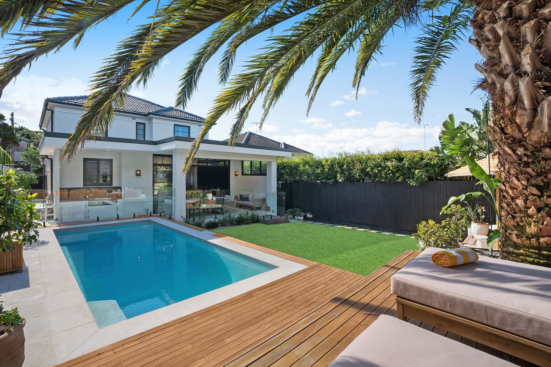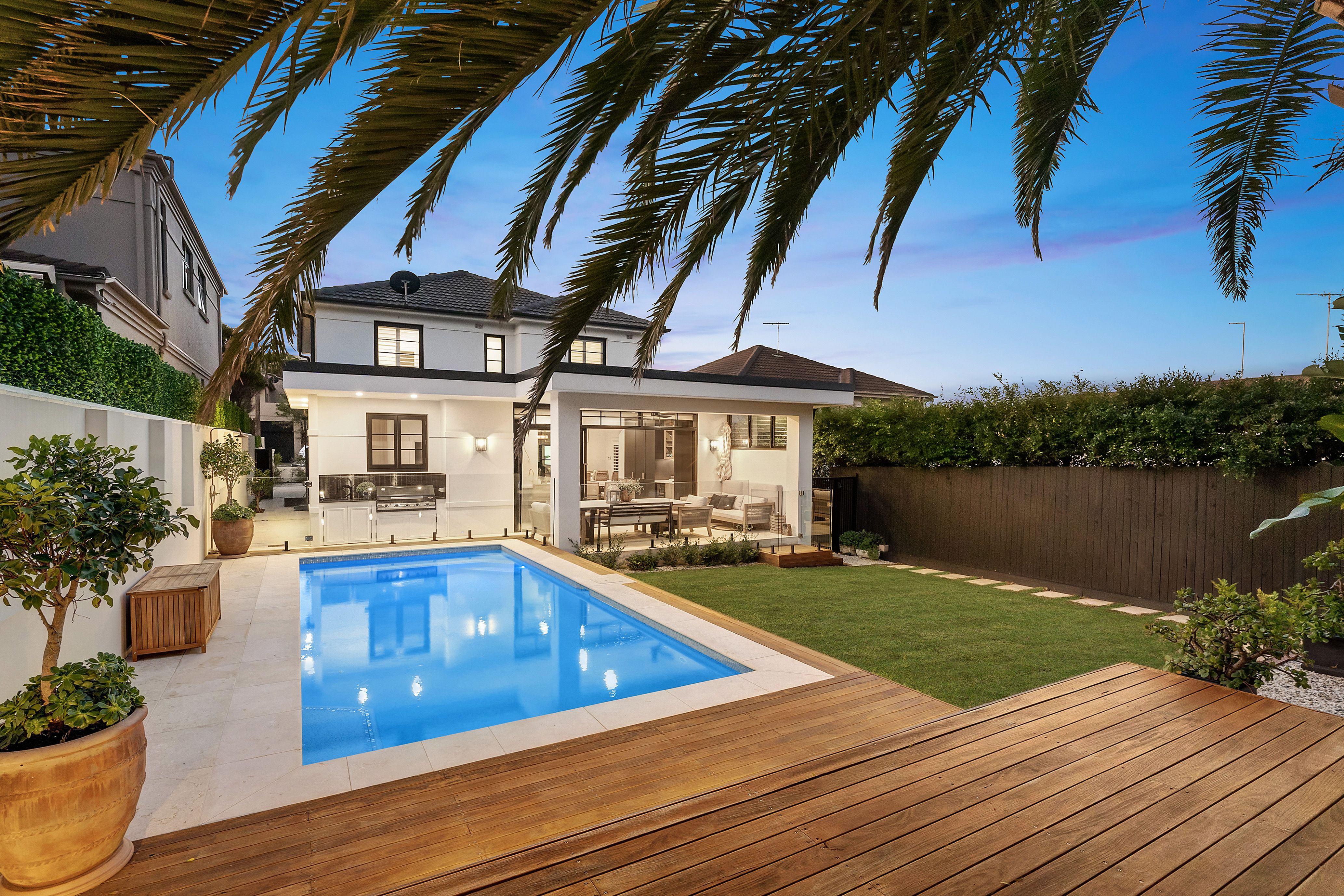 Uniting luxury inclusions, bespoke joinery and modern design, this beautifully renovated oasis promises sophisticated and convenient living. Enhanced by custom interiors and skylights, it offers a selection of immaculately appointed living/dining spaces that spill out to a private alfresco setting complete with built-in barbecue, timber deck and stunning in-ground pool. Additional highlights include a state-of-the-art kitchen and Coco Republic lighting fixtures. Located only footsteps from the coastline, it is close to village shops, popular schools and local buses.