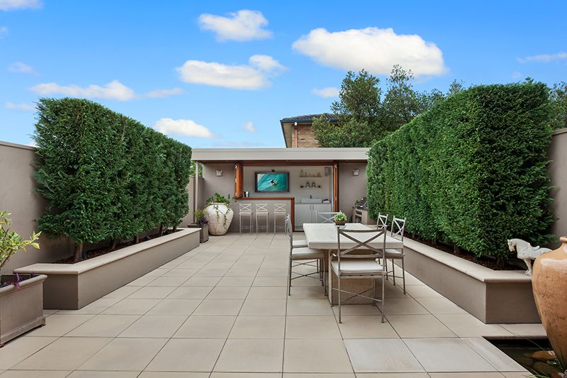 Light filled open design that integrates with the outdoor area Three double bedrooms all have custom built-in wardrobes Contemporary stone kitchen fitted with sleek Ilve appliances Deluxe full bathroom plus access to a large attic storage space Ultra-private landscaped courtyard and entertainment space Resort-style entertainment room with wet bar and bathroom Air conditioning, alarm, gas heating and CCTV security