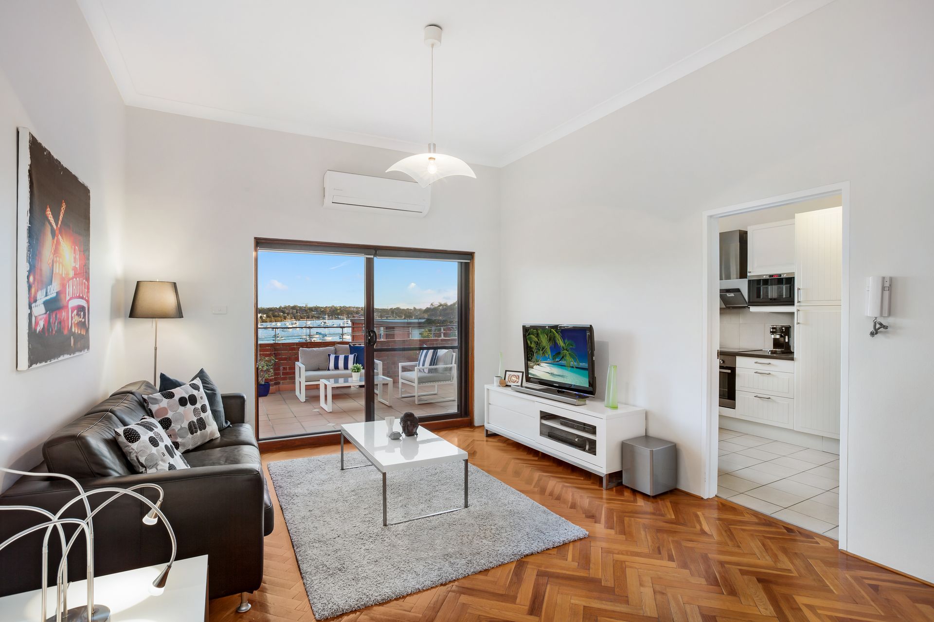 Light and airy living space with polished parquetry flooring An expansive 40sqm entertaining terrace with water views Queen sized bedroom fitted with a large built in wardrobe Recently renovated kitchen and separate internal laundry Lock-up garage with storage plus on-site visitor parking Crisp modern decor, full bathroom and air-conditioning
