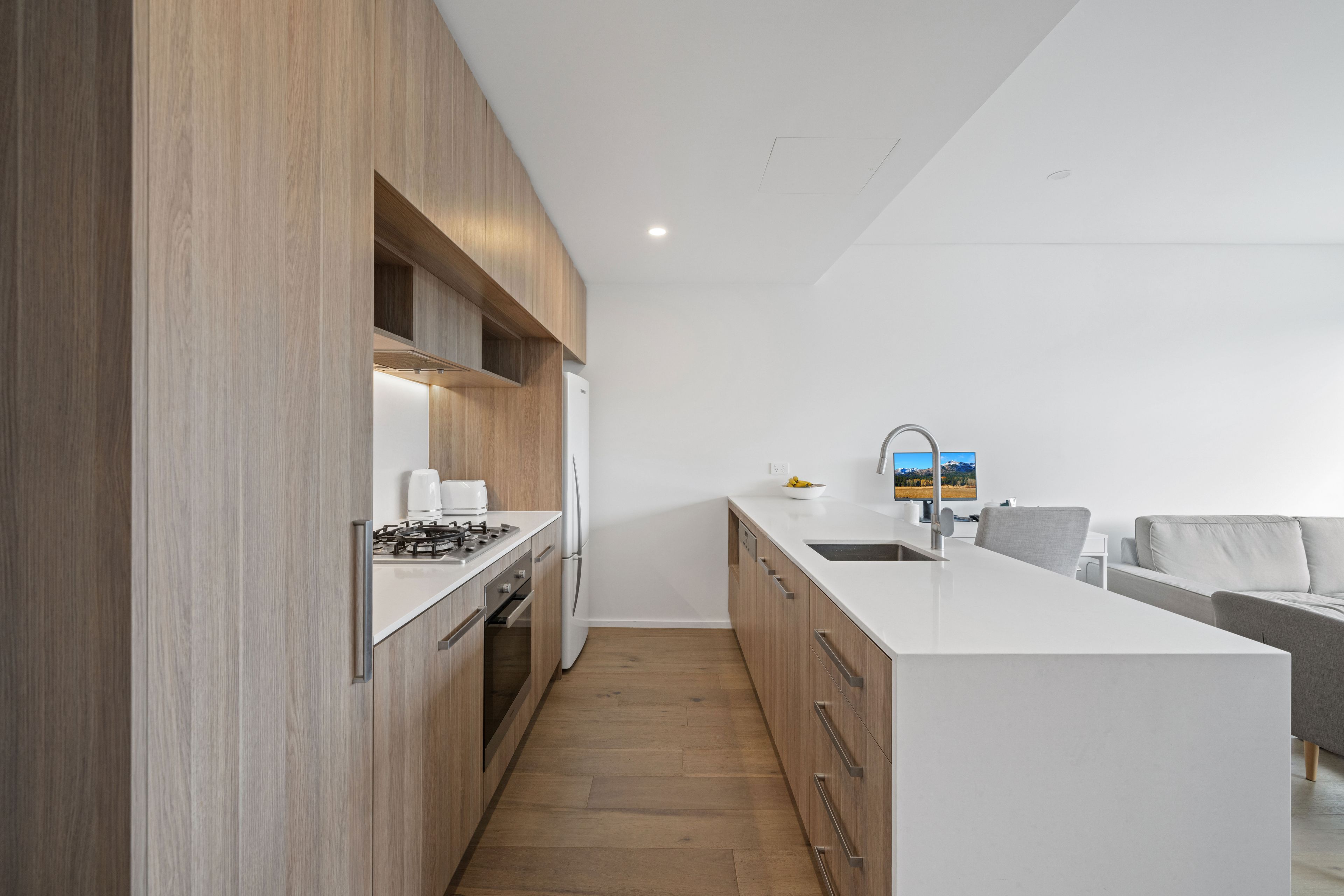 - Large bedroom with built in wardrobe - Spacious open plan living with study nook - Sundrenched balcony opens off living and bedroom and enjoys water views - Designer gas kitchen with Miele appliances, dishwasher and Caesarstone bench tops - Wide French Oak timber flooring, internal laundry, ducted air - Video security, internal lift access to security parking & storage cage