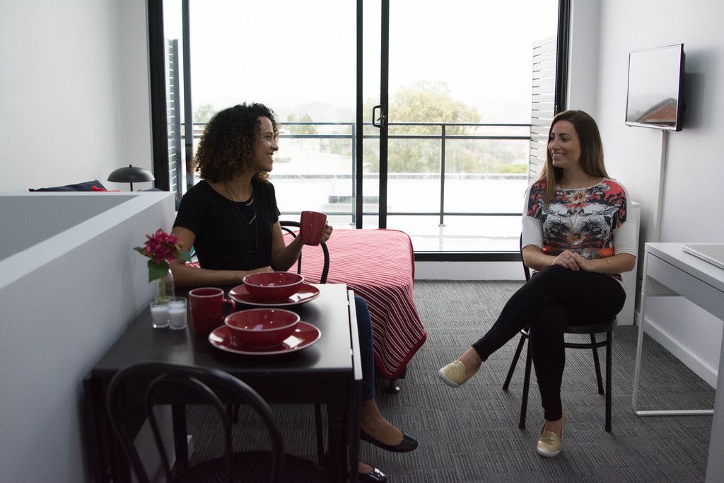 - European appliances - Studio with built-in robes - Designer bathroom - Internal laundry ( washing machine provided) - Balcony optional at additional cost - Sun drenched apartment - Layout may vary according to studios - Some studios may not include bed linen, lamp. - Fully furnished studios available for 6 to 12 month leases. - Includes electricity and Internet on the common area.