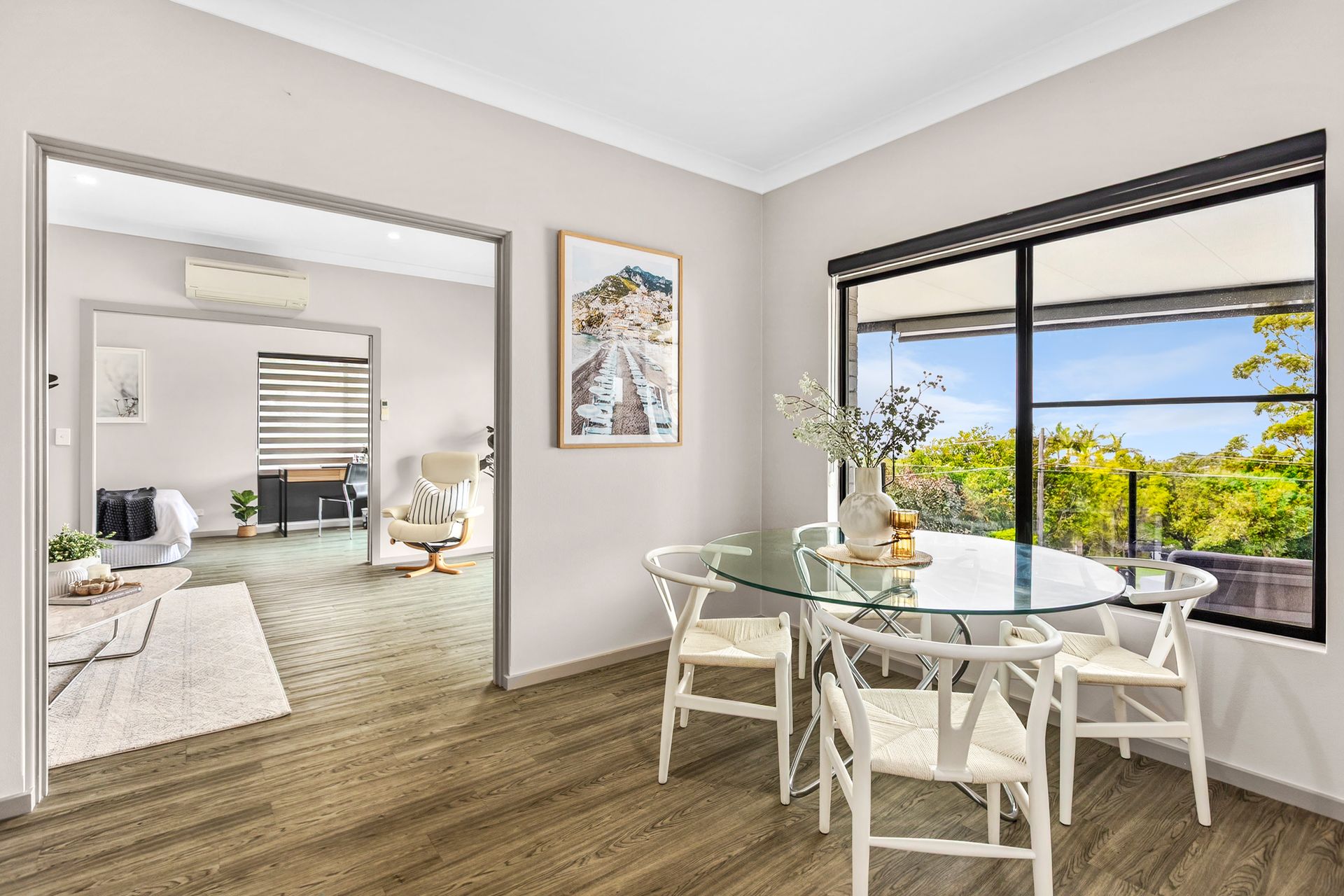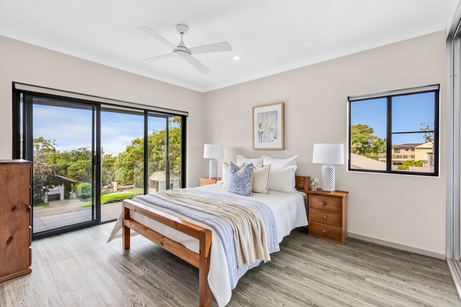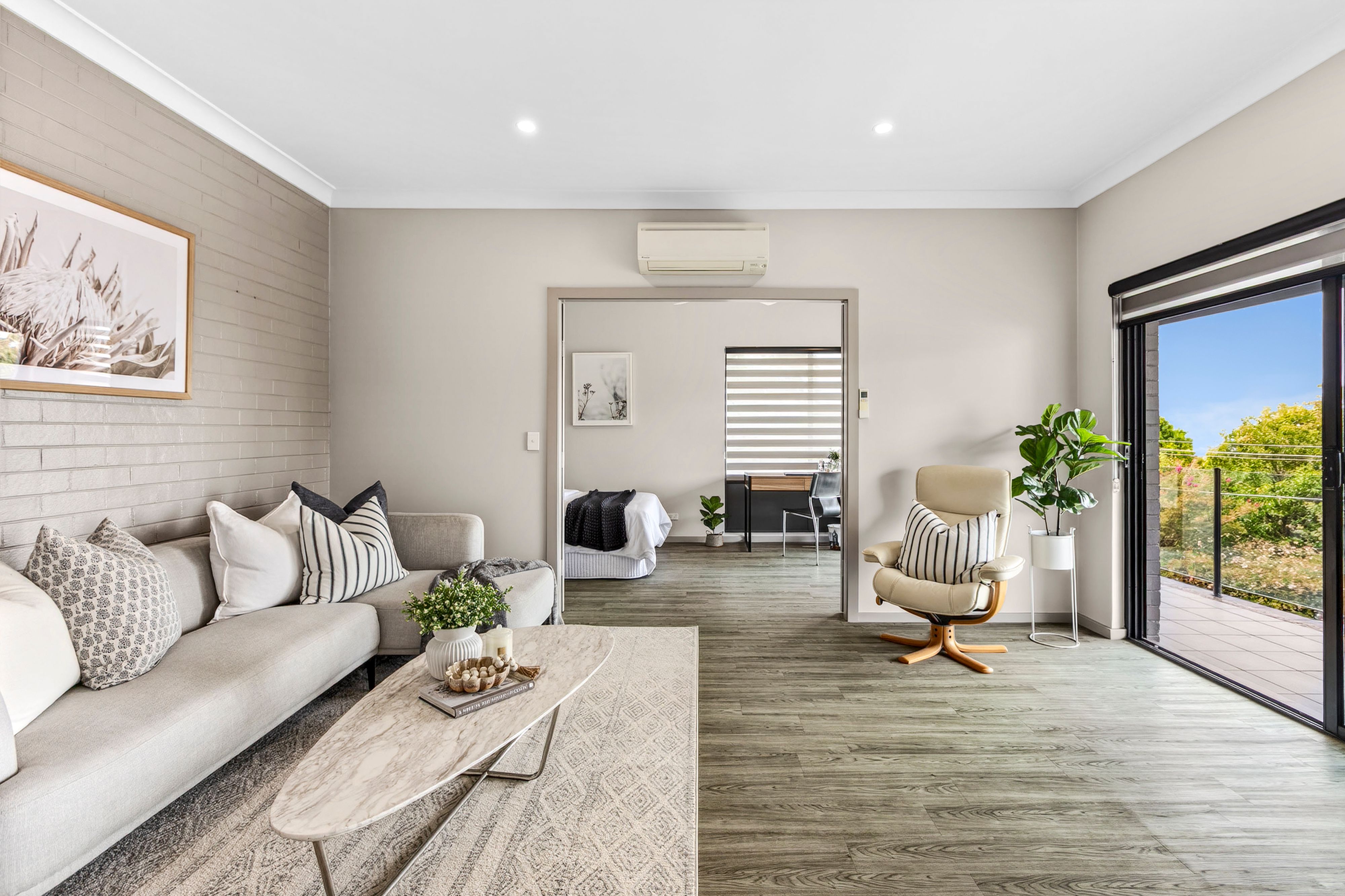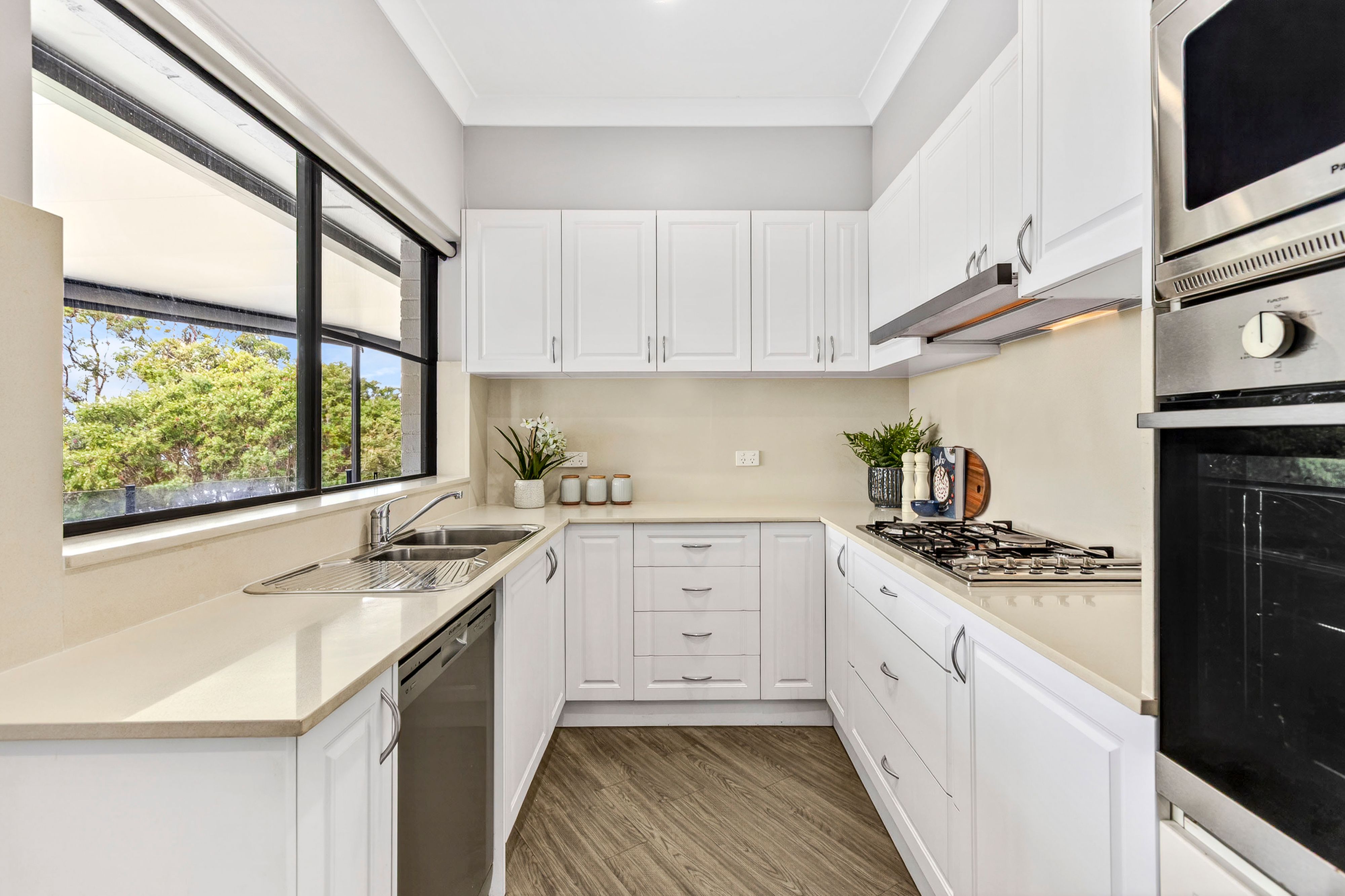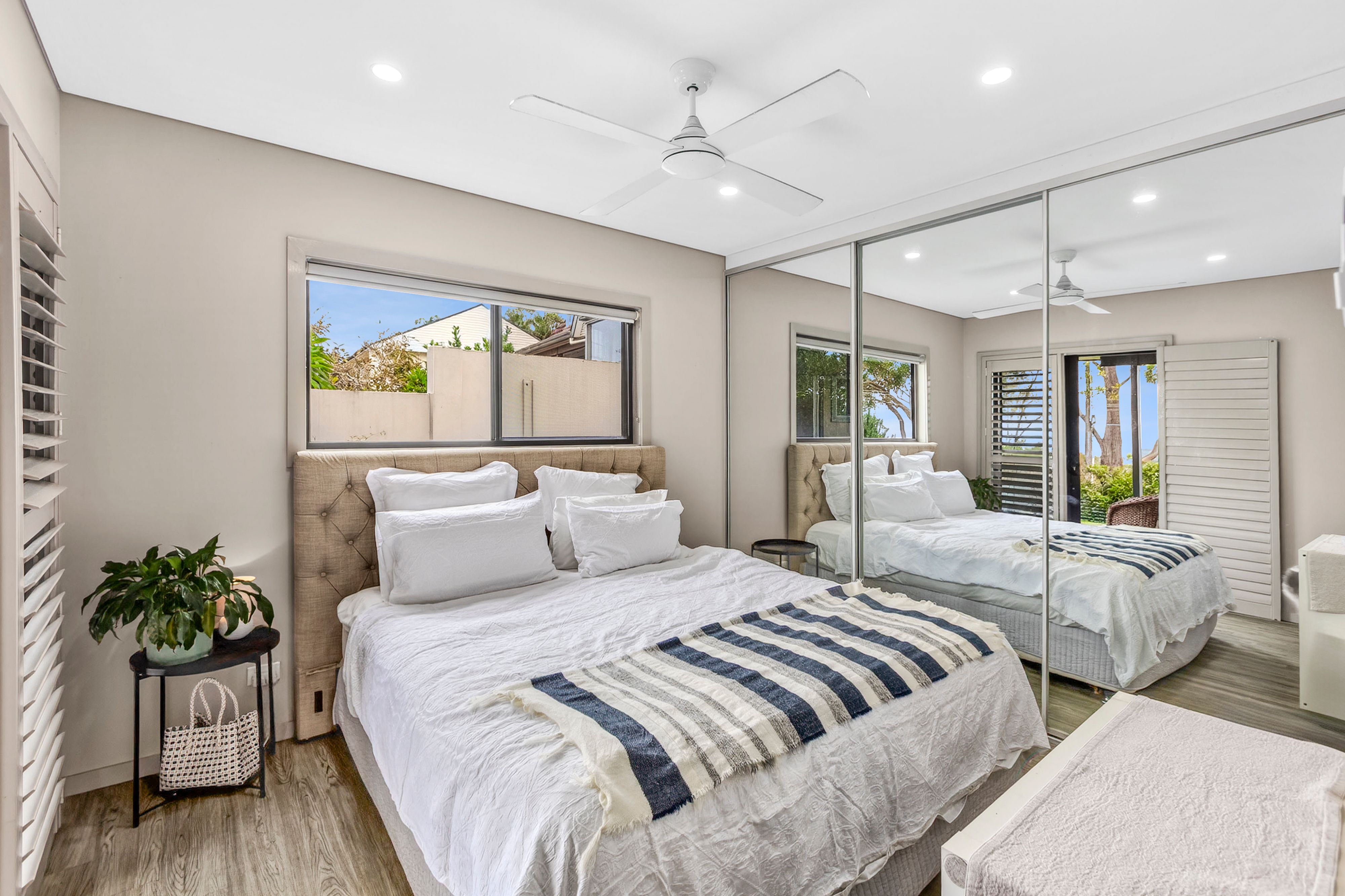 • Generous living and dining rooms with ocean views • Glass sliders open the living space to the terrace • Sleek kitchen with stone benches and splashbacks • Gas cooktop, wall oven and microwave, dishwasher • Spacious sunlit bedrooms with built-ins and views • An immaculate original and a modern bathroom • Optional integrated separate lower floor retreat • Living and dining room plus a modern kitchenette • Two further bedrooms and a stylish bathroom • High ceilings and new timber-look flooring • Split-system air conditioning and ceiling fans