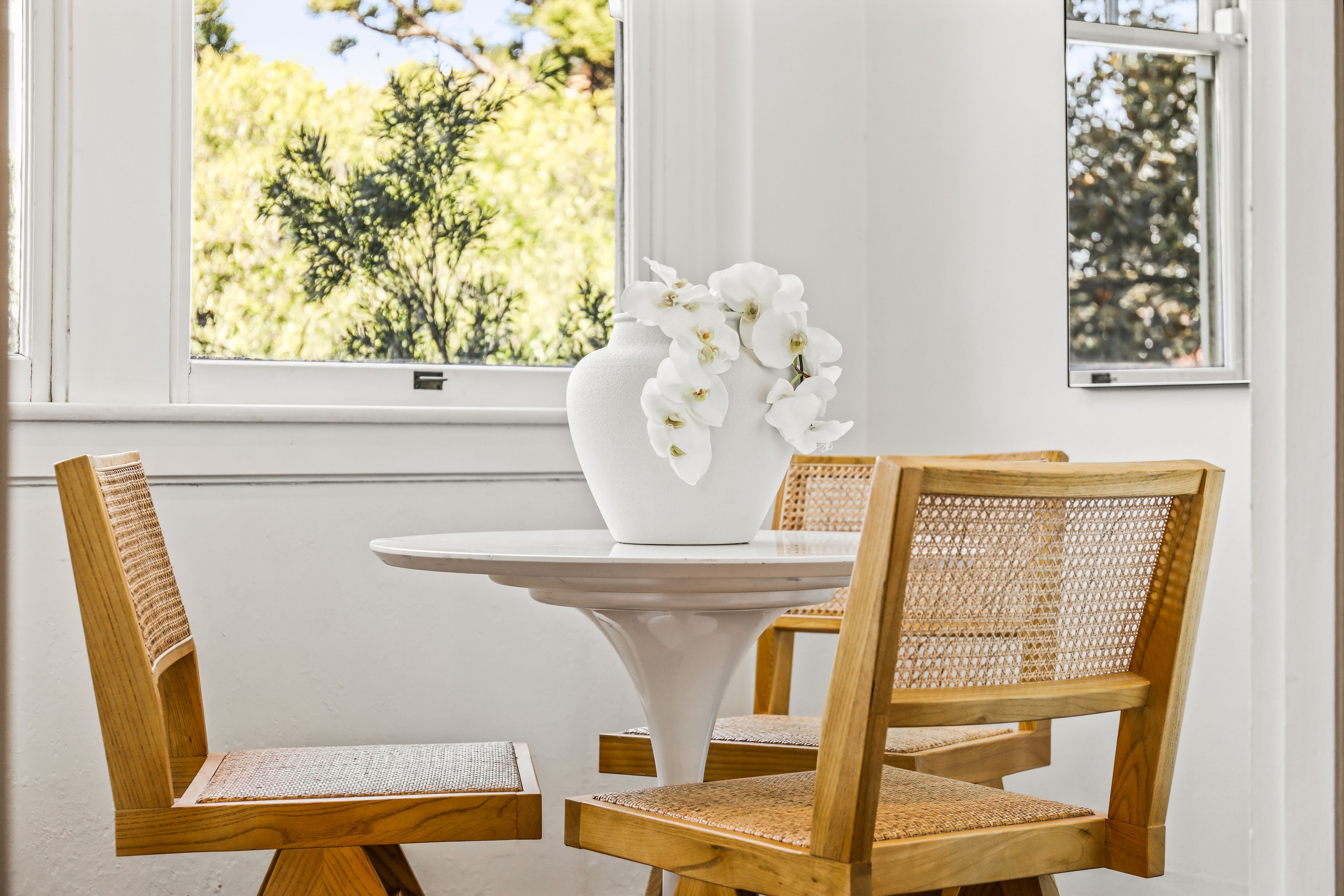• Picturesque, elevated views across Rushcutters Bay • Quiet rear position in a tightly held Spanish Mission building • Spacious living and dining zone flows into sunroom • Bay views from both the living area and sunroom • Renovated kitchen with Corian benchtops and dual sinks • Bosch gas cooktop, Ilve wall oven, and integrated dishwasher • Concealed internal laundry with LG washing machine • Queen-sized bedroom with original built-in wardrobe • Two-way bathroom with entry from hallway and bedroom • Features include bath/shower combo and pedestal basin • Handcrafted Spanish tiles in both kitchen and bathroom • Dedicated downstairs storage room for added convenience • Secure building of nine with pristine shared spaces • Clothes line available on the rooftop for use by residents' • Easy access to Kings Cross Station and weekend markets • Bus stop at the doorstep, 200m to waterfront parklands • 100m to local cafés, specialty stores, and boutique wine shop • 500m walk to Potts Point's restaurants and amenities