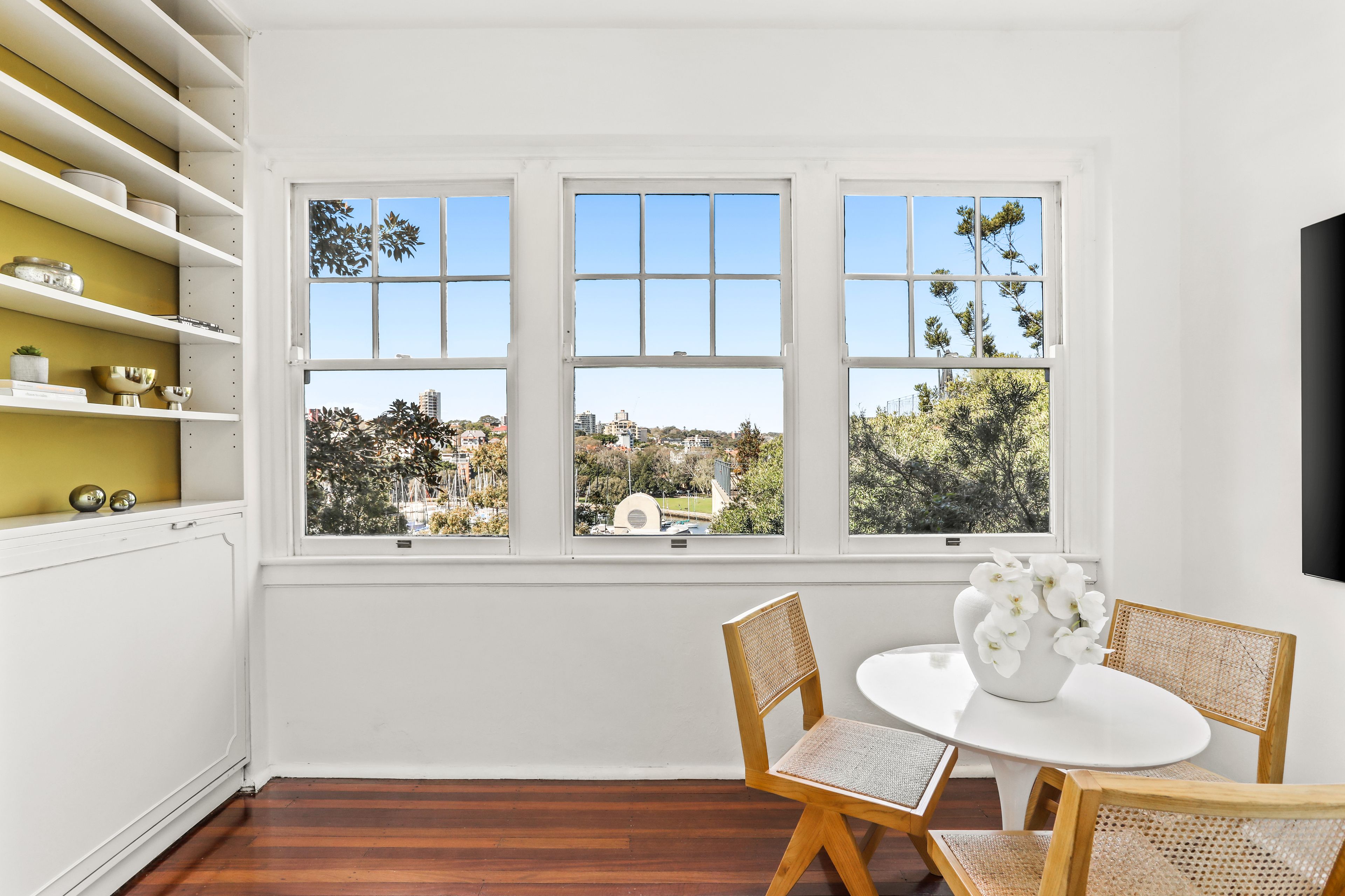 Enjoy peaceful, leafy outlooks across the yacht-filled waters of Rushcutters Bay from this charming one-bedroom apartment, tucked away at the rear of Level 1 in a boutique Spanish Mission-style building. Positioned for ultimate privacy, the residence blends refined character with modern updates, featuring high ceilings, polished timber floors, and a generous layout. A wide entry hall leads into a well-appointed Corian kitchen, a stylish two-way bathroom, a queen-sized bedroom, and an expansive living and dining space that opens to a light-filled sunroom capturing serene bay views. One of just ten apartments in a well-maintained block with a classic arched entryway and elegant common areas, the property occupies a blue-chip position on the Elizabeth Bay peninsula. Set directly opposite Macleay Reserve in the exclusive "Loop" section of Elizabeth Bay Road, it's just steps to public transport, 100 metres to local shops and cafés, close to Rushcutters Bay Park, and an easy stroll to the heart of Potts Point's vibrant café and dining precinct.
