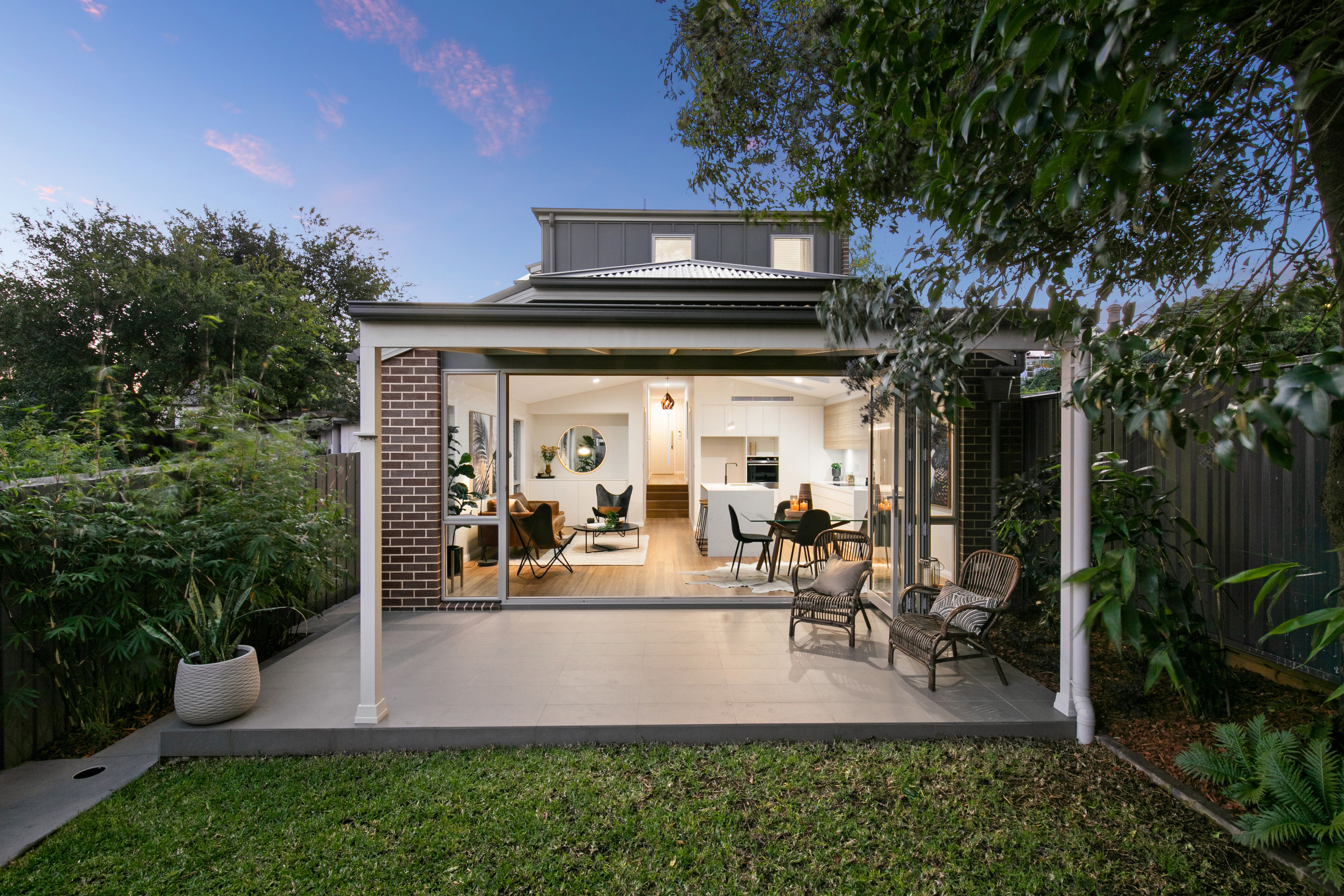 - Clean contemporary lines, solid Blackbutt floors throughout - 4 double bedrooms, 3 with built-in robes and plush carpet - Master bed with an ensuite, 4th bed ideal as a home office - Light-filled living rooms, shadowline ceilings, ambient lighting - Skylit designer island kitchen with a large breakfast island - 50mm stone benchtops in a marble design with waterfall edge - Integrated appliances, extensive Blum cabinetry, Reginox sink - Spacious open living and dining with custom media cabinetry - Seamless flow to a covered dining terrace with outdoor lighting - Landscaped child-friendly garden with leafy treescape surrounds - 3 luxurious designer bathrooms and a full size internal laundry - Stone-topped vanities, family bathroom with freestanding tub - Ducted reverse cycle air, ceiling fans, plantation shutters, alarm - Auto gate to double parking, lock-up garage (internal access) - 500m to Newington College, stroll to the Organic Food Markets - Rates: Water $432pq, Council $324pq (Both approx.)