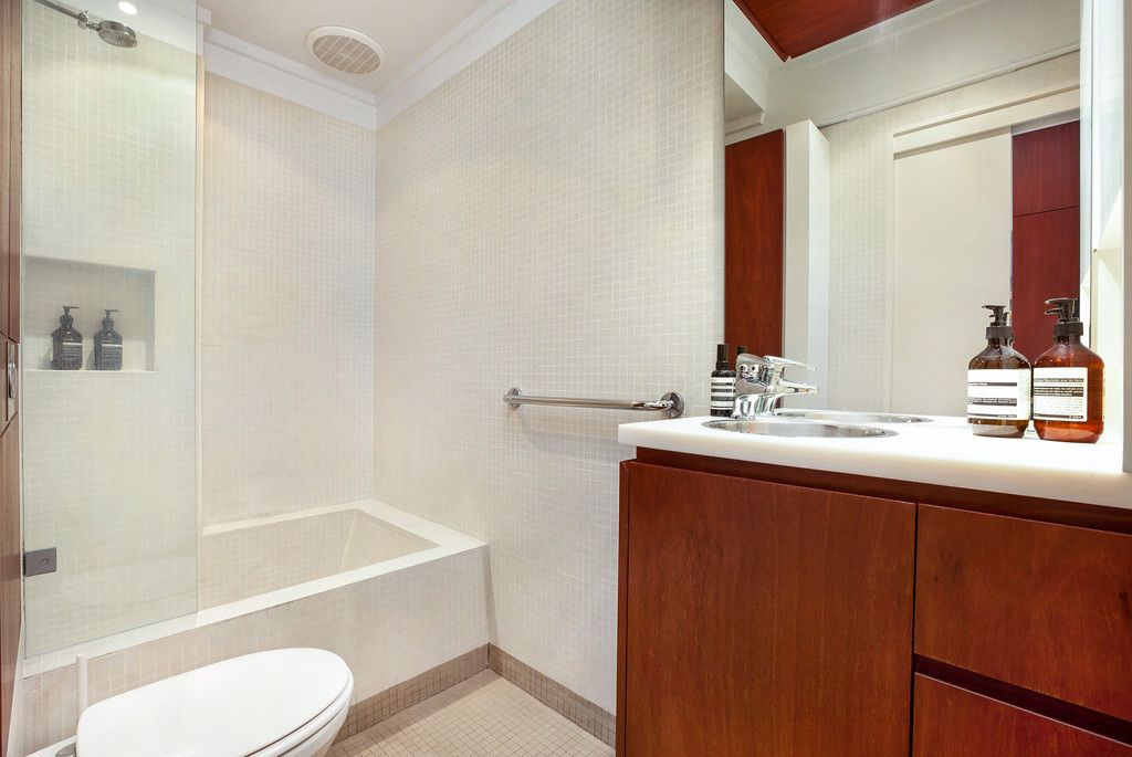 Beautifully renovated modern 2 storey home providing a light-filled designer haven with an exceptional sense of space and privacy. Created to capture fresh air and provide easy in/outdoor living, it offers a sleek executive residence. Formerly 2 bedrooms, the upper level has been opened up to create one enormous bedroom with generous built-ins. The wall can be easily replaced, converting it back to its original 2 bedrooms.