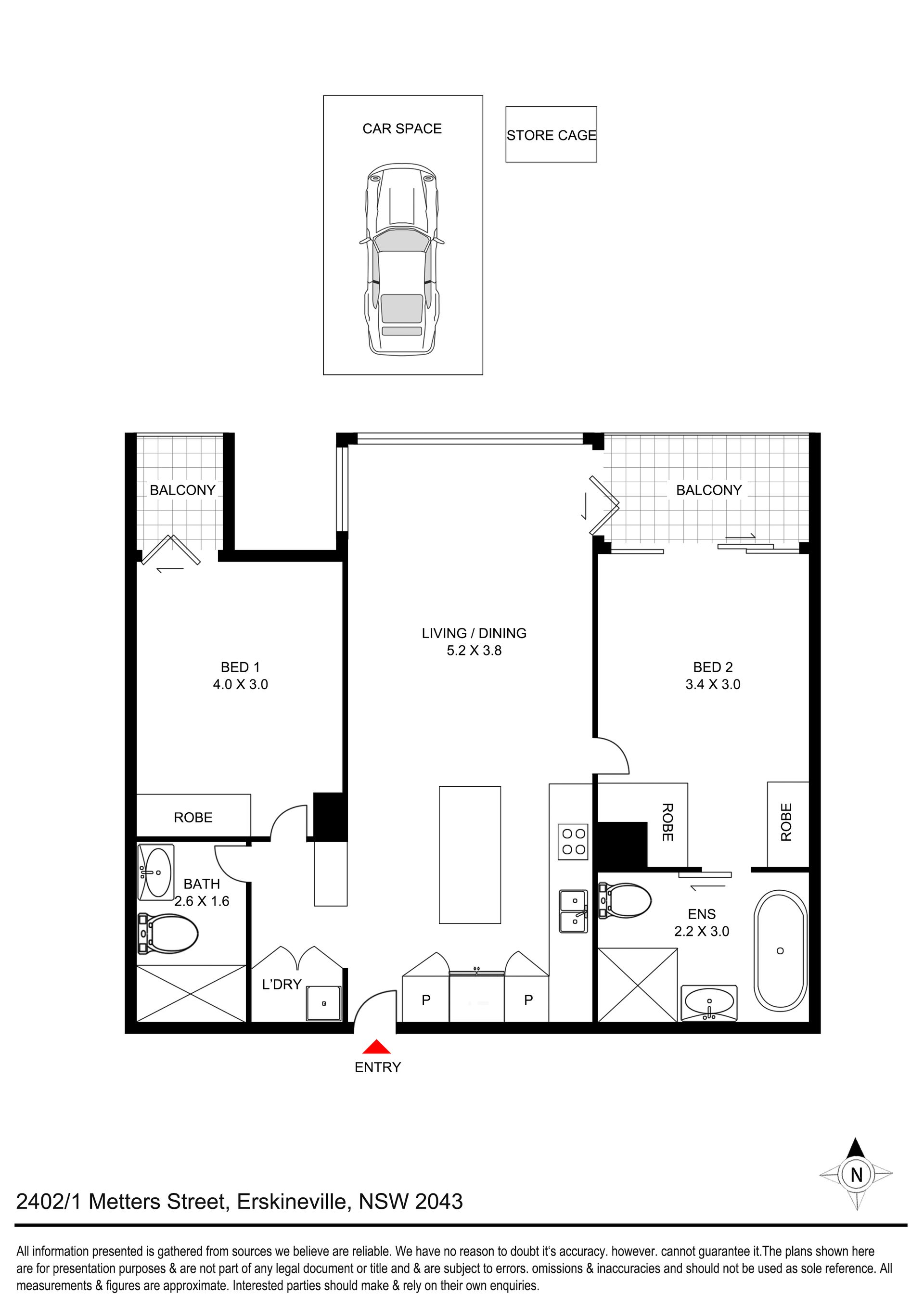 Total Area on the title: 98 sqm Floor Plan Area: 80 sqm with Car Space with Storage: 18 sqm.