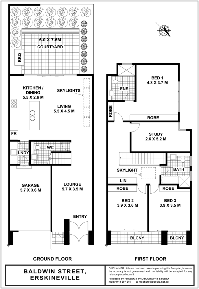3 generous sized bedrooms, main on second level with a stunning en-suite. There are built in wardrobes in 3 of the bedrooms. Large study upstairs, could be used as a 4th bed. Expansive sun filled open plan living space with polished timber floors and bi-folding doors that seamlessly overlook the courtyard area. State of the art kitchen with clean cut finishes and quality stainless steel appliances together with marble bench tops. 3 sleek bathrooms, the main with bathtub Private entertaining courtyard that's perfect for any occasion. Lock-up-garage with internal access to the house 195sqm of internal living Features include: Alarm system, video intercom, internet points upstairs and downstairs and BBQ gas point on the outside patio.