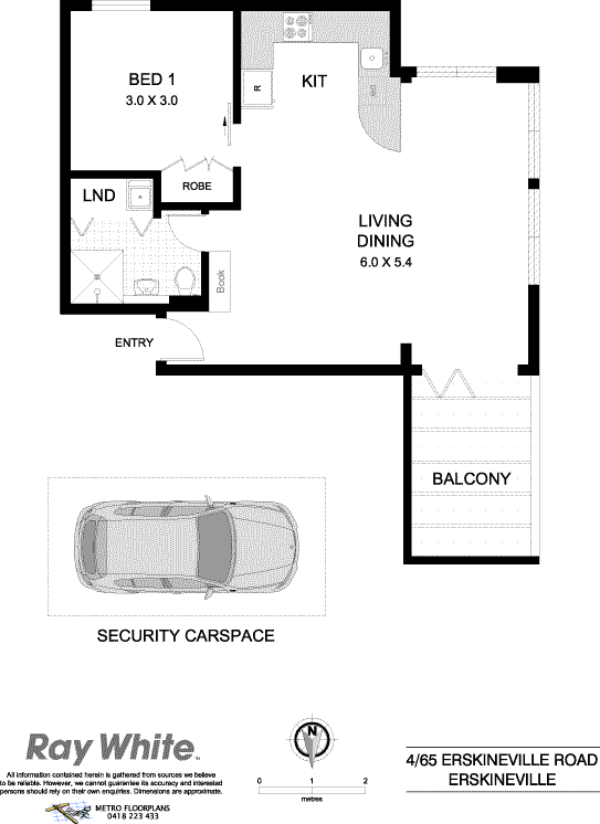 Dbl bed with built-ins, separate fully tiled bathroom Bright open plan living and dining with tiled floors Living area incorporates a sleek CaesarStone kitchen Smeg appliances including dishwasher, gas cooking Internal laundry, allocated basement parking space Security building with a shared rooftop terrace area
