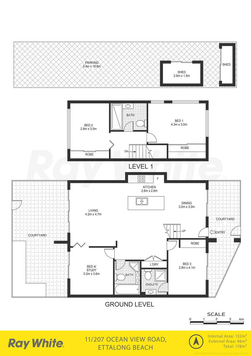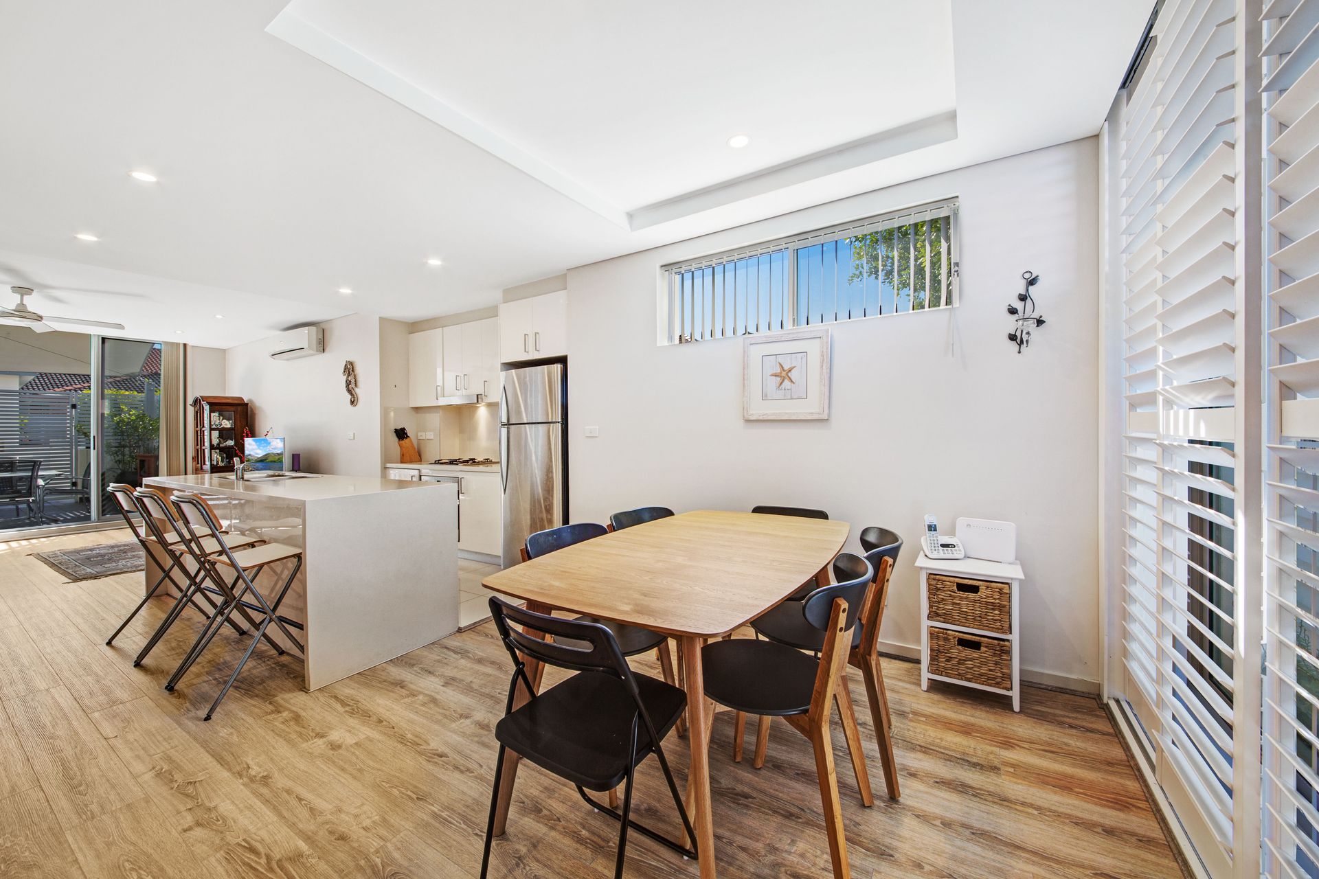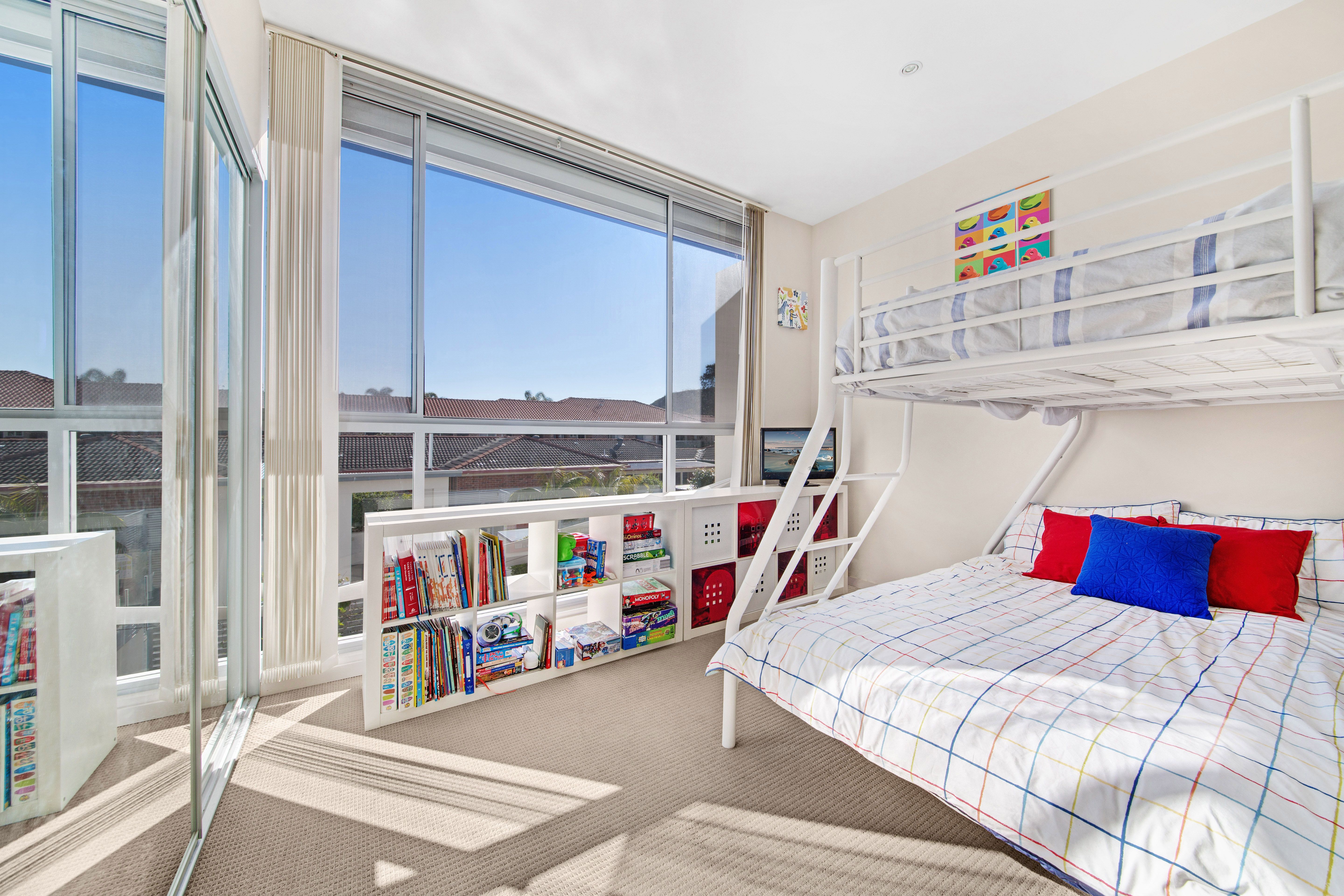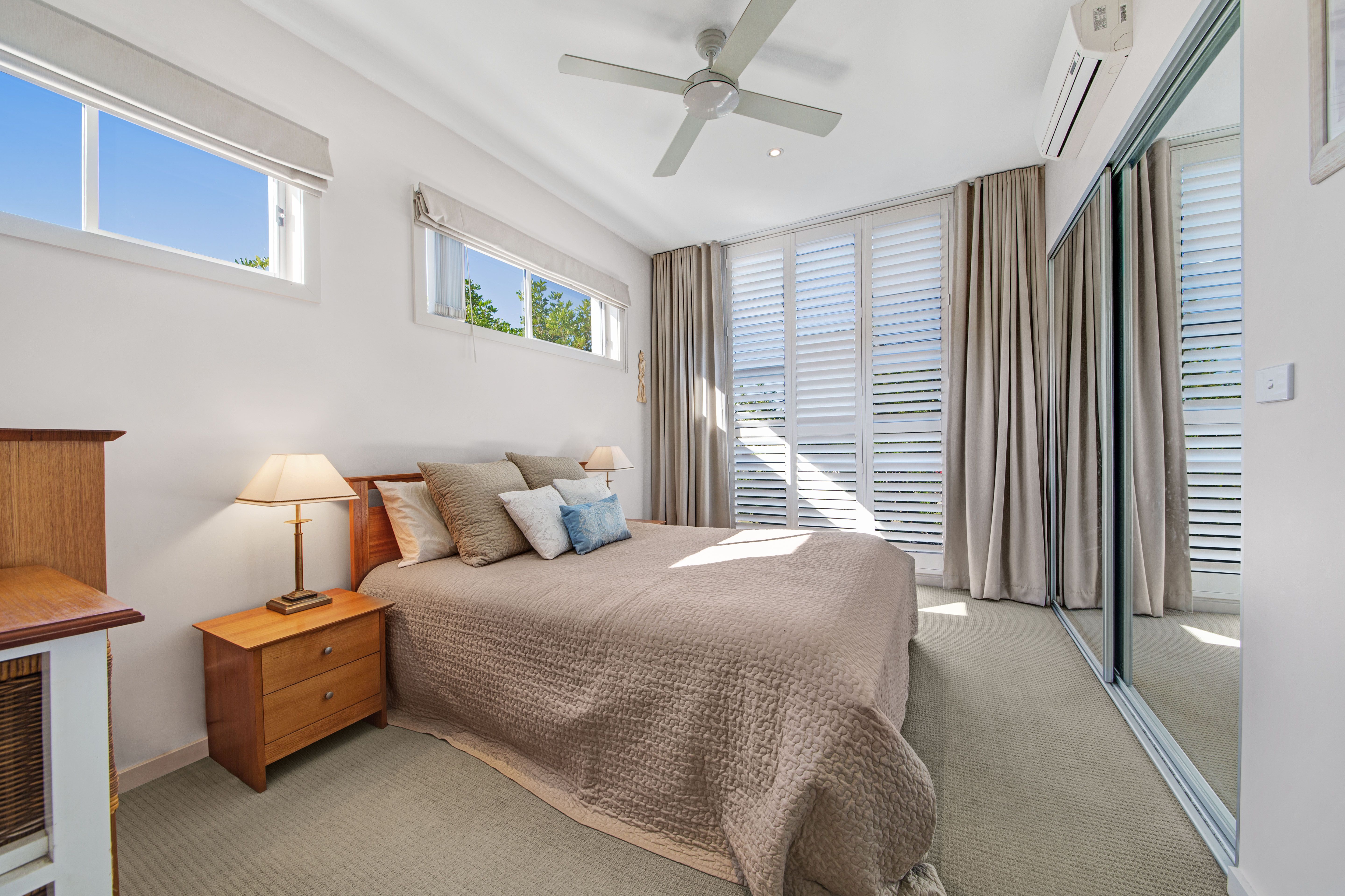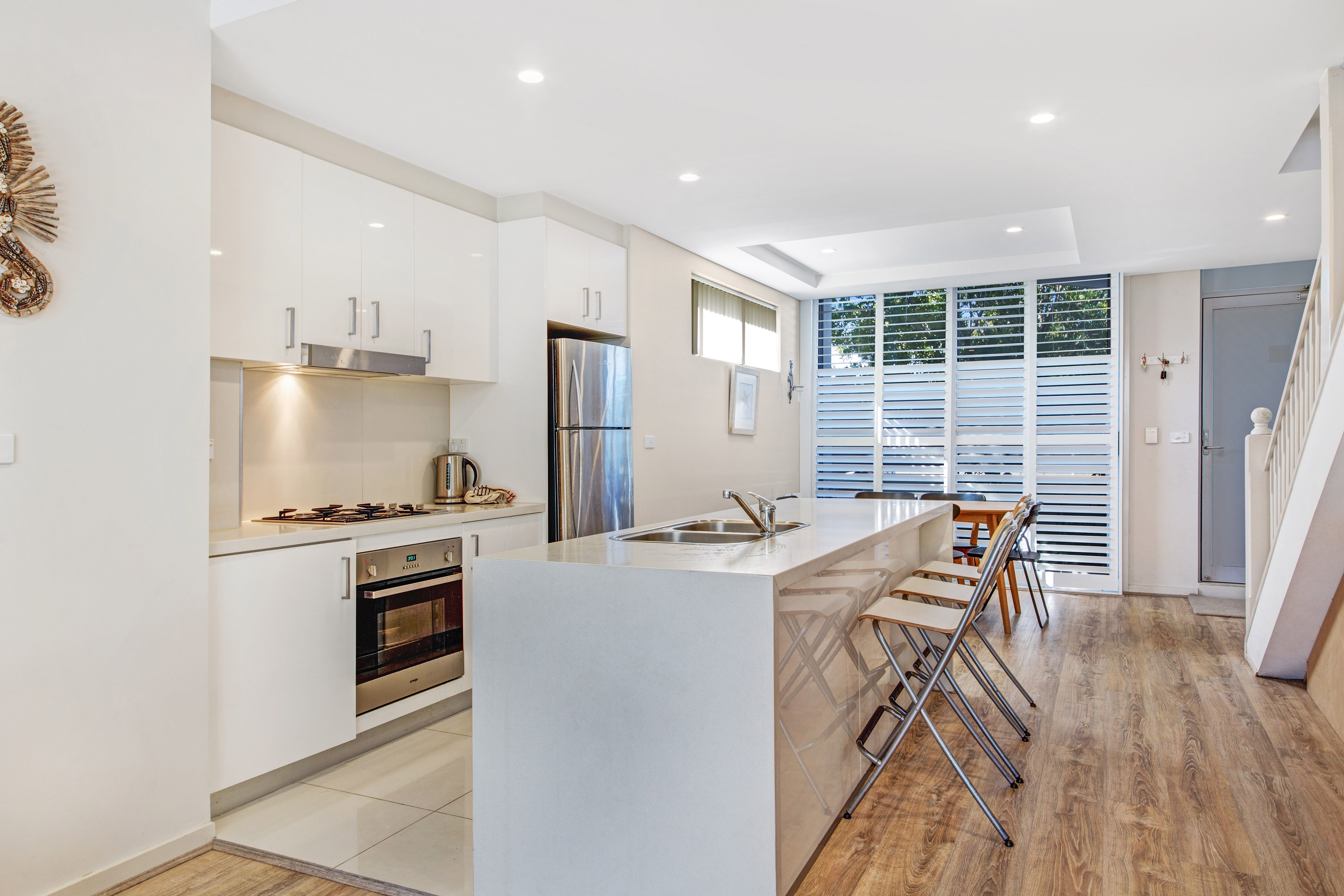- Three spacious bedrooms with built in robes to all - Fourth bedroom/study downstairs with direct access to rear courtyard - Three bathrooms throughout including an ensuite to the downstairs bedroom - Modern kitchen with island bench, stone benchtops and gas appliances - Separate living and dining areas off each side of the kitchen - Large BBQ/alfresco area with direct access to common area and in ground pool - New floating timber floors on lower level, plantation shutters and air conditioning - High ceilings throughout provide a sense of space and an abundance of natural light - Secure underground parking for three cars, additional storage, security intercom - Sought-after location only metres to Ettalong Beach, markets, shops, cafes and ferry