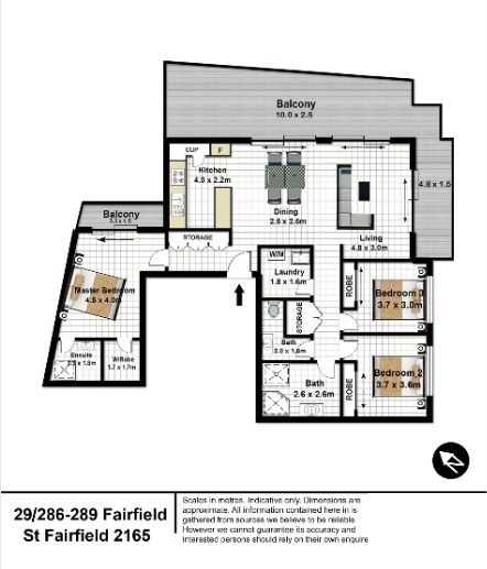 * 3 bedrooms * Walk in robe to main bedroom * Ensuite to main bedroom * Mirrored robes to two rooms * Open lounge room and dining room * Separate kitchen with dishwasher * Bathroom with separate powder room * Internal laundry * Tiles to living areas * Floorboards to bedrooms * Split system air conditioners to lounge room and main bedroom * Large balcony off lounge room * Two allocated parking spots * Only unit on level 3 with lift access * Across from Fairfield Train Station