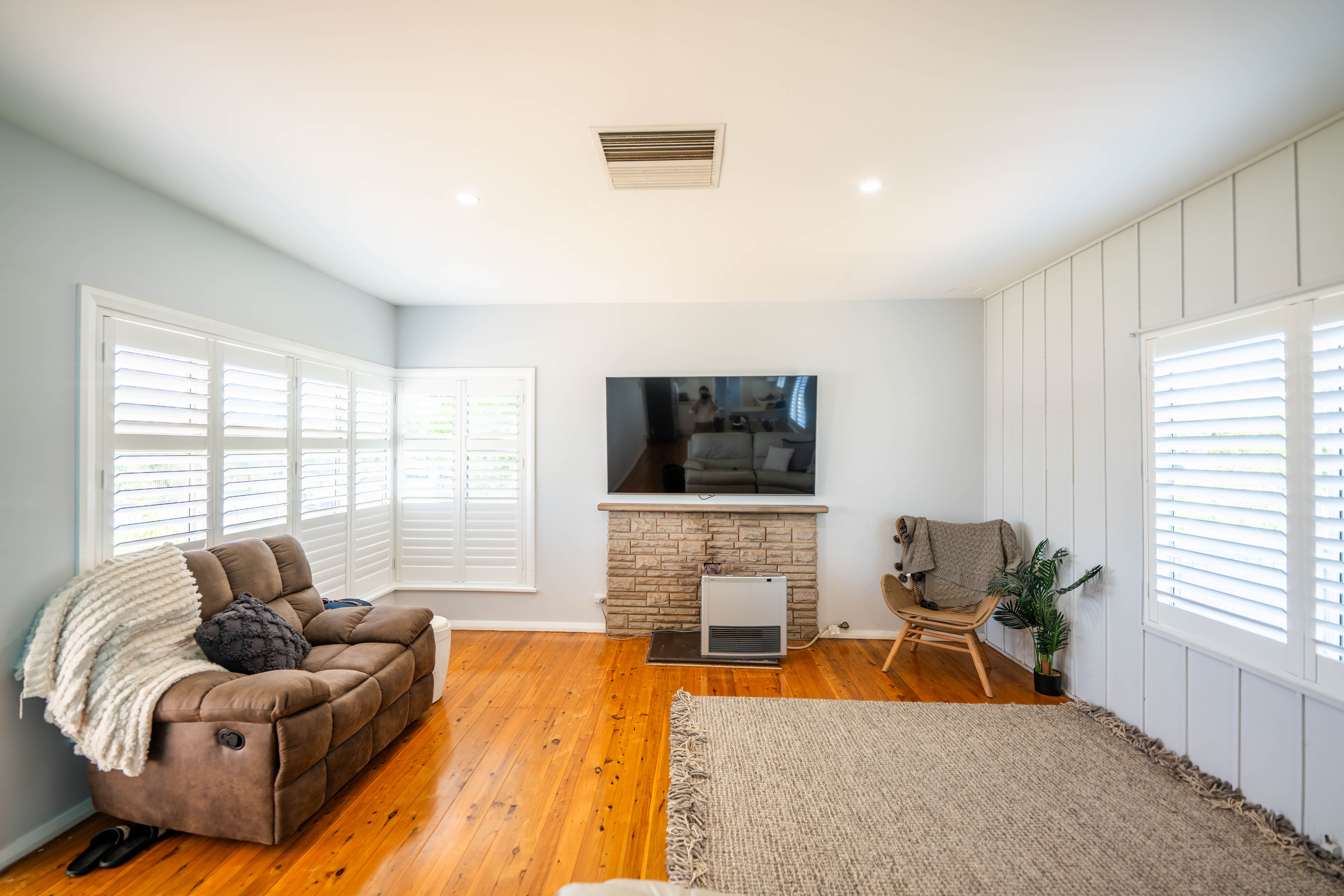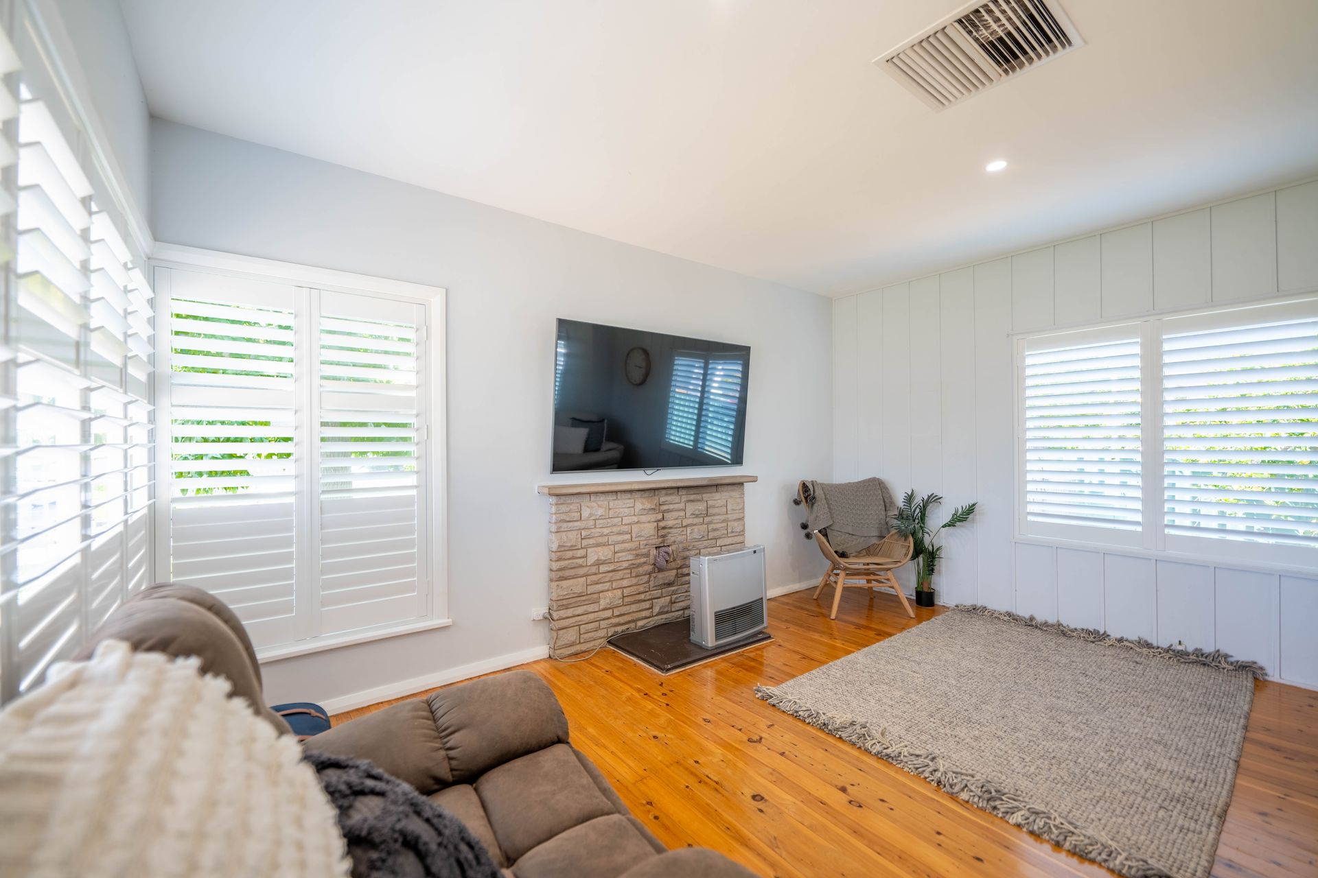 * 3 good size bedrooms, with builtin robes in 2 rooms. Main has undercarpet heating. * Open plan living area with polished floorboards throughout. * Modern Kitchen, with good cupboard space, electric cooking and dishwasher * 2nd toilet located off laundry area * Evaportaive air conditioner & Bayonet point * Plantation shutters on window * Single car garage