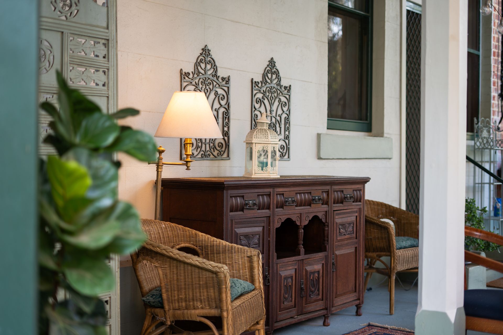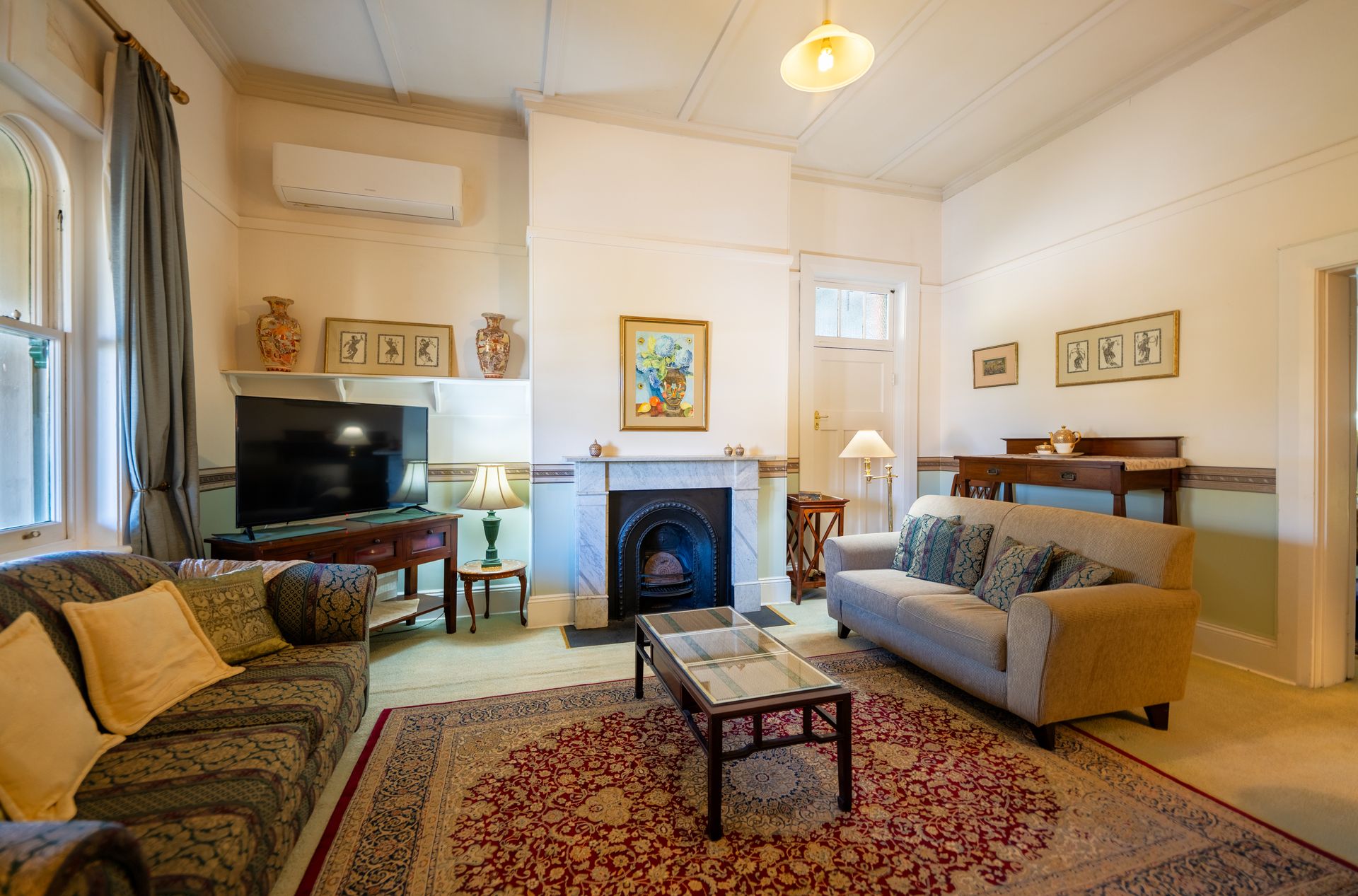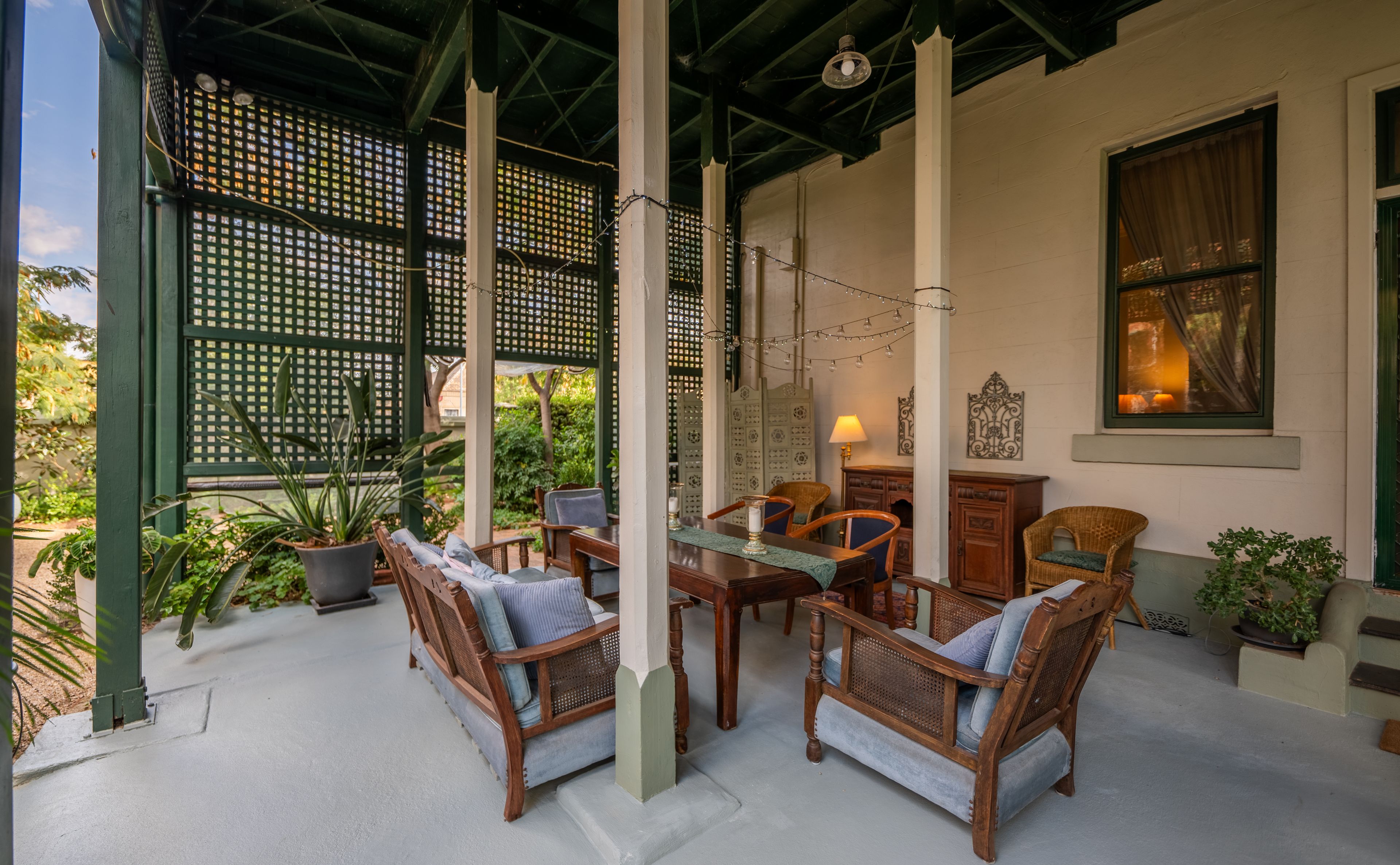 Throughout, period details abound: intricate lacework, wrought iron pillars, and elegant woodwork provide visual delight at every turn, while modern comforts have been seamlessly integrated. Step outside, and you're met with a tranquil, park-like setting complete with lemon-scented gums, fruit trees, and lush grounds that offer a peaceful retreat from the everyday.