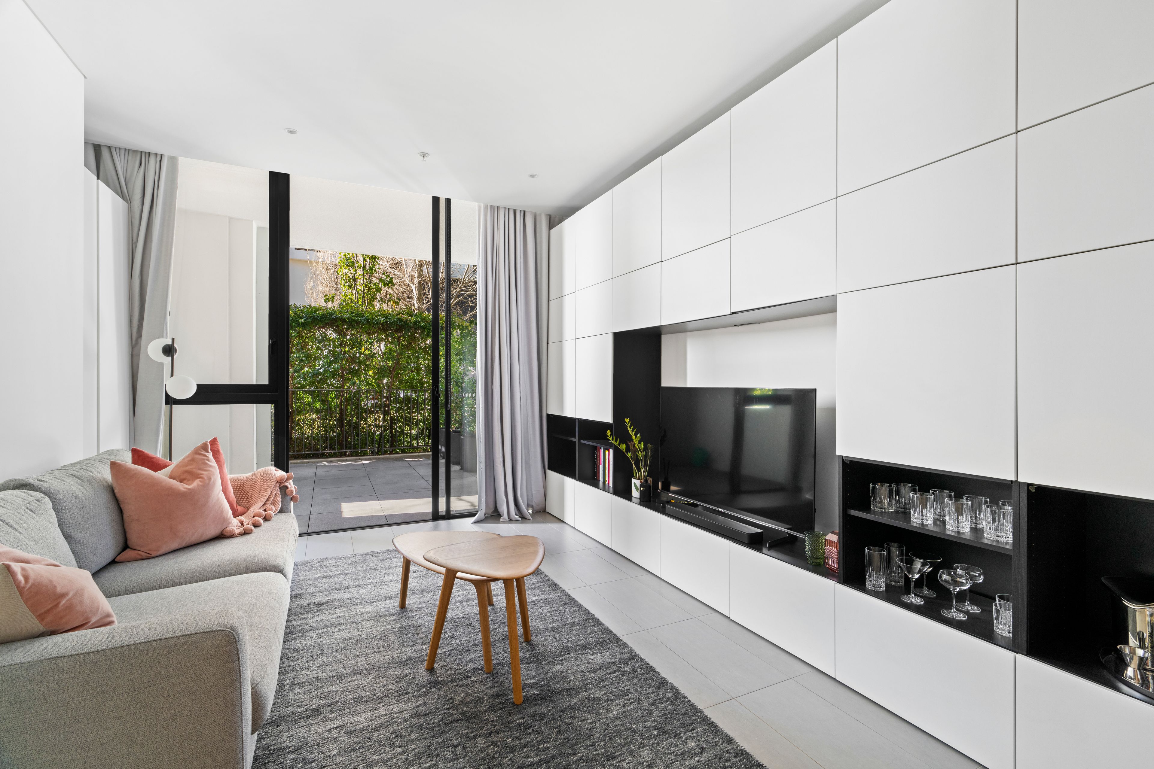 - Open-plan living flows seamlessly to the entertainers' terrace - Sun-drenched alfresco terrace framed by manicured greenery - Stone-topped gas kitchen, Miele appliances, integrated fridge - Well-proportioned bedroom with terrace outlook and built-ins - Luxurious stone bathroom appointed with frameless shower - Private street entrance, custom cabinetry, air conditioning - Low strata fees, internal laundry with Miele washer and dryer - Secure single-car basement parking including storage cage - Steps to walking and cycling tracks, supermarkets and cafes - Stroll to Annandale Village and cosmopolitan Glebe Point Rd