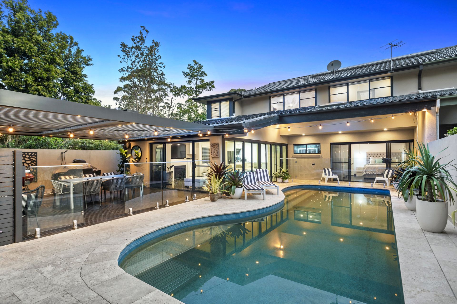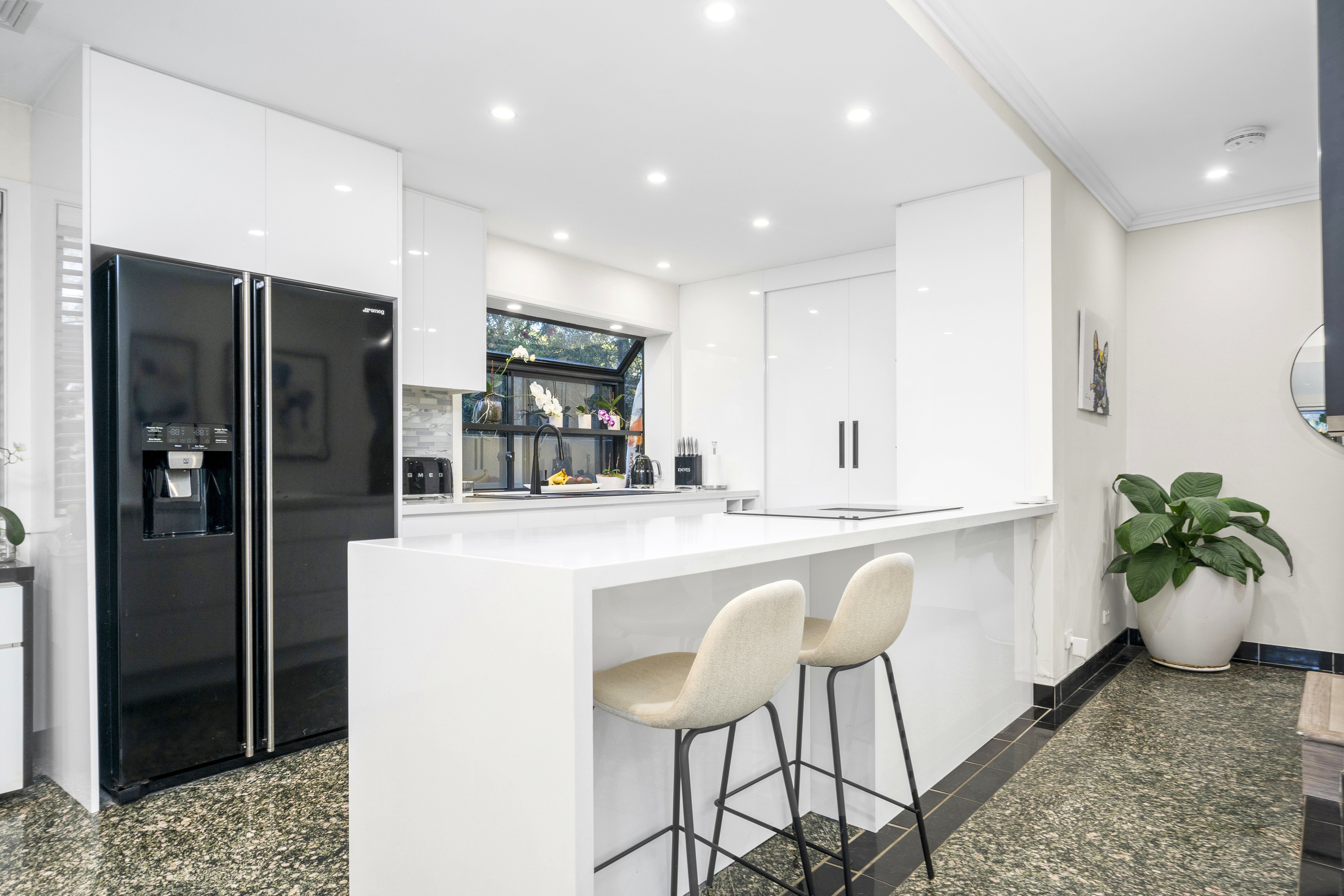 In a popular Forestville pocket that promises peace, privacy and easy convenience, this contemporary home's modern façade hides a generously scaled and beautifully renovated sanctuary for the family. Step inside to a welcoming and exceptional dual level floorplan featuring beautiful natural stone flooring and a design that spills out to an alfresco terrace by the pool. All the touchpoints are here to impress, including a luxury Smeg appointed gourmet kitchen, designer bathrooms, ground floor master retreat with an ensuite and pool access and a home office. Families will love the bonus of the immense upper level family/games or entertaining room finished with a high-end stone wrapped bar. A gas fireplace warms in winter whilst ducted a/c keeps the temperature right all year round. Continuing the excellence is the triple lock up carport plus additional lock up garage with storage. This is stress-free, luxury living without the maintenance, a stroll to the local shops and moments to bus services, the village hub, Forestville Public School and Killarney Heights High School.