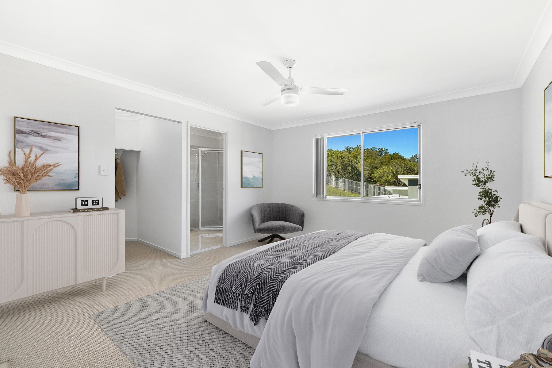 Your three well-appointed bedrooms all offer ceiling fans and built in wardrobes. The spacious master presents its own walk-through wardrobe and ensuite. Additionally, your study space also fits seamlessly into the upstairs layout.
