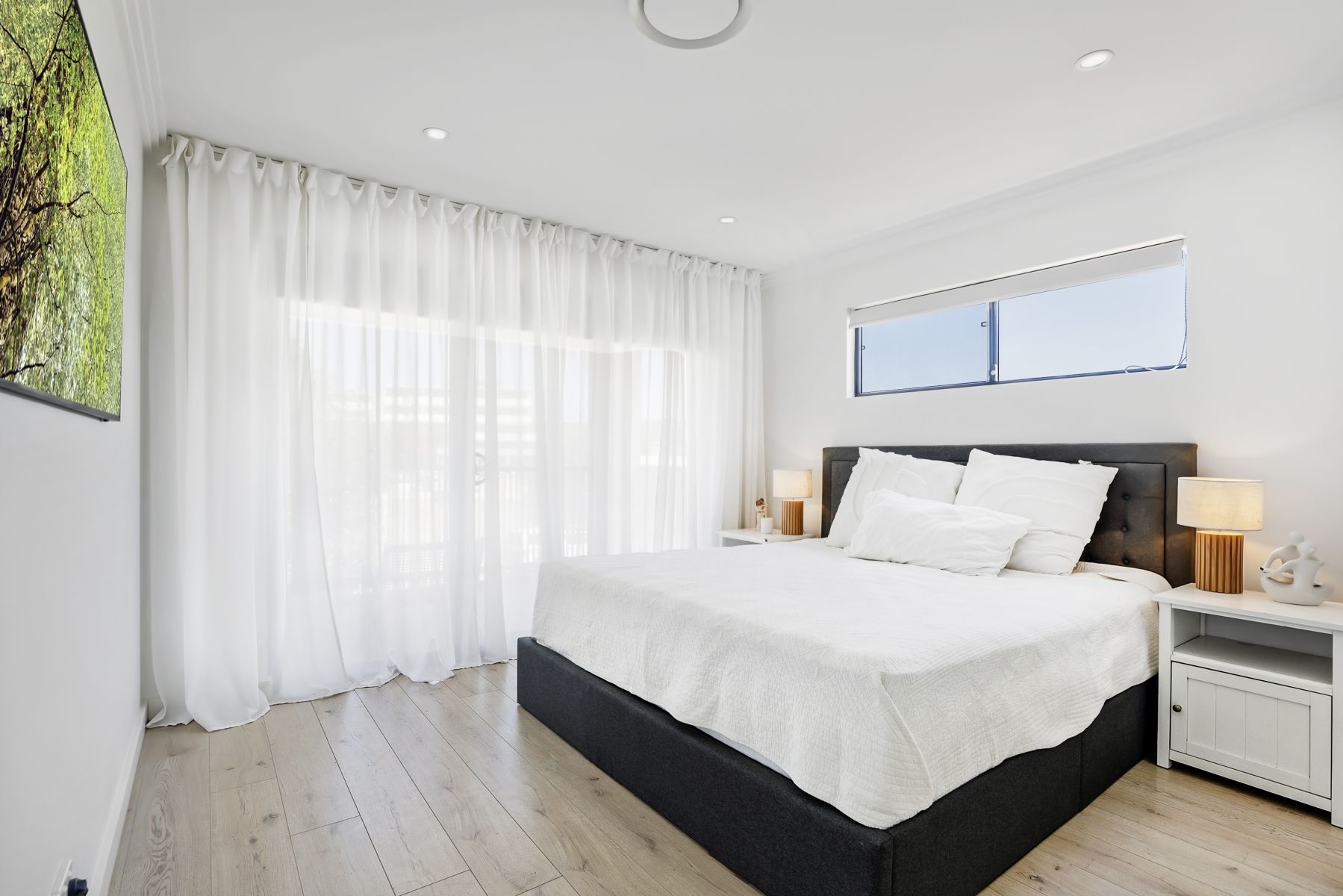 Key Features: • Five generously sized bedrooms, with four upstairs and one conveniently located on the ground floor. • Master retreat with a private balcony, walk-in robe, and a stylish ensuite with views. • Three additional bedrooms upstairs with built-in robes, providing ample storage for the family. • Ground-floor bedroom can be used as a standard bedroom, home office, or guest space, offering ultimate versatility. • Garage converted into a sixth bedroom, ideal for large families. Can be easily reverted back into a garage if needed. • Three full bathrooms, including a luxurious main bathroom upstairs with a free-standing bathtub and large walk-in shower. • Open-plan living, dining, and kitchen area with large sliding doors that flood the home with natural light and fresh air. • Modern kitchen with premium appliances, ample storage, and a stylish breakfast bar, perfect for entertaining. • Multiple living spaces, providing room for relaxation, family time, and entertaining guests. • Undercover patio area, ideal for outdoor dining and year-round entertainment. • High-tech front door access, featuring a key fob, keypad, or fingerprint entry for added security and convenience. • Alarm system, ensuring peace of mind. • Ducted air conditioning with separate zoning, offering year-round comfort. • Downlights throughout the home, creating a bright and inviting ambiance. • Beautiful timber-style tiring throughout, making maintenance easy and stress-free.