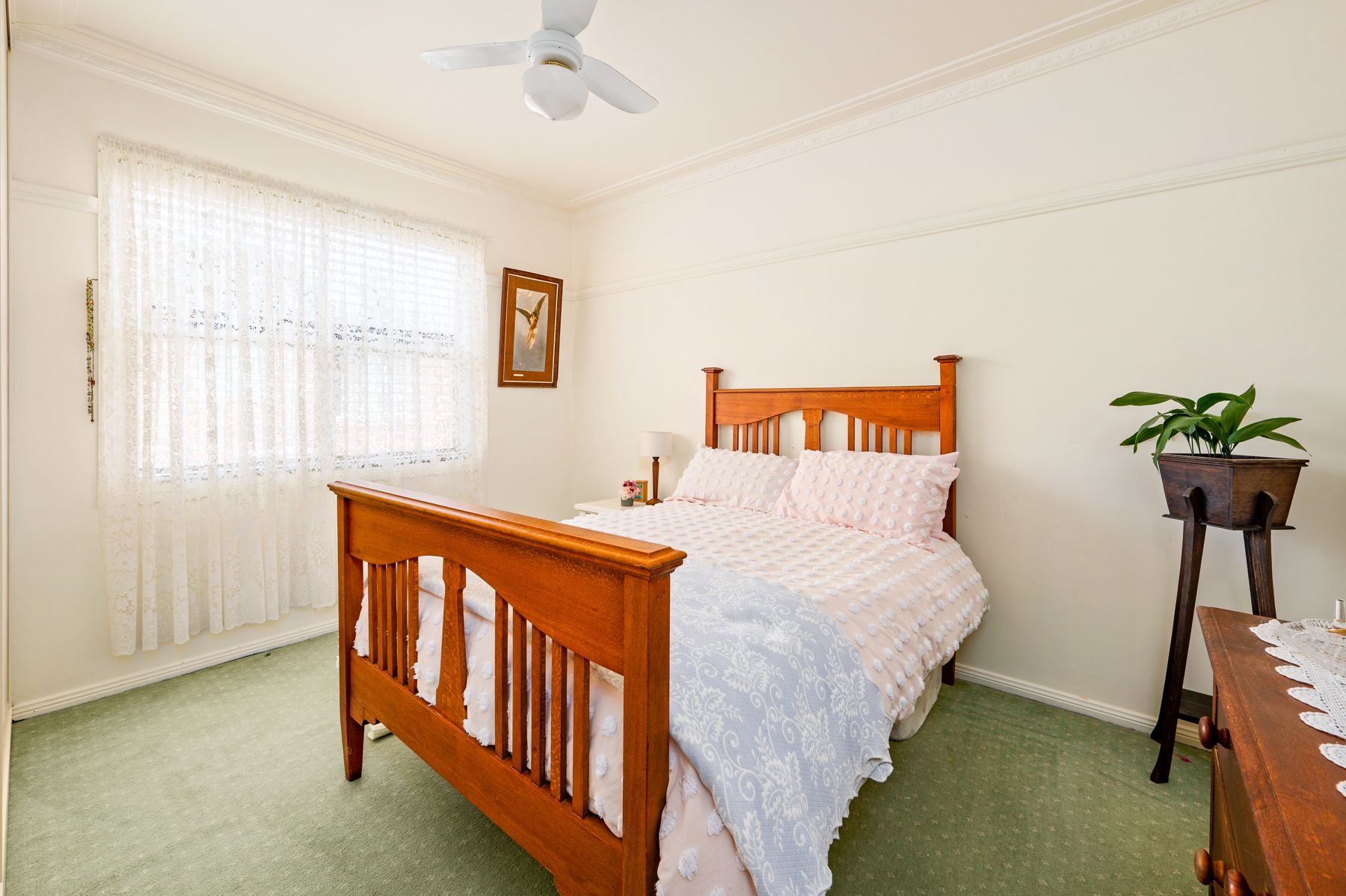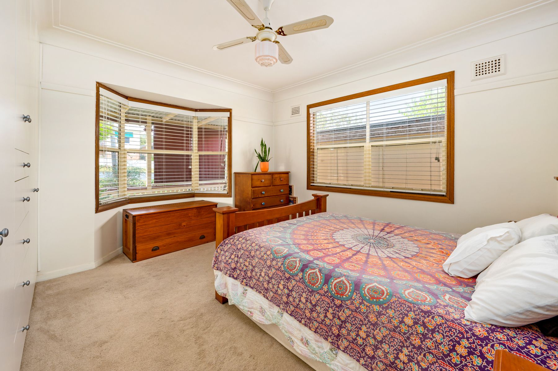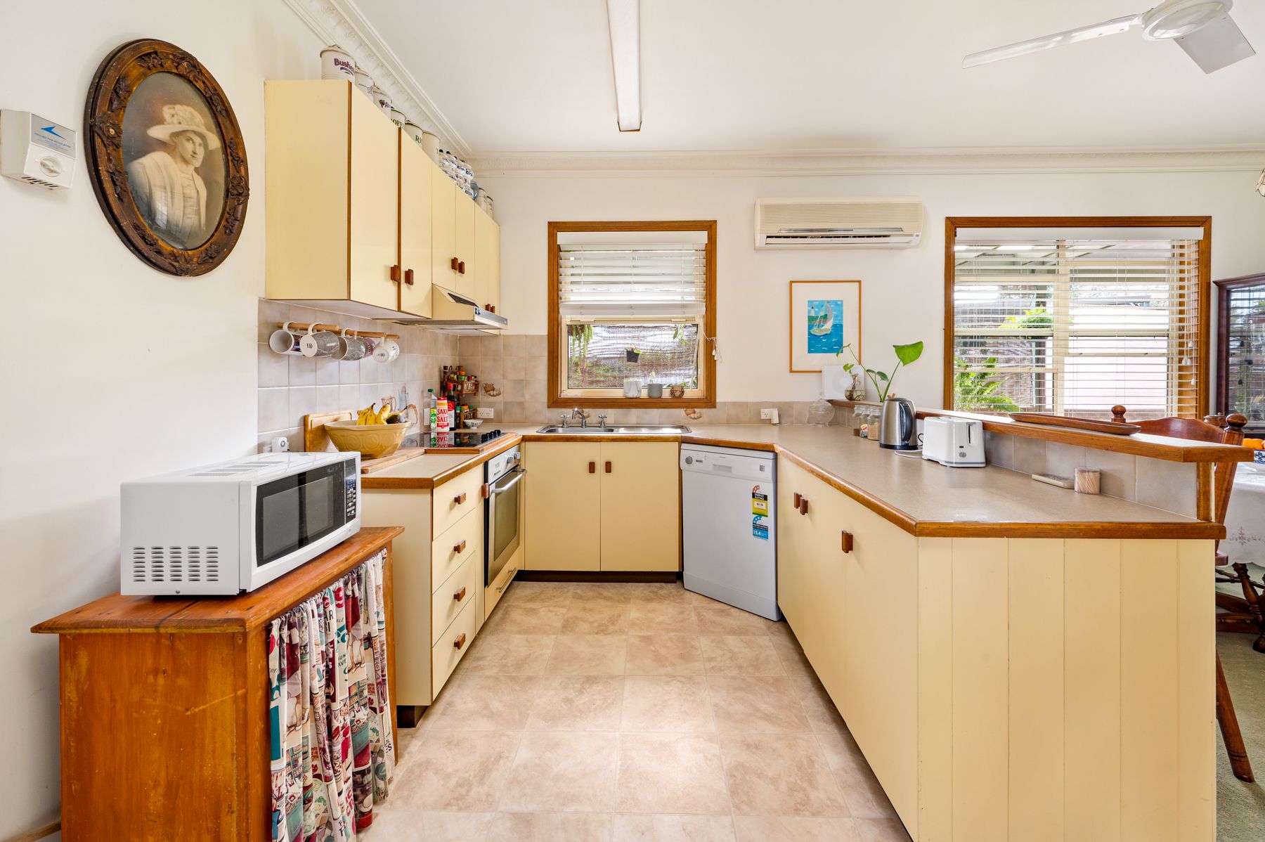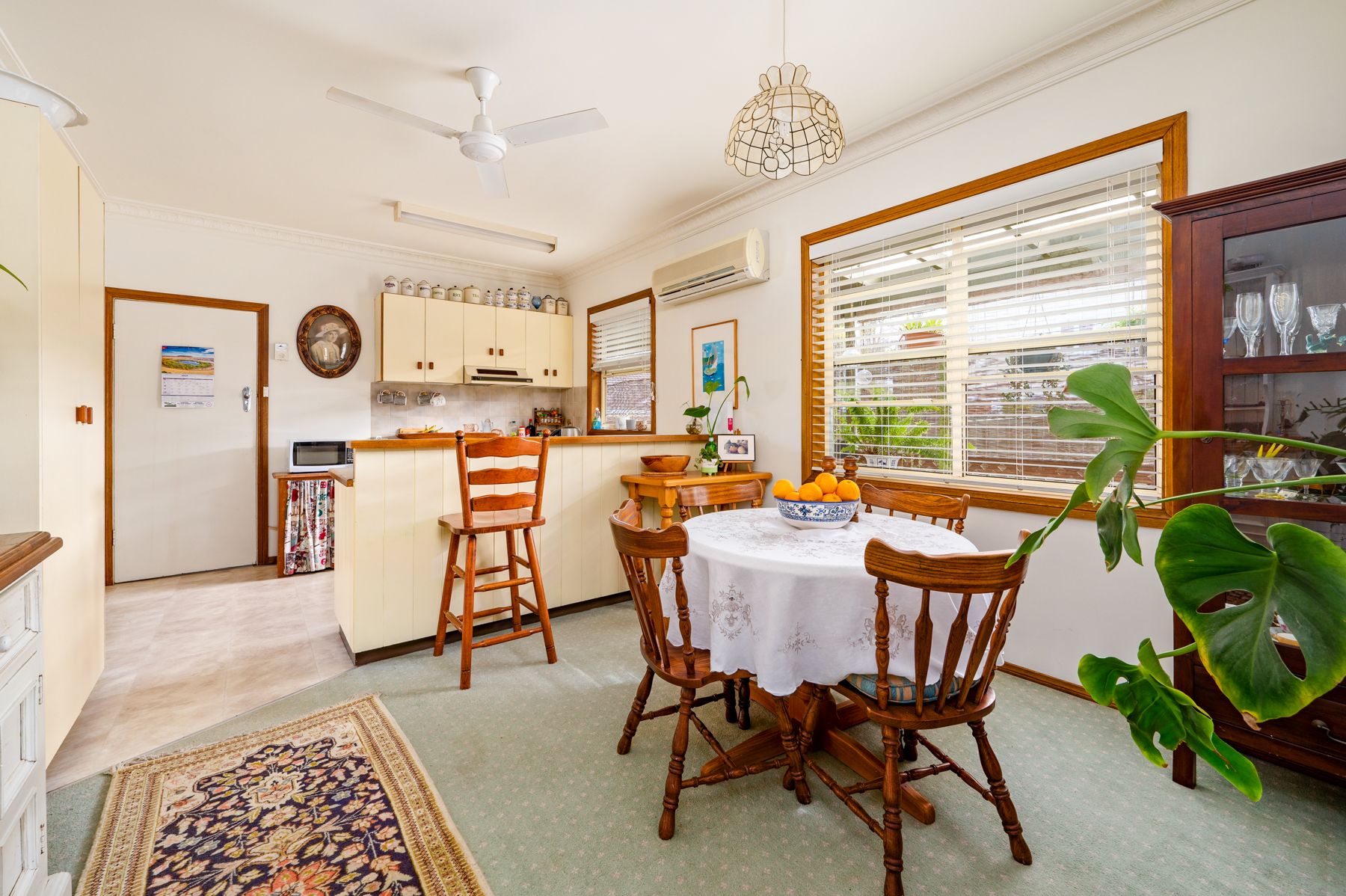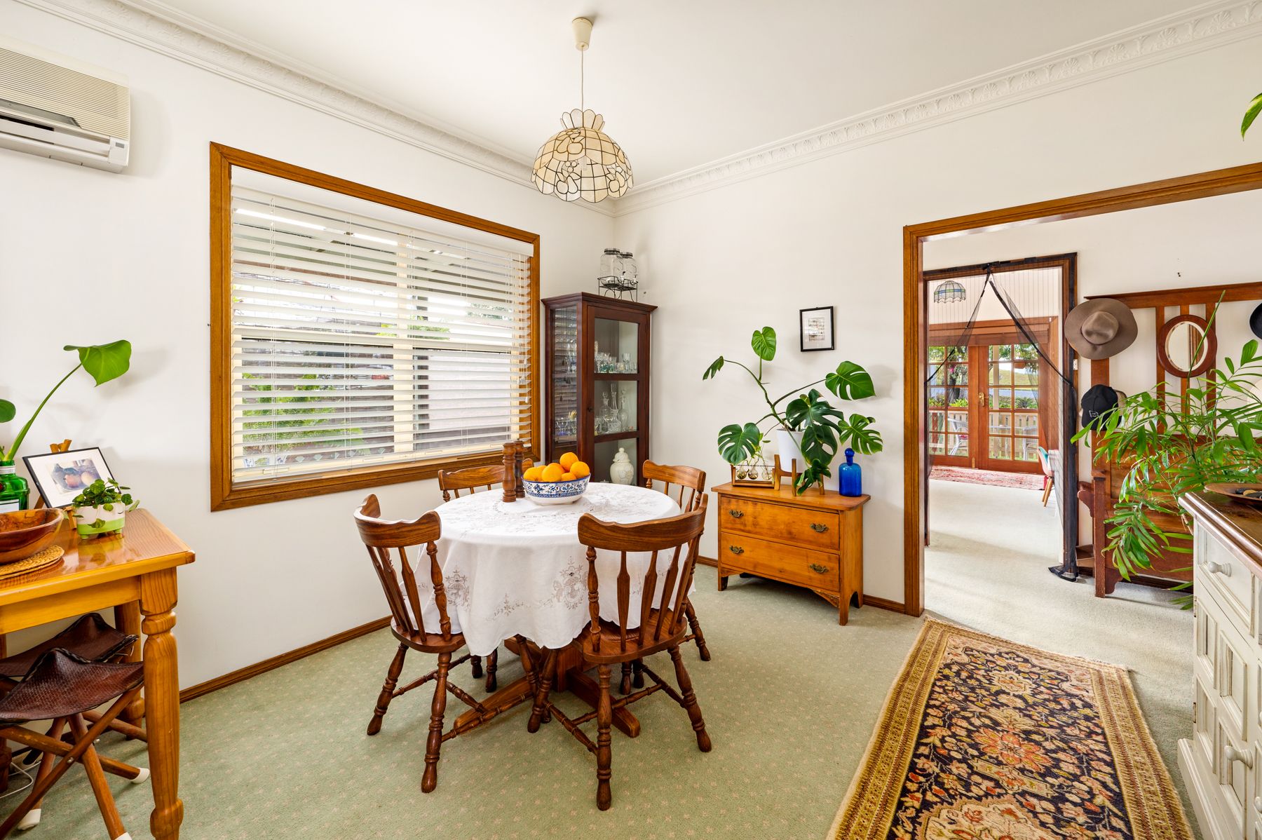 Built in wardrobes in 2 bedrooms 3rd bedroom could be used as a second living room Bay window in main bedroom French doors opening out to veranda from 3rd bedroom Bathroom- shower over bath, toilet & vanity Dining area off kitchen Air conditioning & ceiling fans second toilet in laundry lounge room opening out to deck huge back deck & wrap around veranda established trees & gardens paved courtyard area under house storage single lock up garage