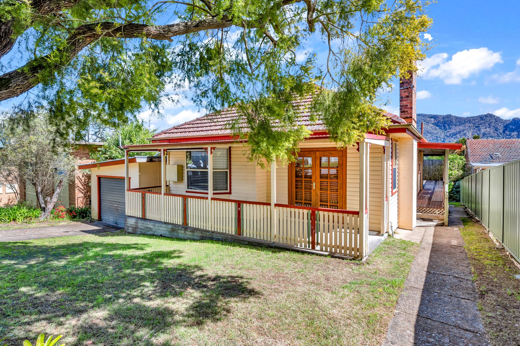 It encompasses 3 good sized bedrooms, living area, dining area and a cosy country kitchen. The deck area at the rear of the home has some outstanding views to the Bucketts mountain range, but doesn't lose any privacy.