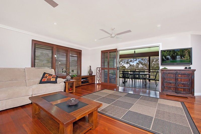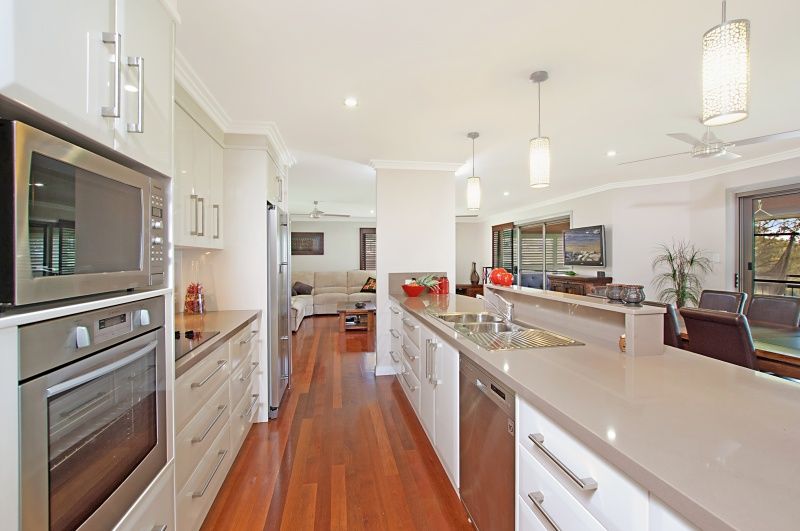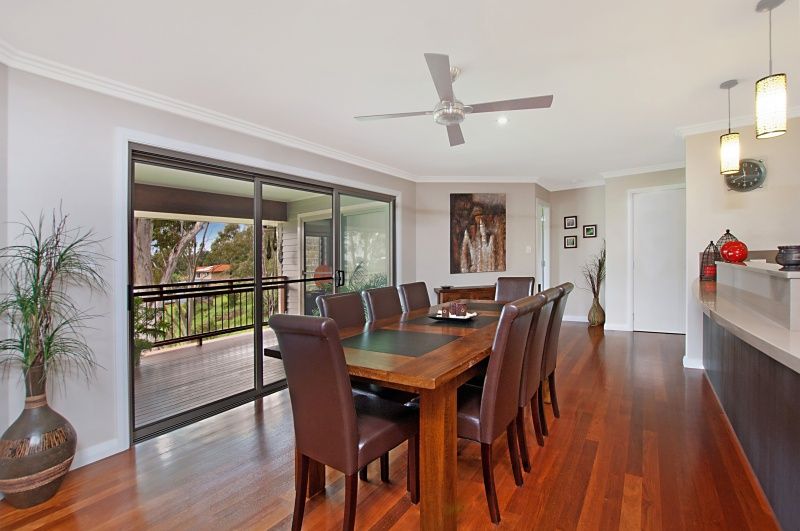 Set on a 916 sq.metre allotment and capturing a leafy backdrop this master built home is constructed over two levels with the attention to detail obvious from the moment you arrive. The full length front veranda is covered in a dark low sheen tile making it ideal for foot traffic. Upon entering the over-sized front door the outstanding polished hardwood floors and earthy colour-scheme invites you. The double garage has a remote pane-lift door and adjoins the home via a covered access way. On the upper level are two bedrooms, the master suite with walk-in robe and ensuite with frame-less shower screen and the bedroom complemented by louvres to capture the breezes and cross ventilation. There are two wide timber decks, one on each level, making fantastic outdoor entertainment areas. The galley style kitchen with stone bench-tops and white 2 pac finish will delight the family chef. Plantation shutters internally and aluminium shutters on the western end of the deck add to the list of excellent design features. Downstairs are a further two bedrooms, another bathroom and a kitchenette. This makes the ideal space for teenagers or an extended family.The property is fully landscaped and offers a workshop and plenty of external storage.