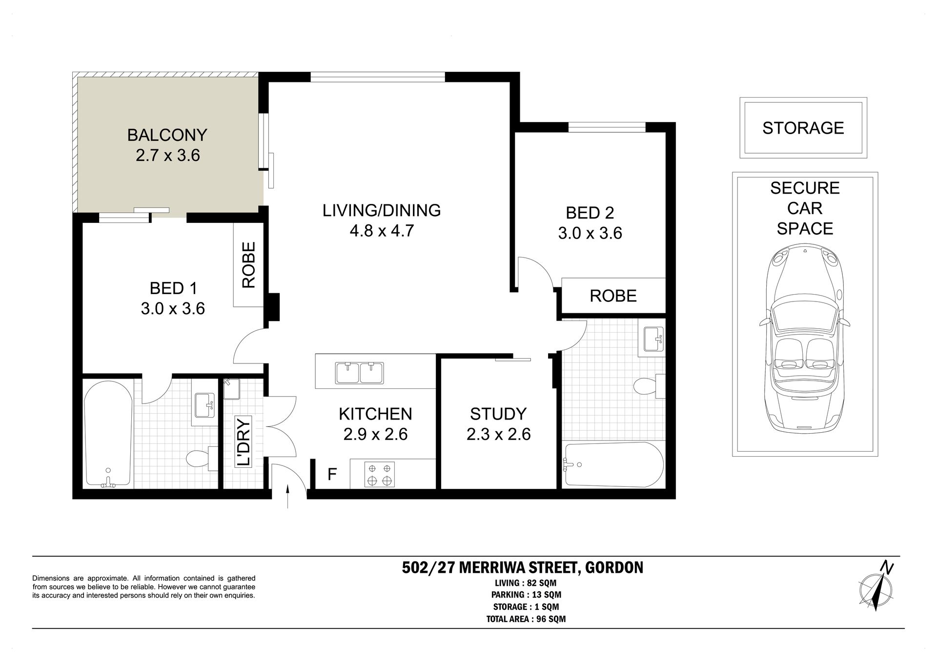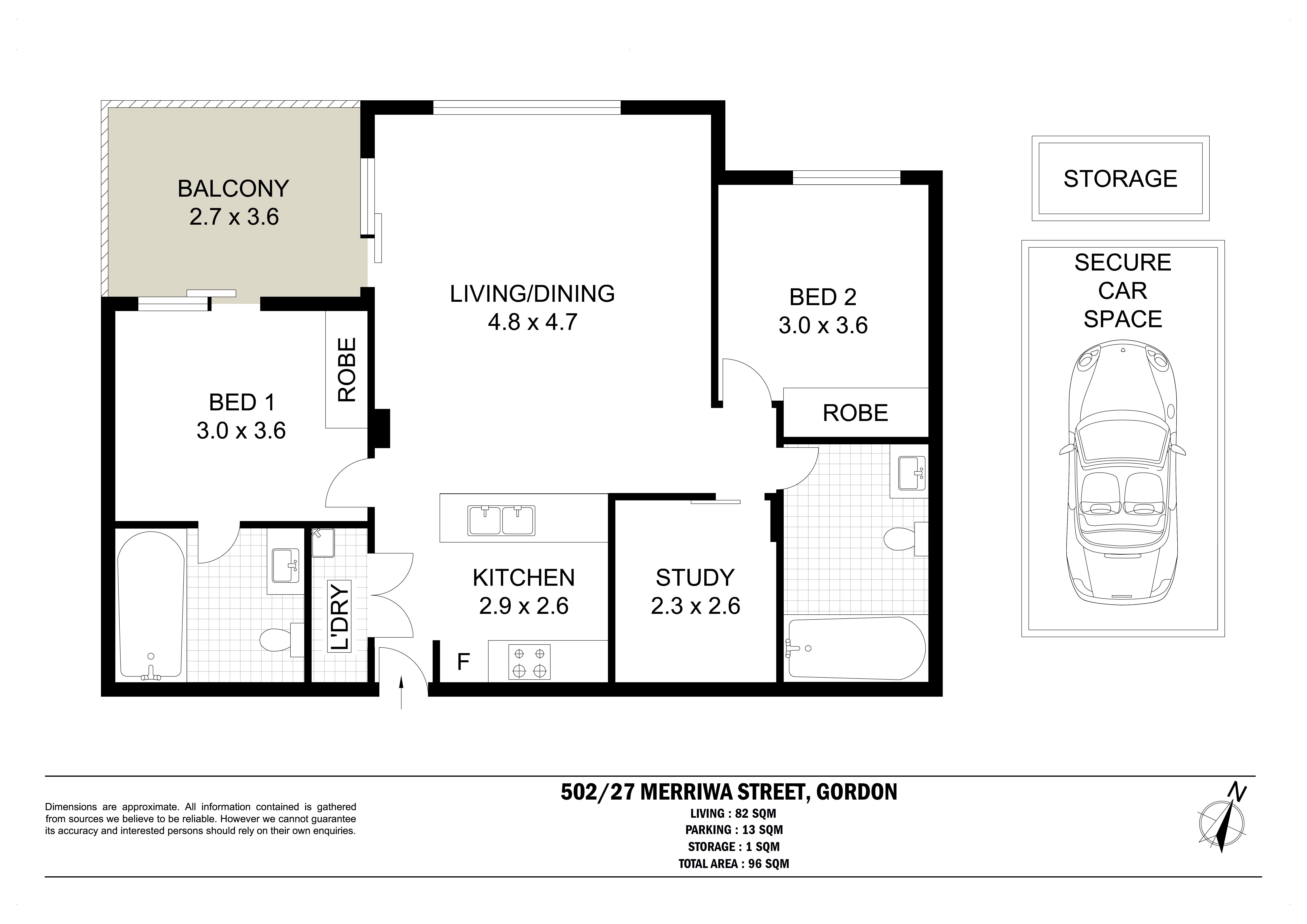 Accommodation Features: • Contemporary apartment, open plan living and dining • Stone kitchen with gas cooktop, Robam rangehood and dishwasher • Study positioned behind doors, bedrooms with built-in wardrobes • Primary bedroom with ensuite, opens to balcony, ducted air conditioning • Main bathroom with a large walk-in shower, internal laundry