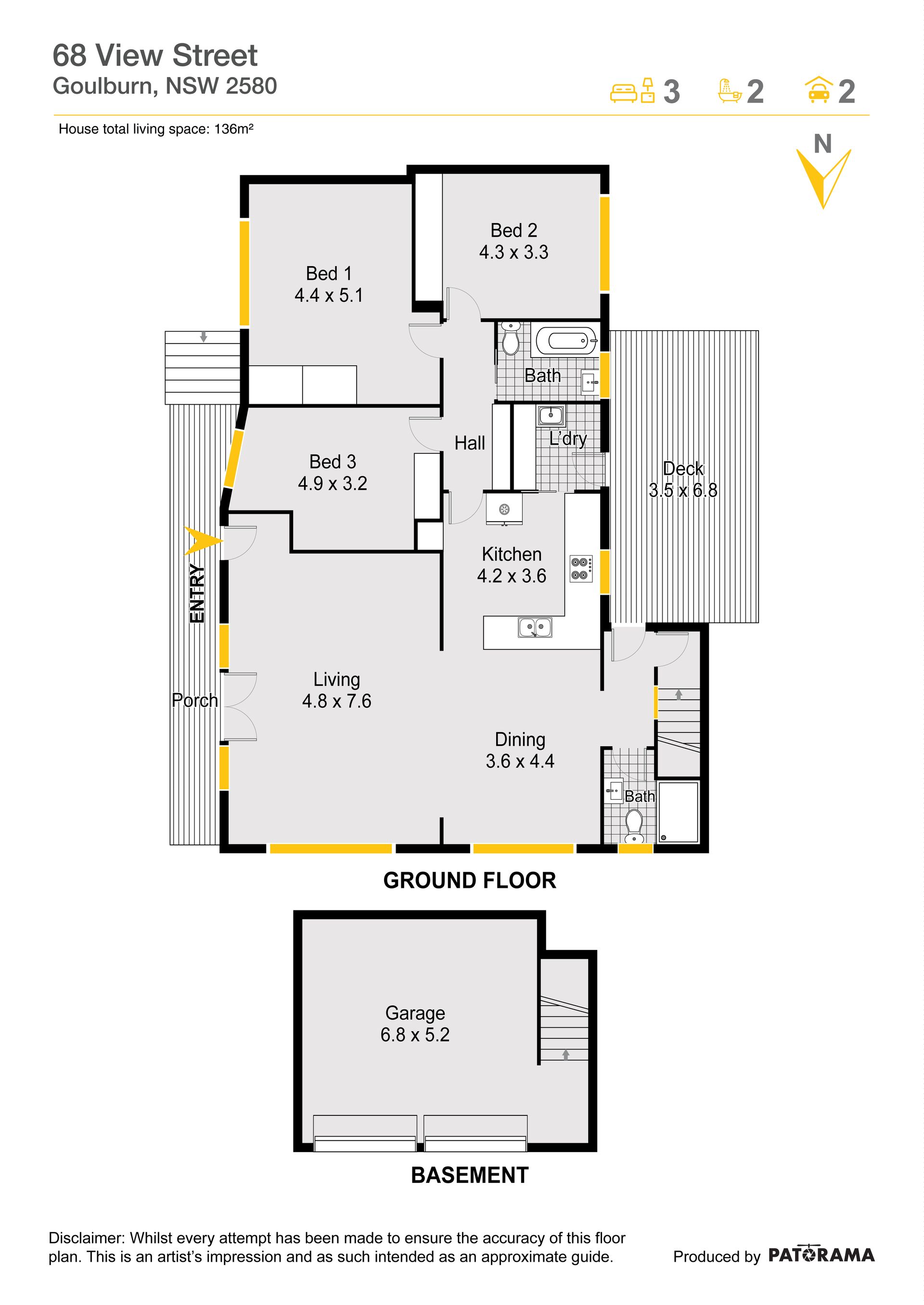 Features include: • 3 generous sized bedrooms • 2 bathrooms • Large master bedroom with built in robe • Built in robes to all other bedrooms • Open plan living area • Ducted heating throughout, R/C Air conditioning and ceiling fans • Large well-appointed kitchen with electric appliances, dishwasher & stone bench top • Double garage downstairs • Front veranda, large windows & a rear entertainment deck • Fenced yard suitable for kids and pets • 815m2 corner block • 50 minutes' drive to Canberra • 2 hours' drive to Sydney