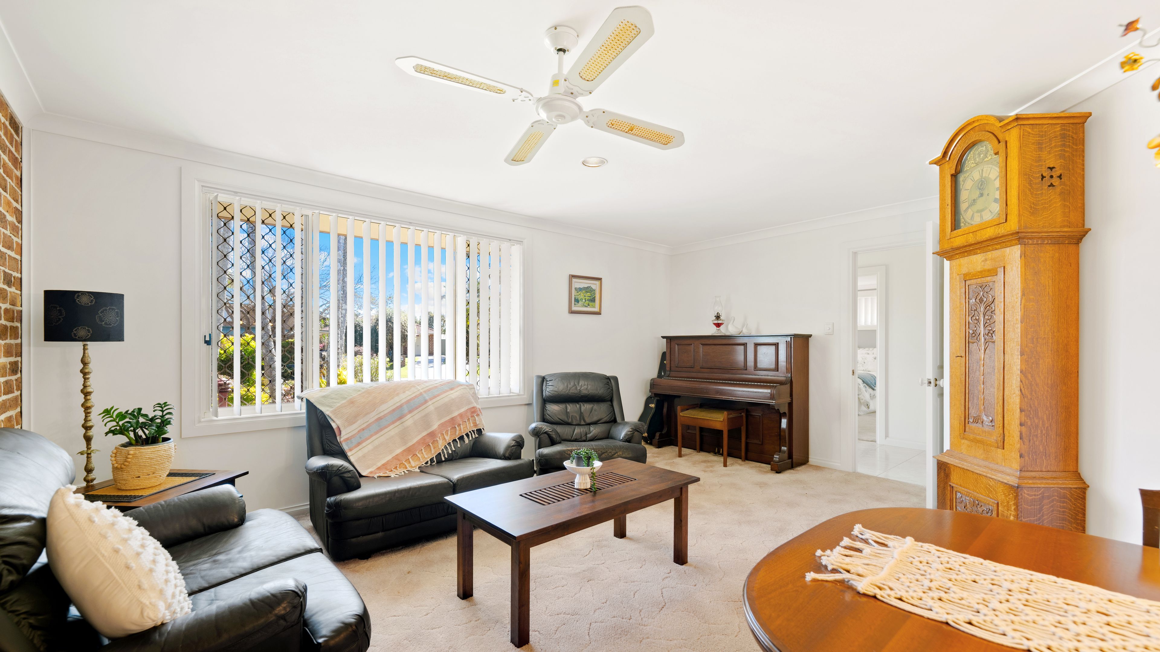 The layout includes two living areas that make it easy to gather as a family or find a quiet corner to unwind. At the heart of the home is the kitchen, which connects to an open dining area and continues out to a covered entertaining space, creating a natural flow for everyday life. Four bedrooms provide plenty of accommodation, with the master featuring a walk-in robe and ensuite, while the other three are fitted with built-in robes. Air conditioning in the master suite and one of the living rooms adds to the year-round comfort. Please refer to the floorplan provided for an understanding of the layout.