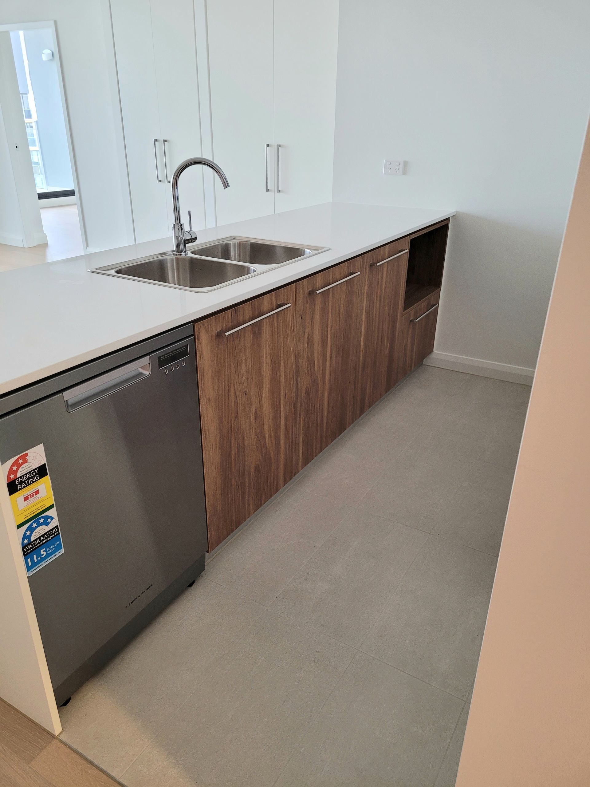 -Full size sovereign spatial kitchen for all apartments completed with Caesar stone benchtop and splash back.