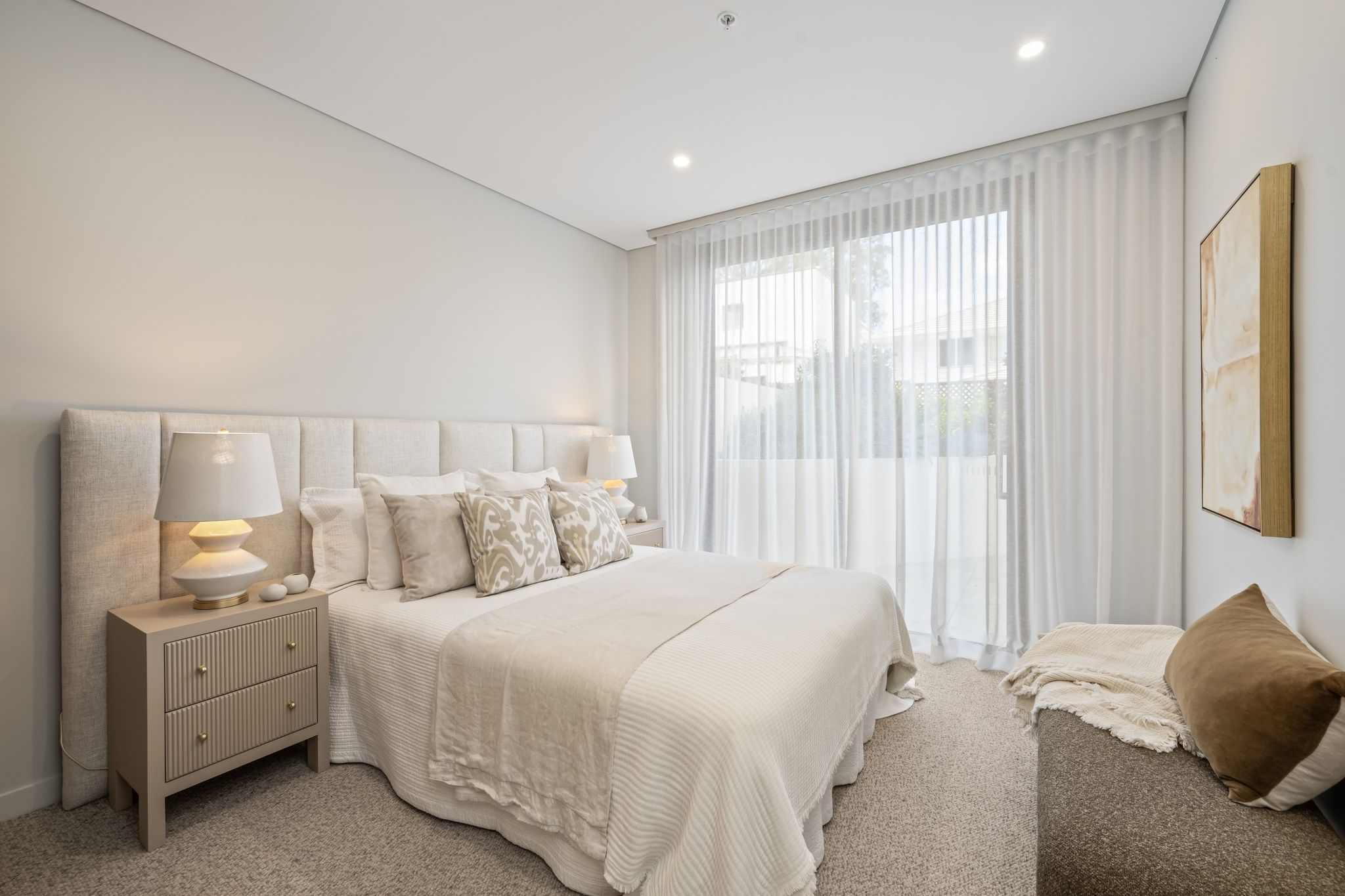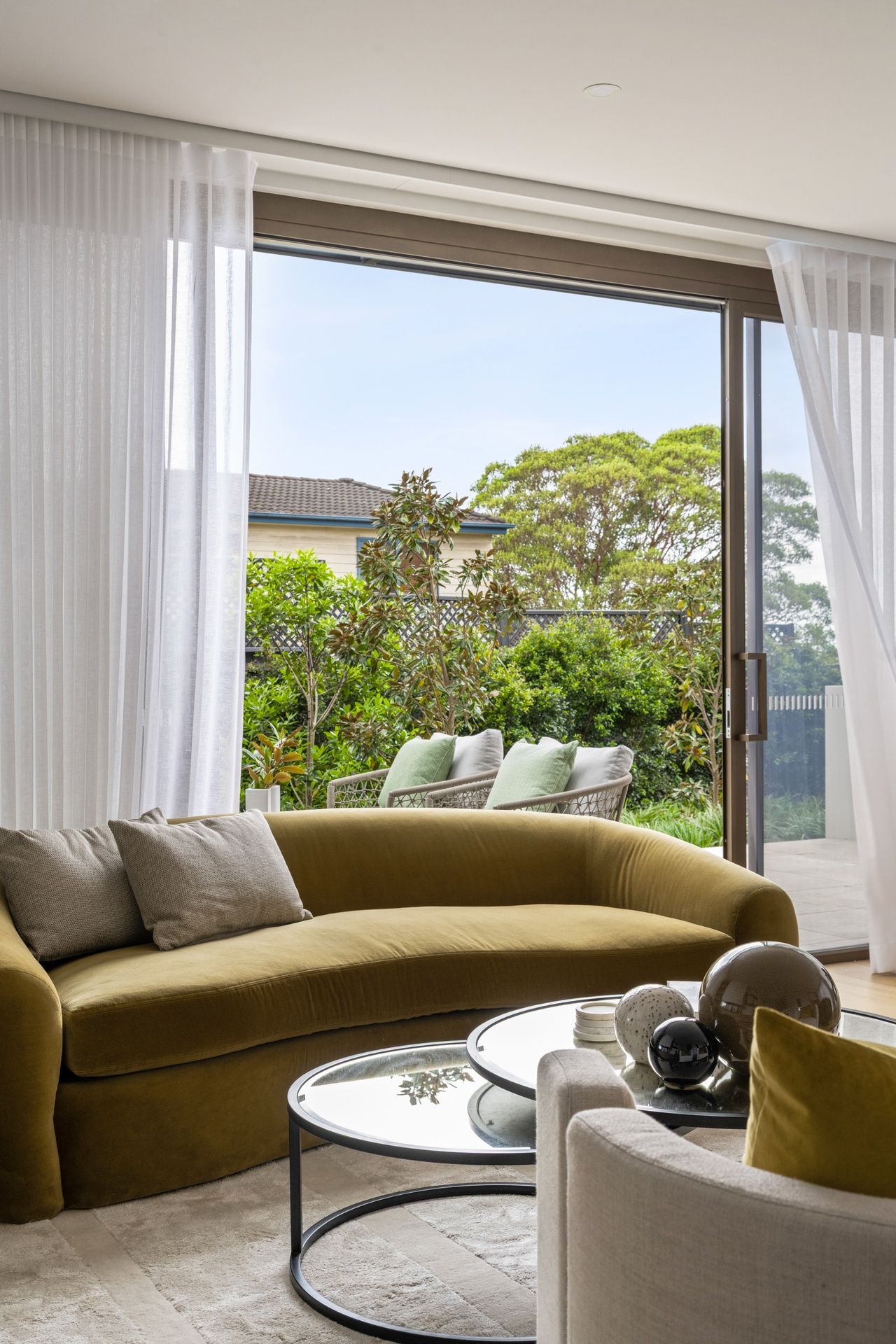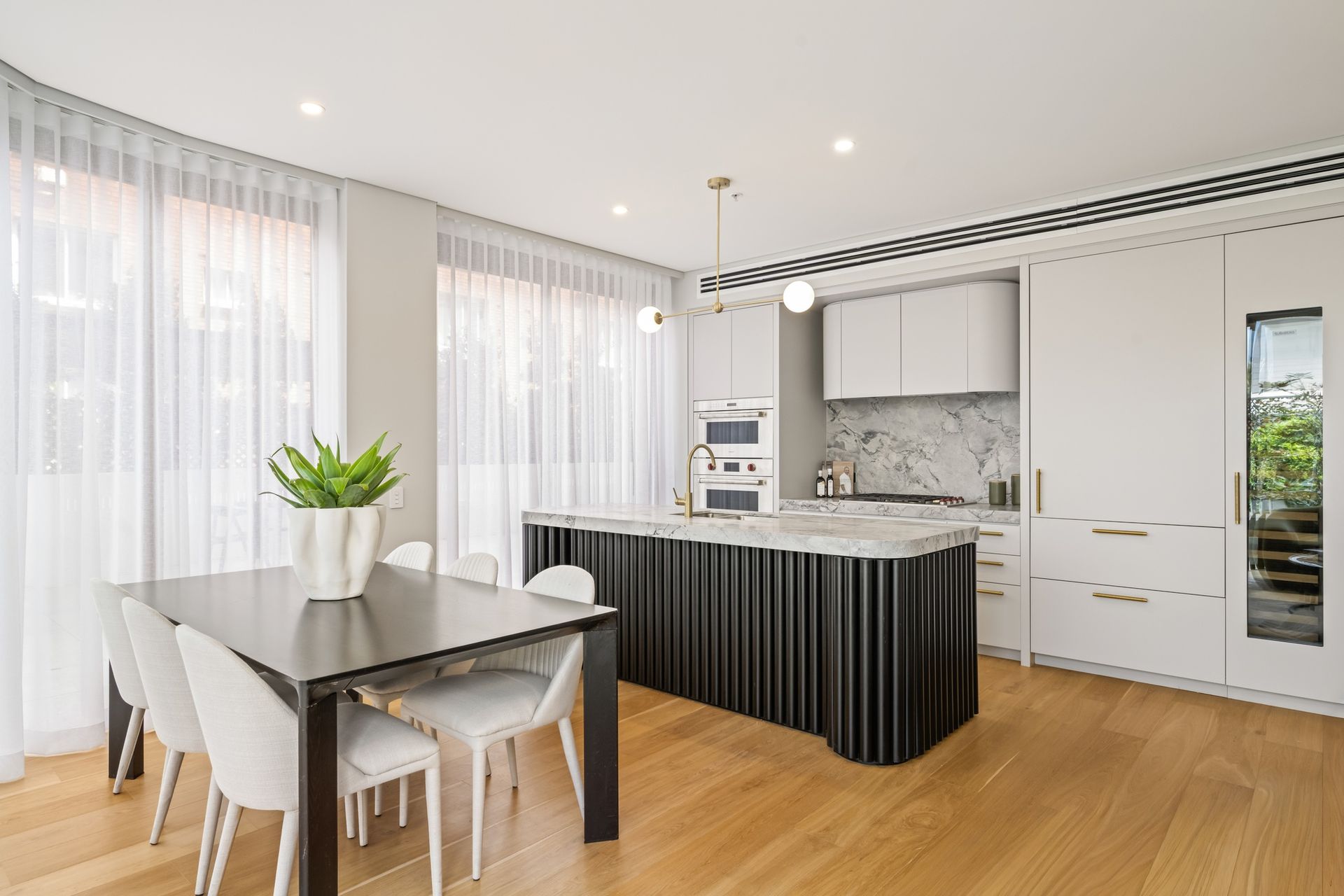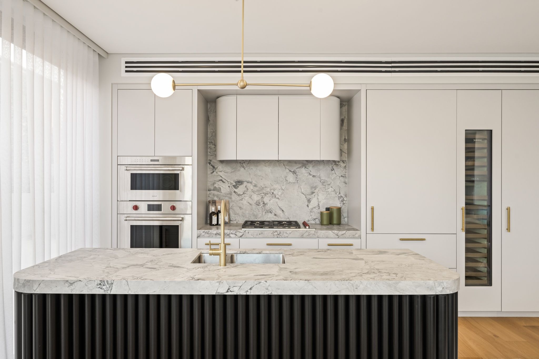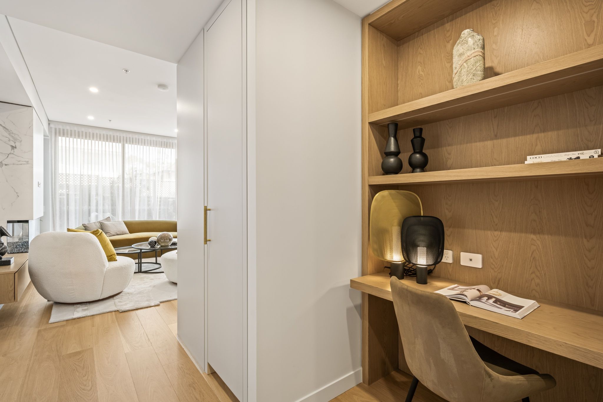 • Chic sheer linen drapery and bespoke joinery