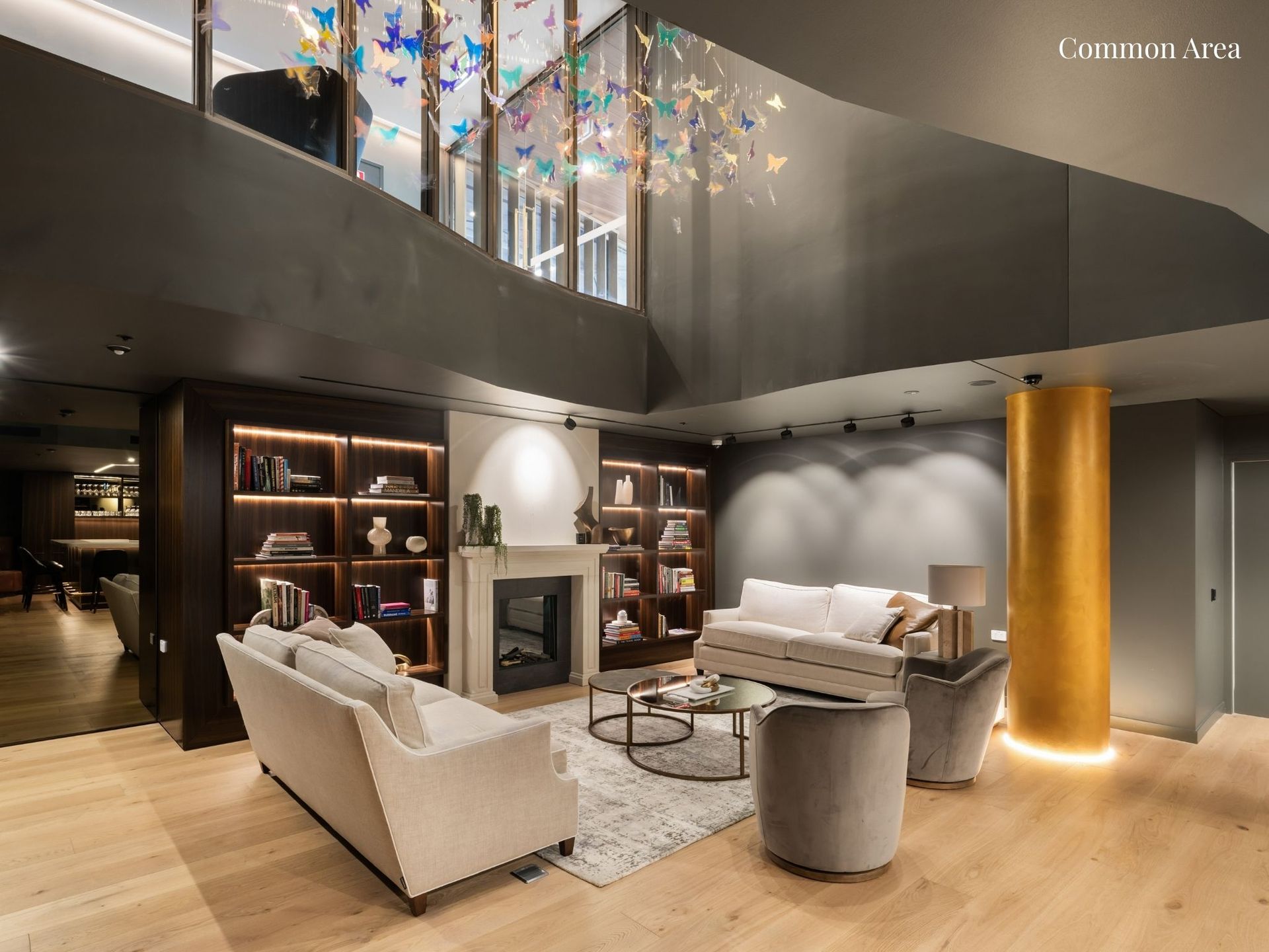 • High ceilings grounded by wide oak flooring